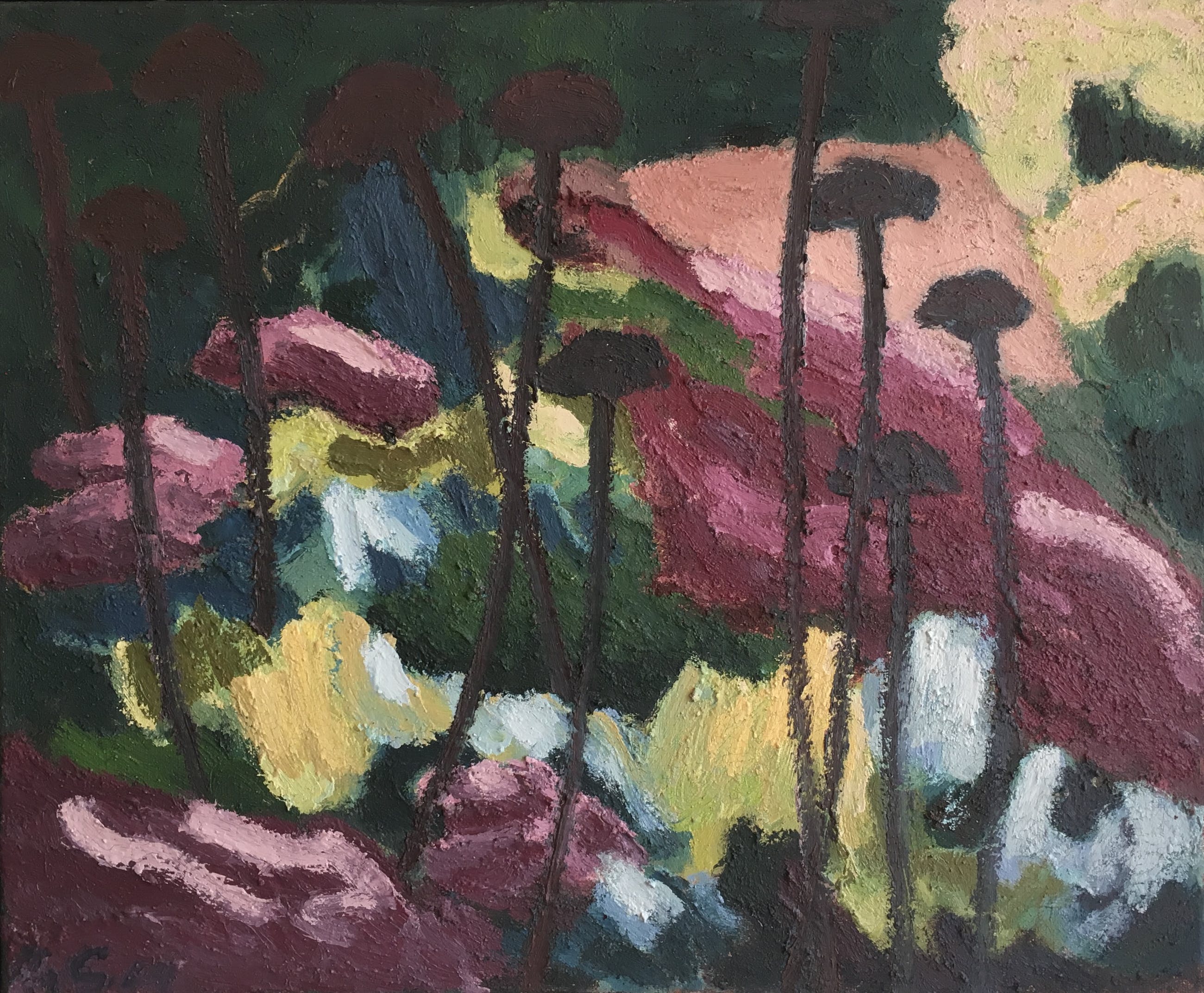 Het werkt van Anna von Glasow is inmiddels breder bekend in Europa. Deze in Duitsland gevestigde kunstenares speelt met kleuren en inzichten die op eerste zicht abstract lijken, maar bij nadere bestudering veel laten zien. Deze "uitgebloeide bloemen" zijn daar een prachtig voorbeeld van. Een vertaling van een inleiding van één van haar tentoonstellingen geeft een diepere achtergrond bij dit werk (verkoopwaarde thans <10% galeriewaarde).