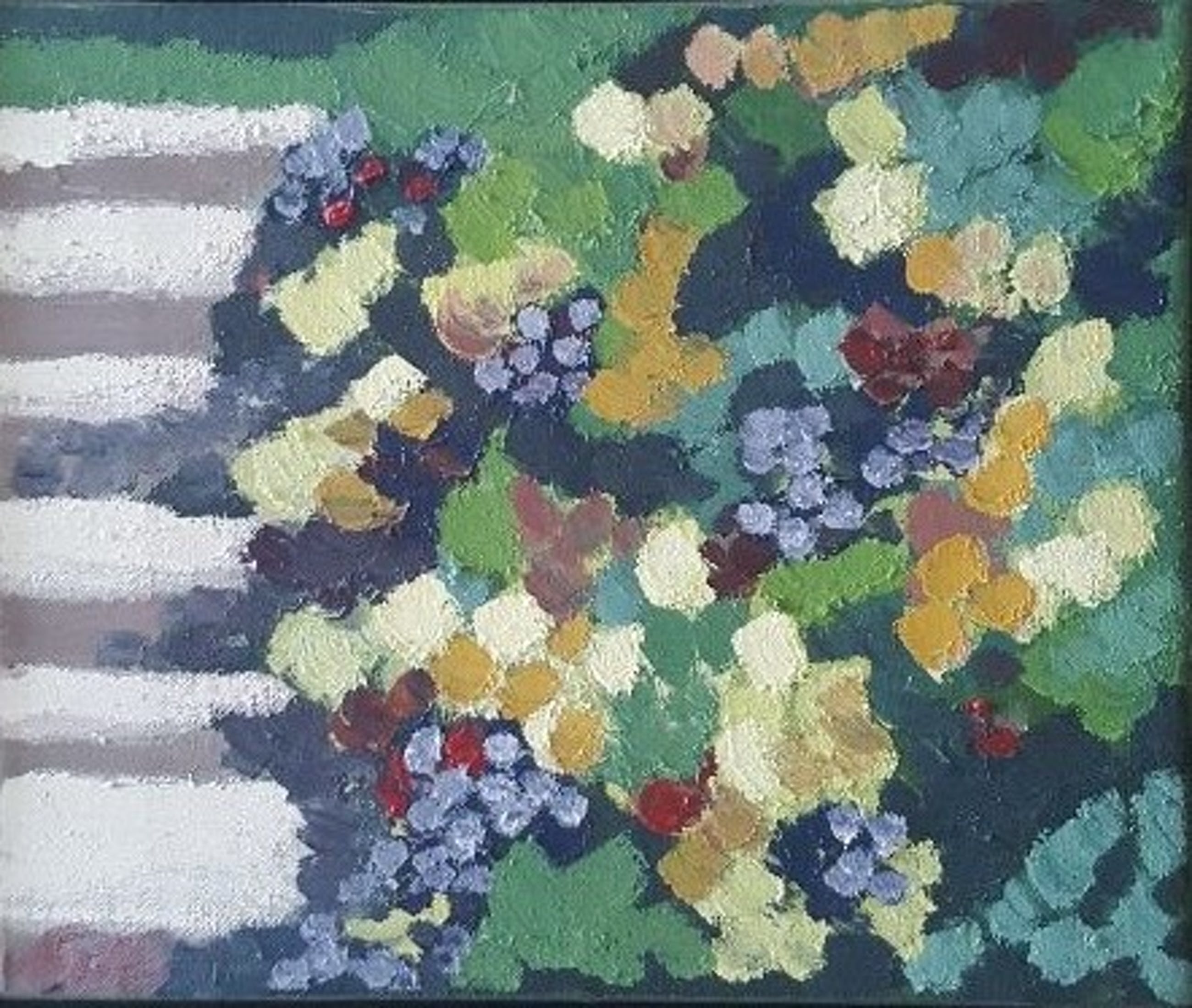 werk 'Steingarten' van Anna von Glasow (Stettin1935) is een acryl schilderij op doek. Het