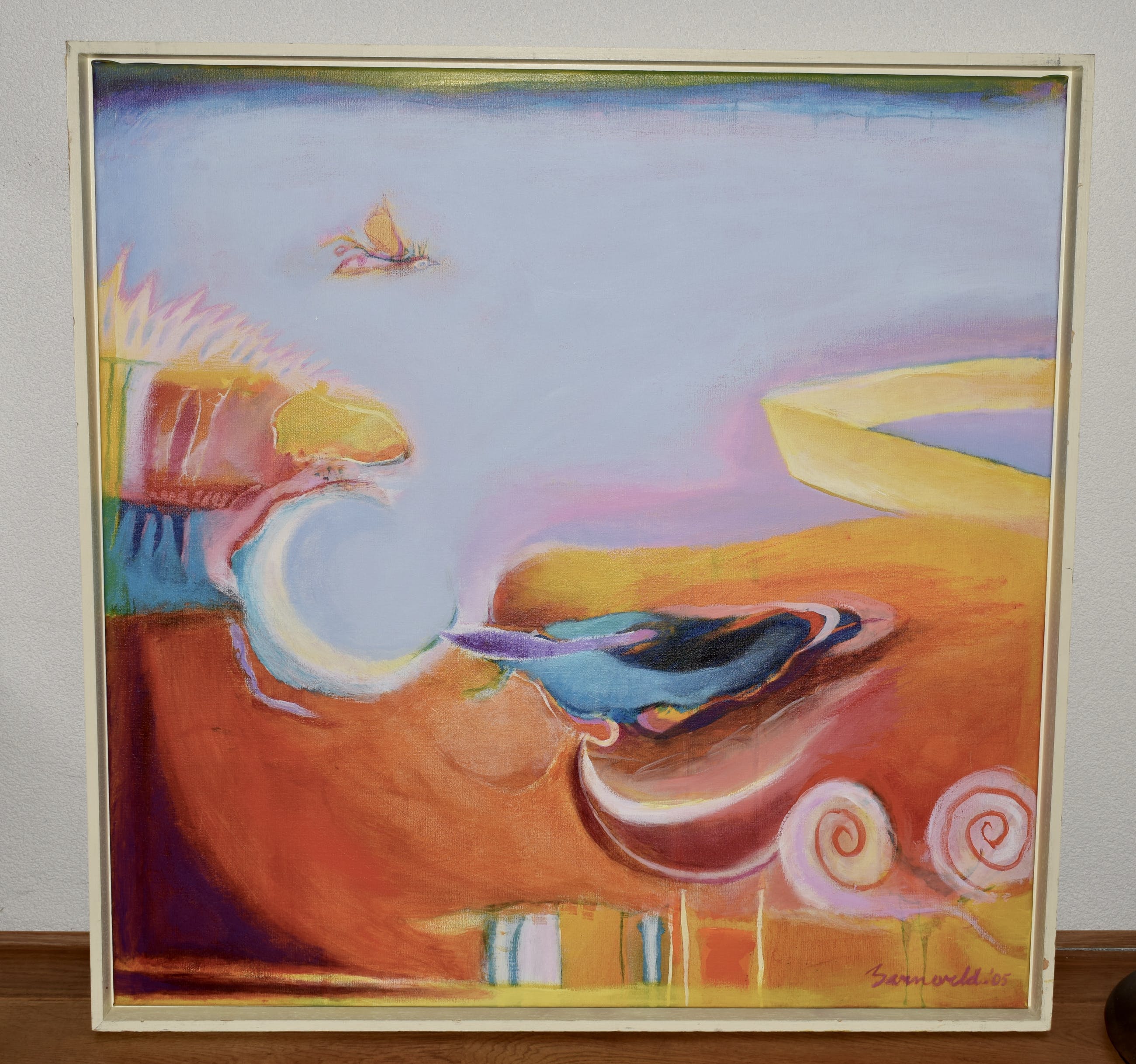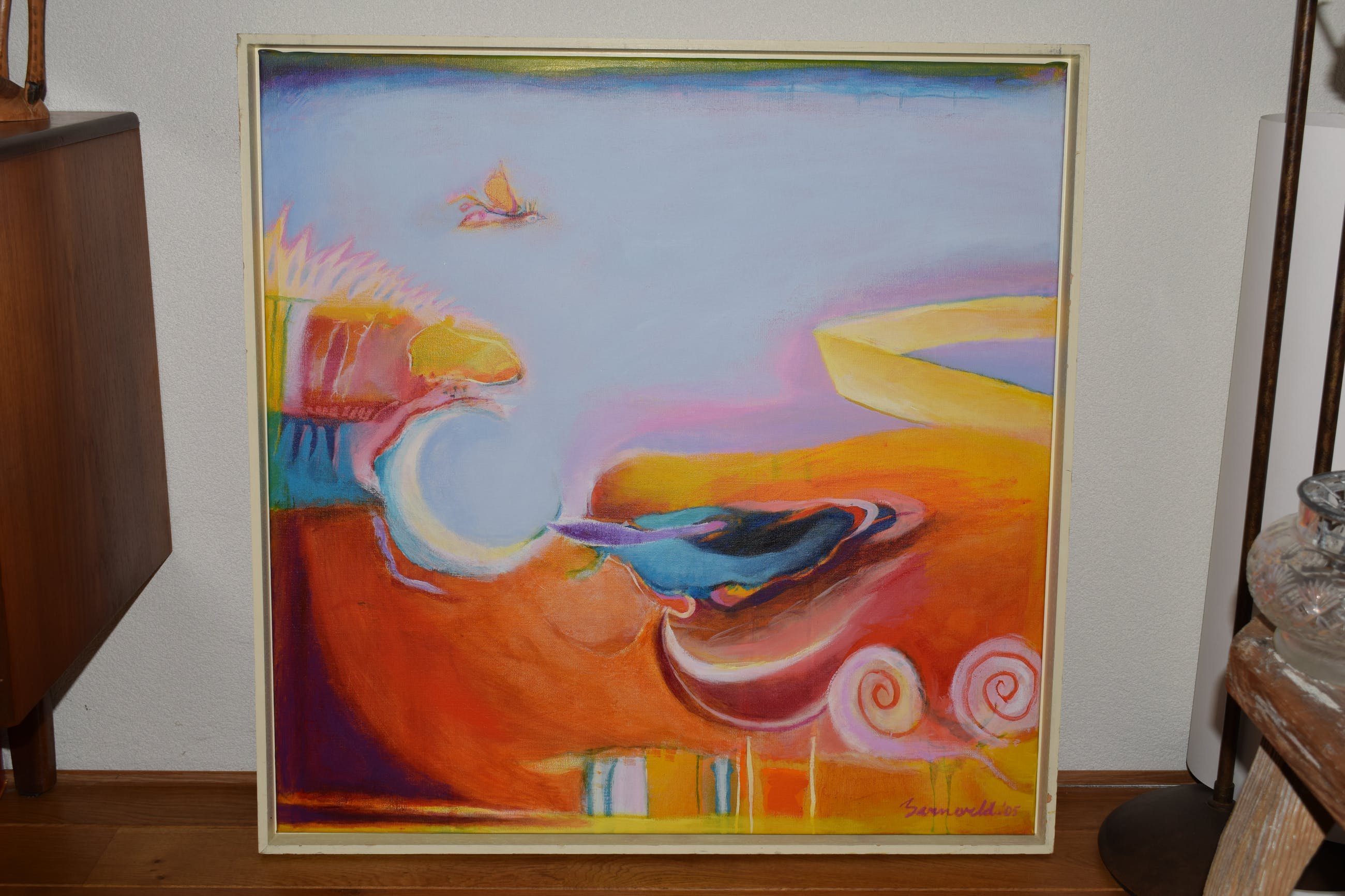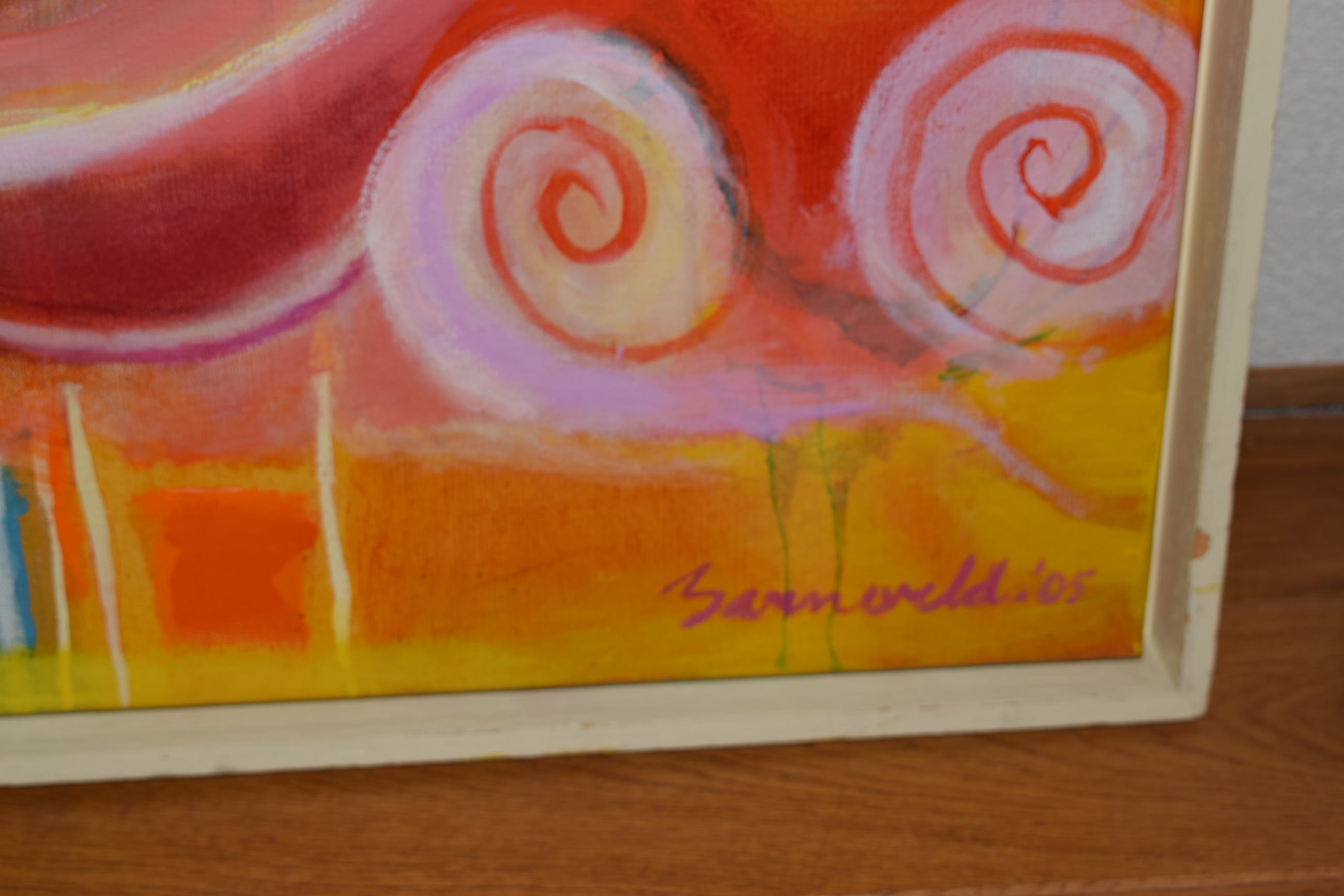 Prachtig doek van Anne Barneveld. Galerie-prijs heeft gestaan om 1800 euro. Dit werk maakte eerder deel uit van de eigen kunstveiling collectie. Een kleurijk doek dat zo ingelijst aan de wand kan. Vanzelf sprekend is het werk voor zien van een handtekening.