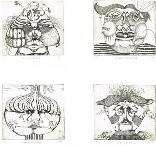 Anne Häupl - Vier Schädel, Zusammendruck, 1974