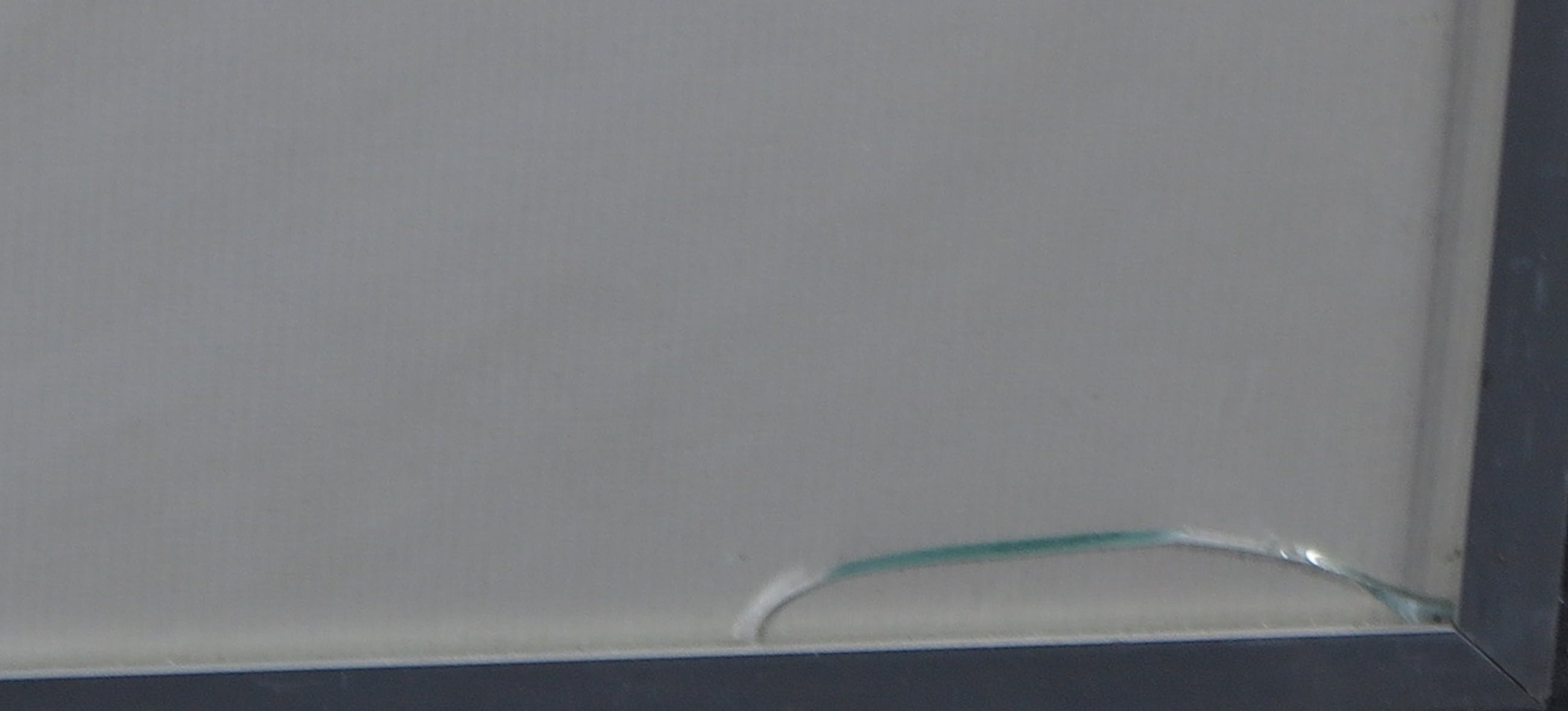 | Het werk heeft aan de rechterkant onder- en bovenkant een breuk in het glas. Verder is het werk enigszins vies en dient het schoongemaakt te worden (het glas). Het werk is licht verkleurd. | |