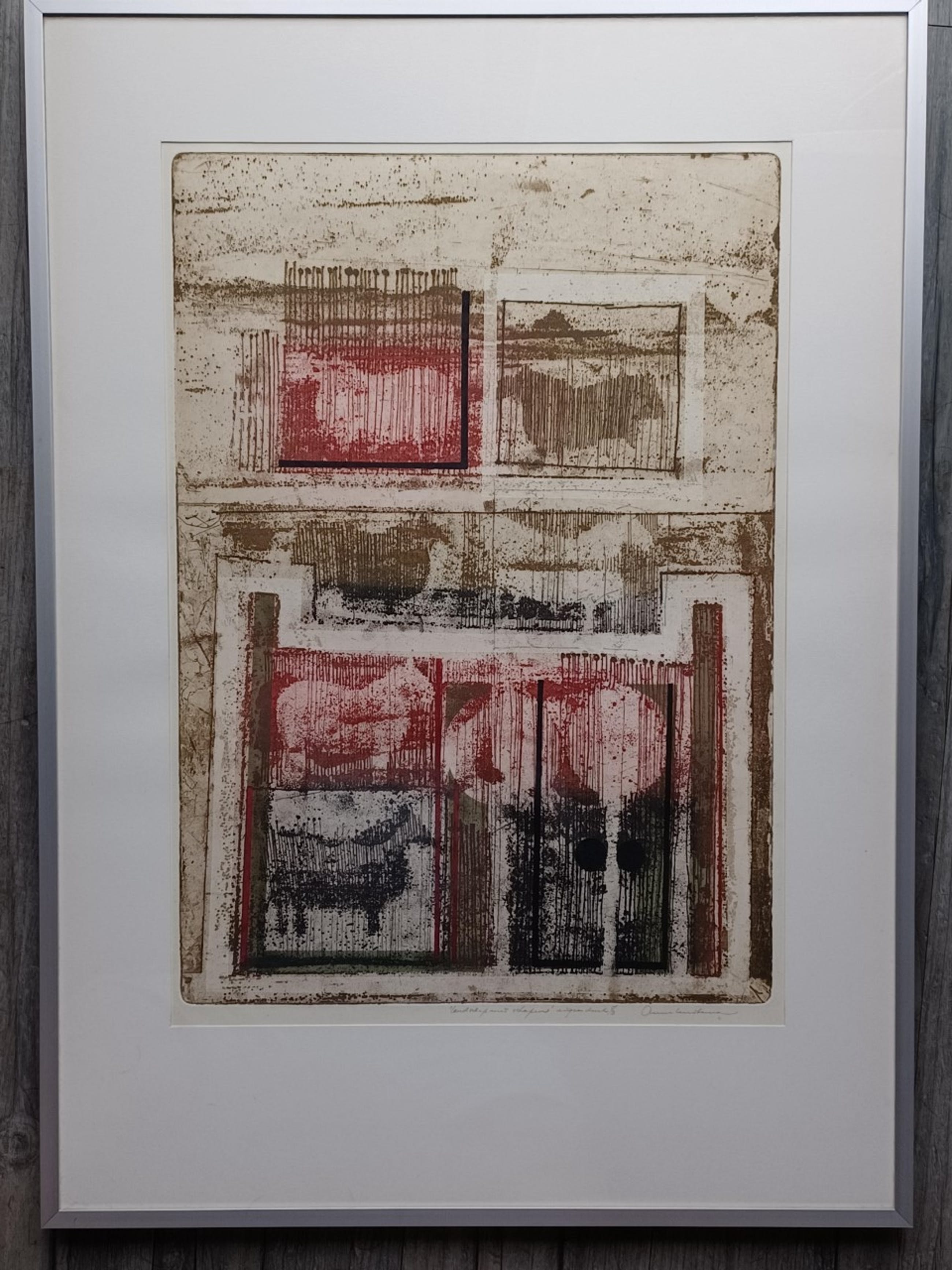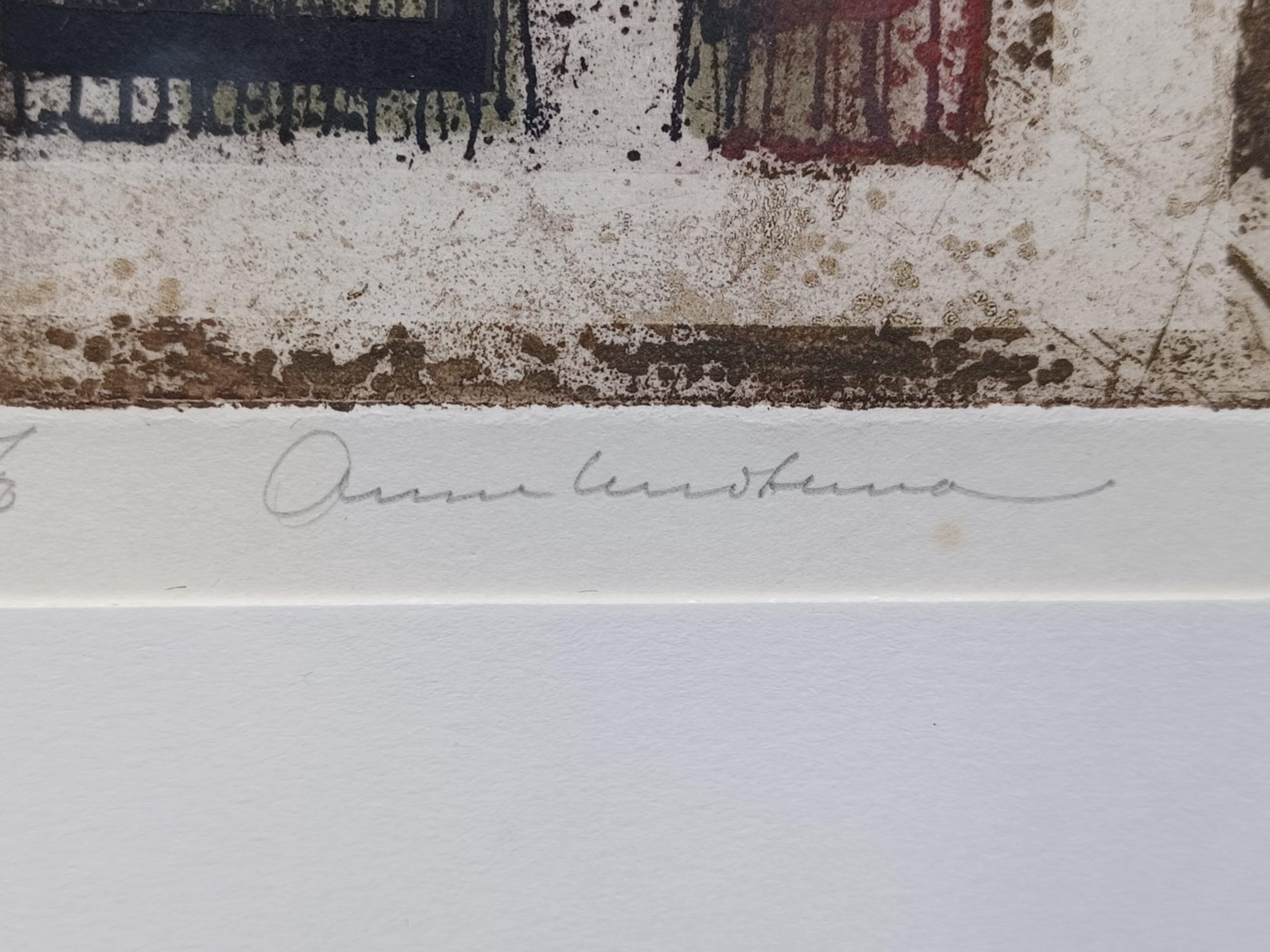 Anne Huitema (1941), opleiding Minerva Acad. Groningen. Past in het brede spectrum van kunstenaars uit de post-Cobra periode. In 1968 vond hij aansluiting bij o.a. Anton Rinzema en Sies Bleeker. Had echte liefde voor het grafisch ambacht en experimenteerde er ook mee. Hij ontwikkelde zich tot een van knapste grafici. Vond z'n inspiratie vaak in de architectuur. Door het grote formaat is opsturen geen goed optie. Het kan wel, op eigen risico.