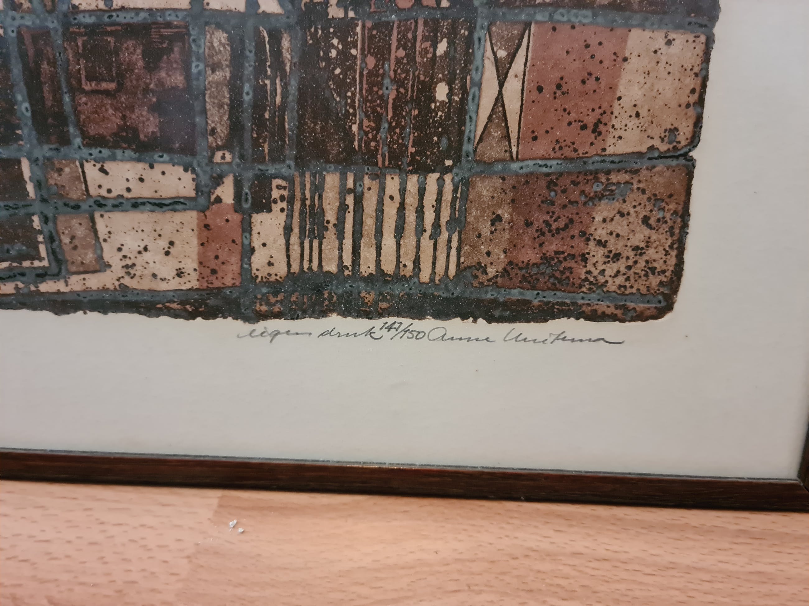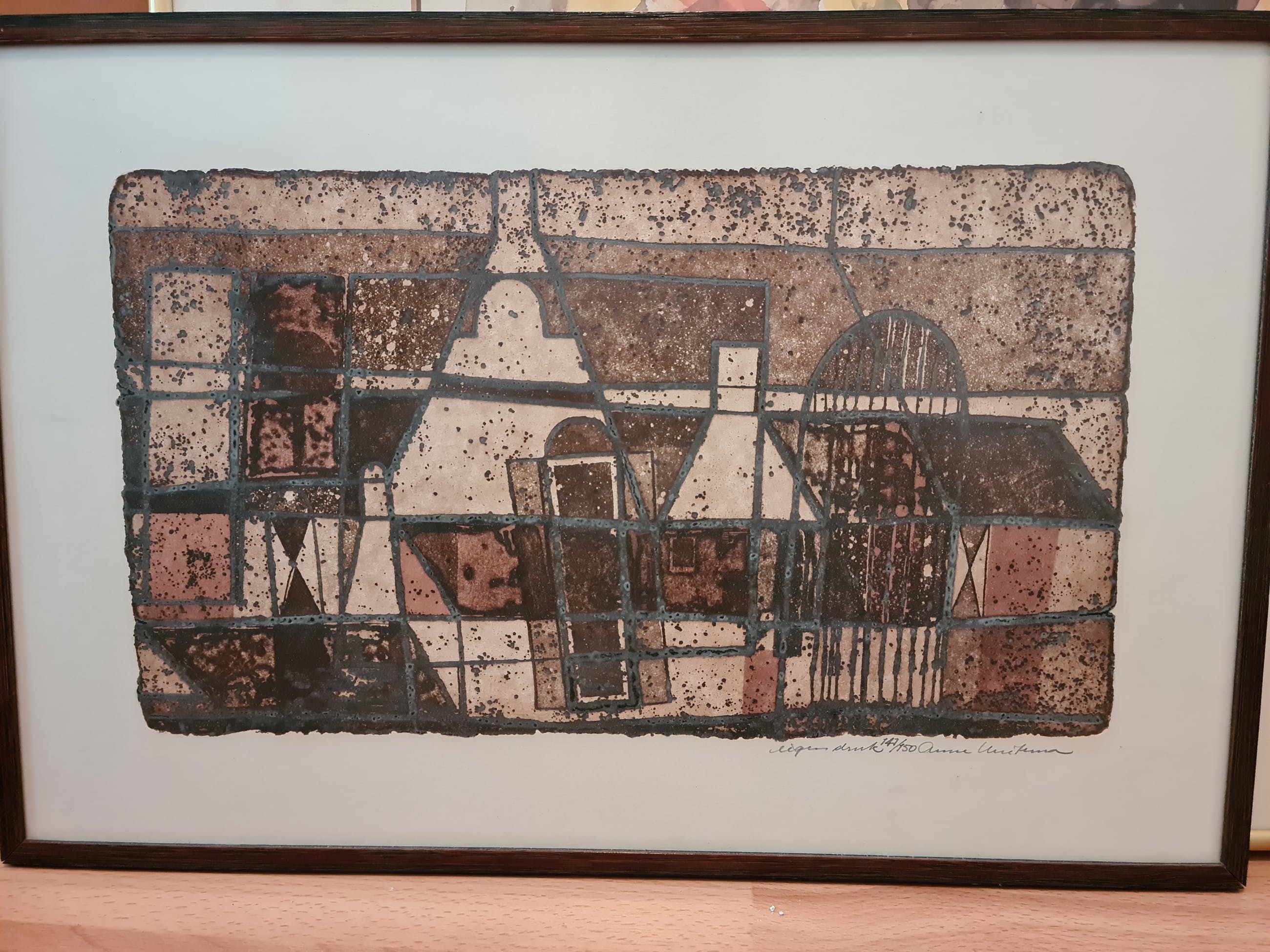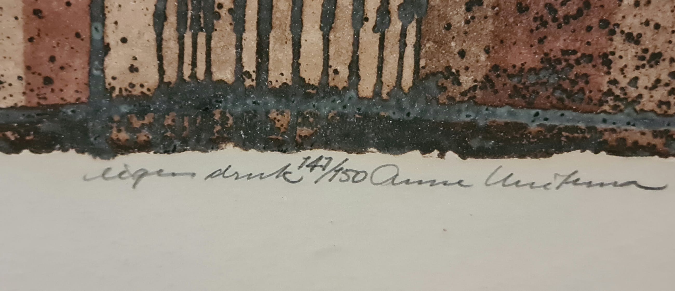 Mooie kleurenlitho in lijst, vervaardigd door Anne Huitema (1941).