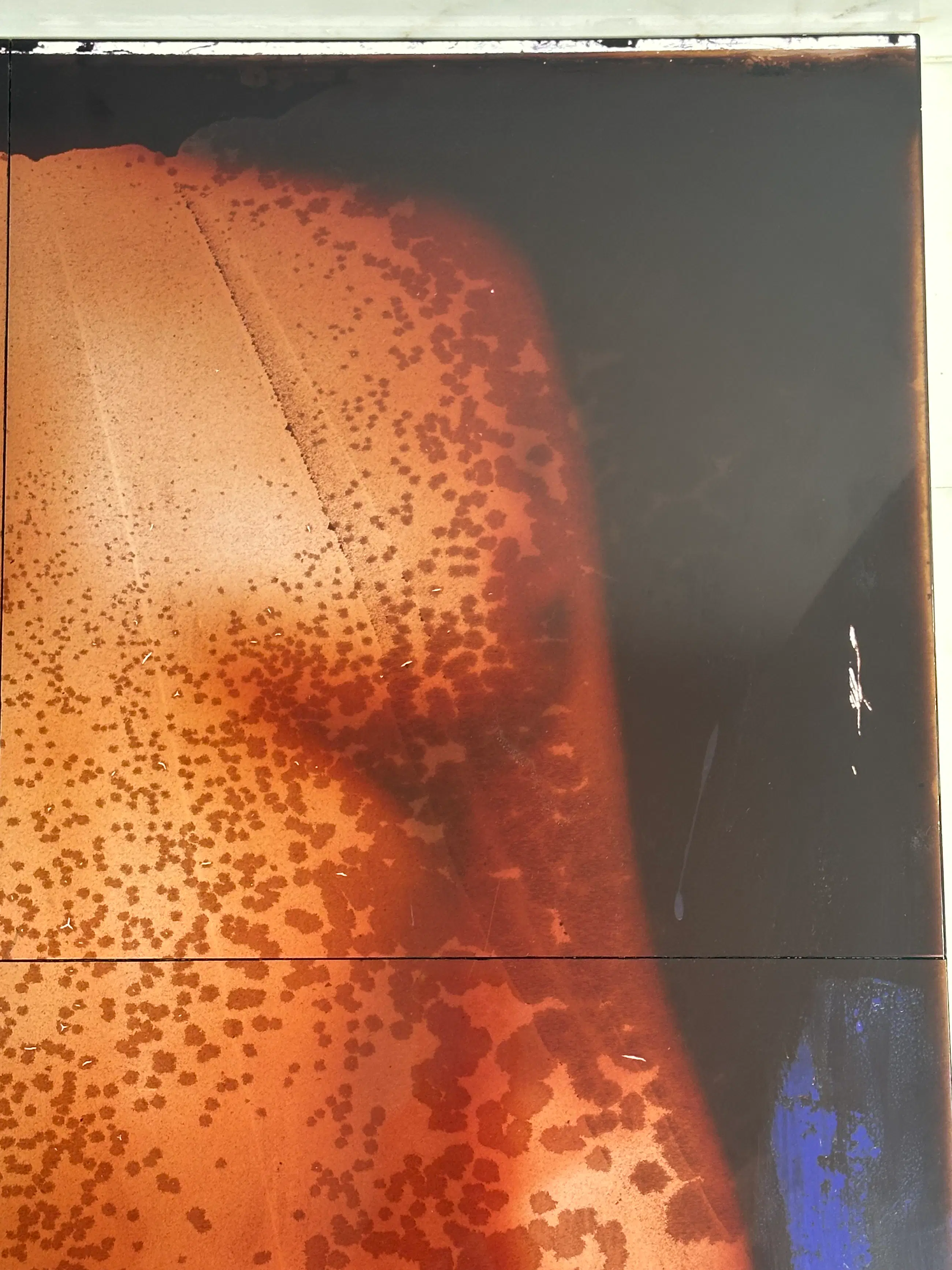 Let op: rechts op het werk zit een kleine beschadiging. Ter plaatse van het blauw lijkt de toplaag losgekomen (mogelijk tgv verkeerd schoonmaken?) Niet storend aangezien het niet op de afbeelding van het naakt zelf zit. Zie alle foto's aangezien ze onderdeel uitmaken van de omschrijving.