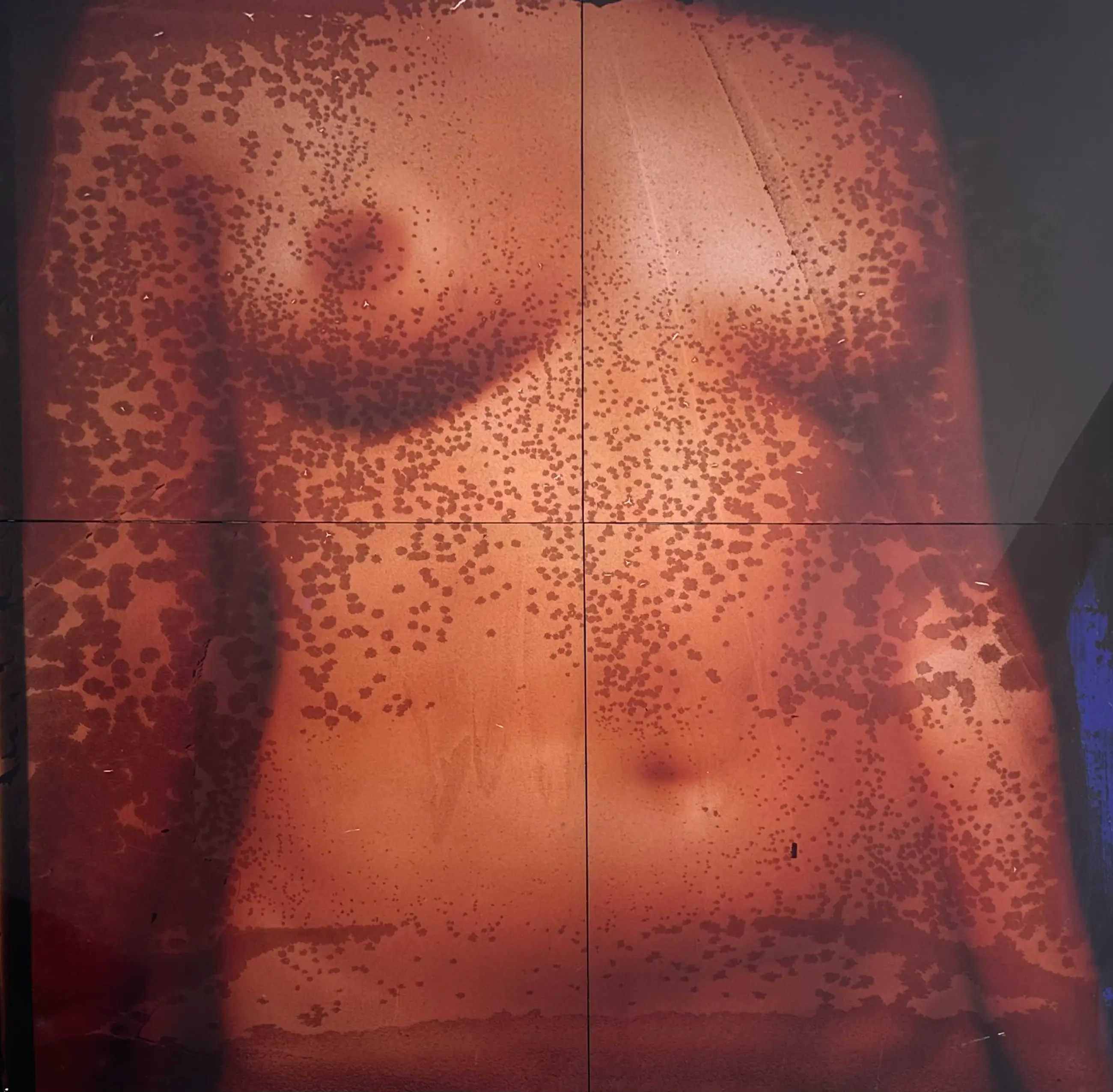 Bijzonder kunstwerk van een vrouwelijk naakt op 4 kunststof panelen op een aluminium plaat & frame (van circa 3cm dik). Het werk is aan de achterzijde gesigneerd en gedateerd.