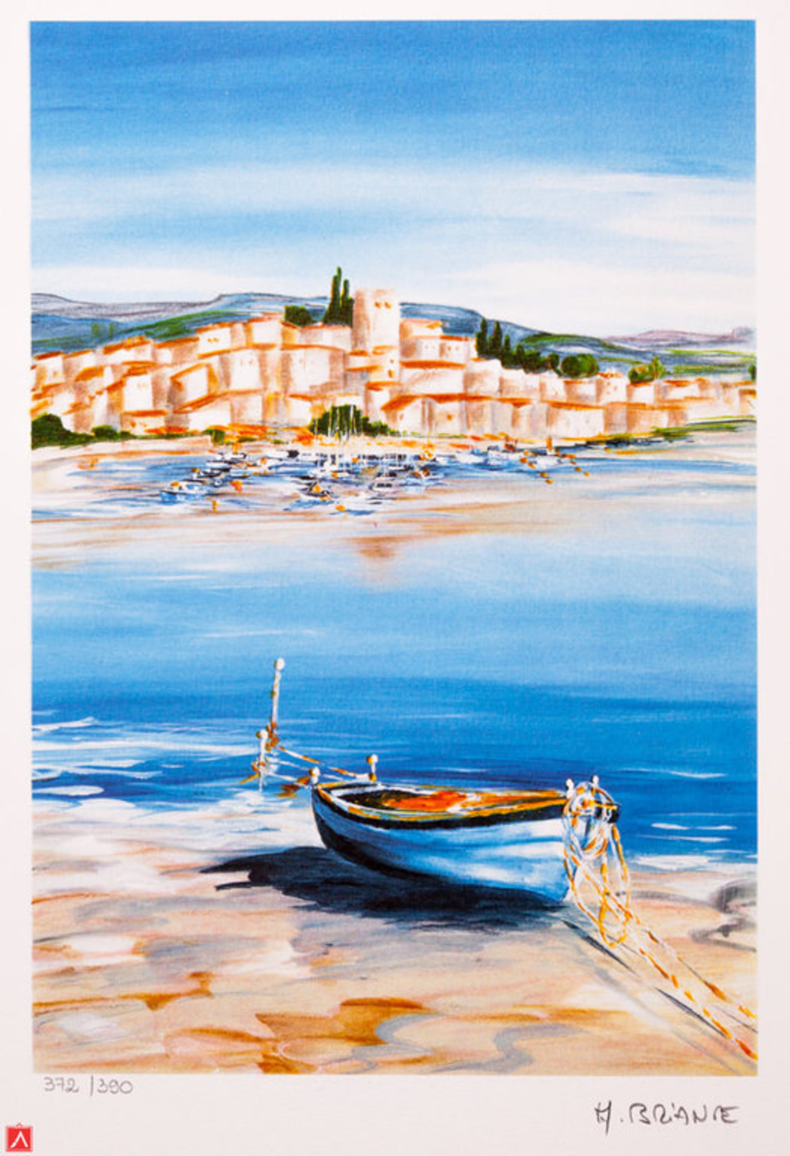 Handgesigneerde en genummerde lithografie van Anne-Marie Briante getiteld "La Barque". De rijkdom in kleur en beweging de lithografie symboliseren haar liefde voor het leven.