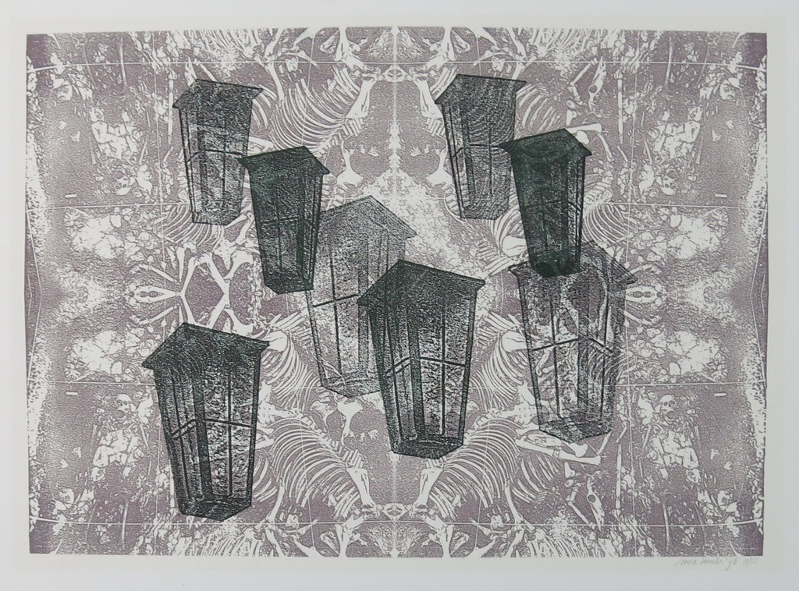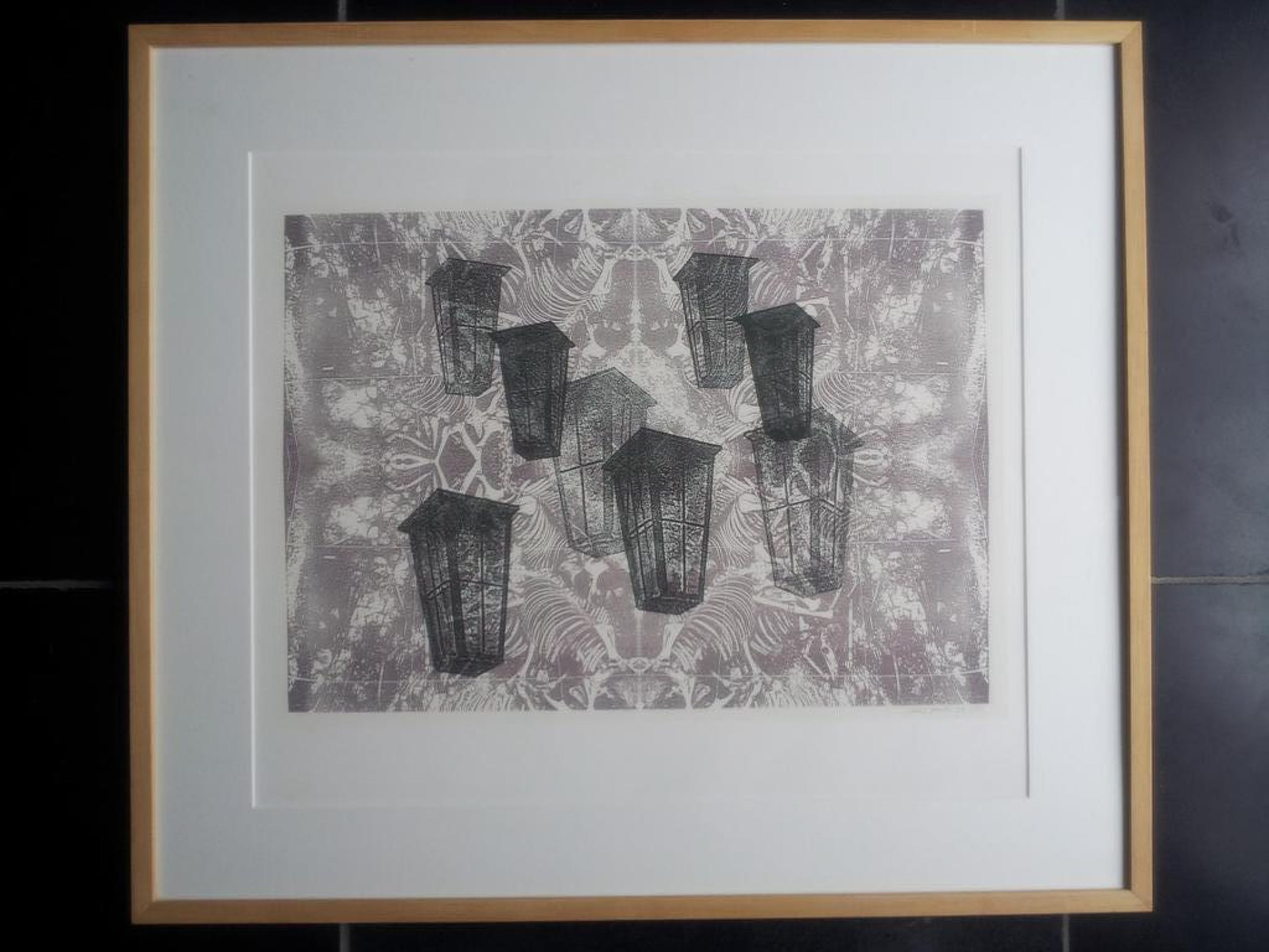 Fraaie zeefdruk van de hand van Anne Semler, ingelijst in een goede blank houten Barth lijst.