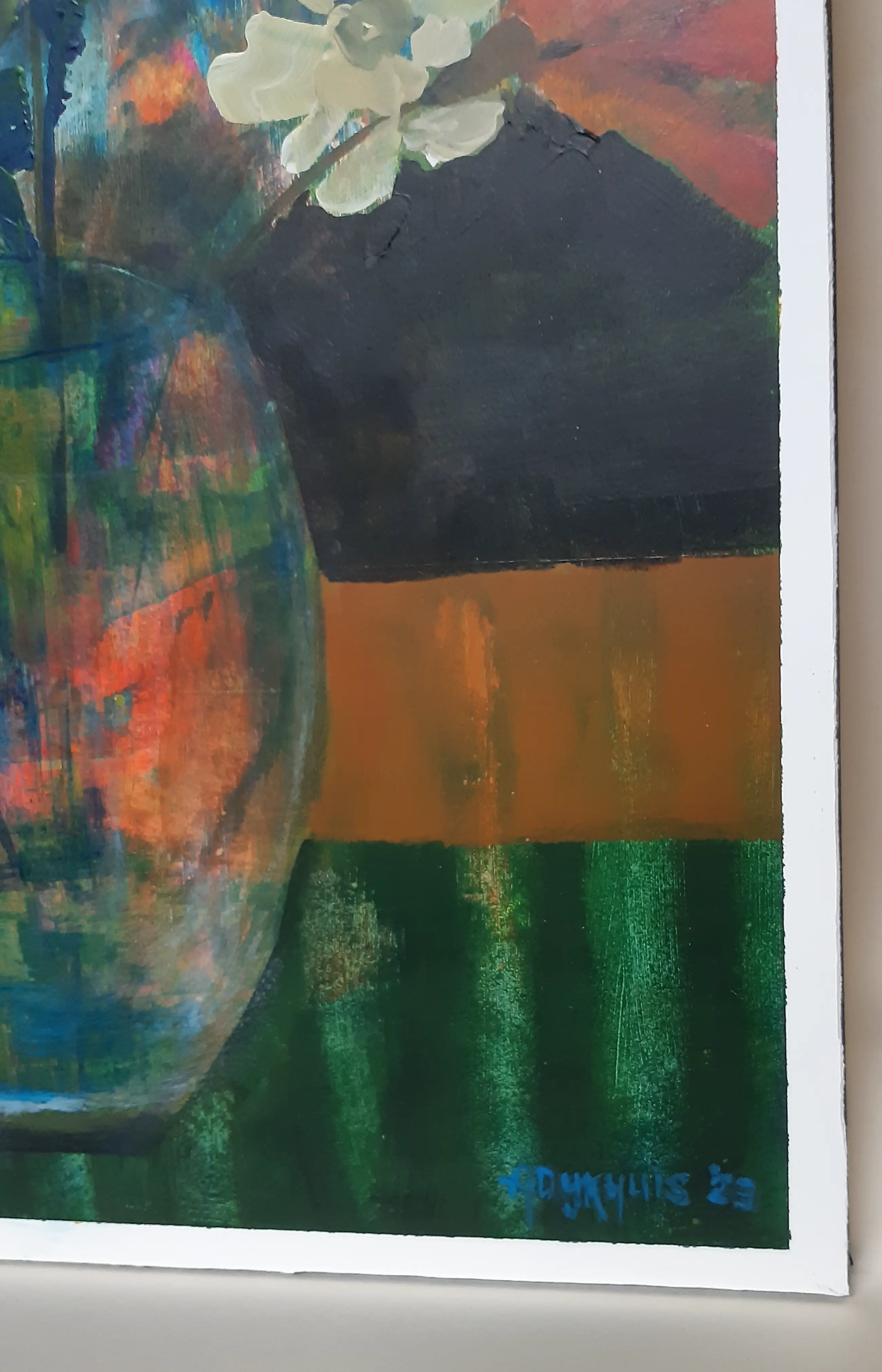 Impressionistisch boeket, geschilderd in acryl op stevig papier, gemonteerd op een paneel