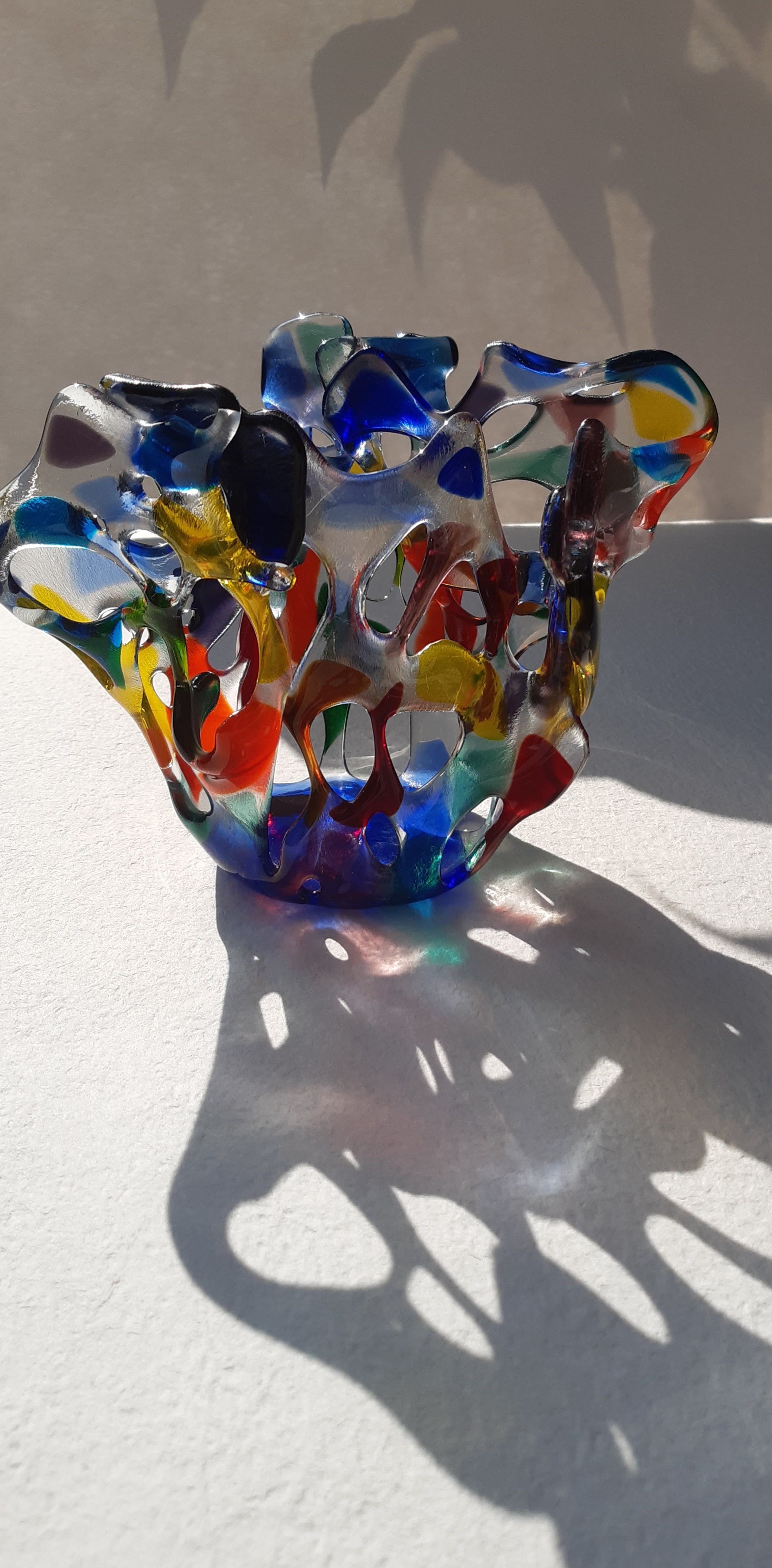Dit kleurrijke glasobject "Valparaiso " is genoemd naar één van de mooiste steden van Zuid-Amerika met de felgekleurde huizen in Victoriaanse stijl. Ook als windlicht te gebruiken.