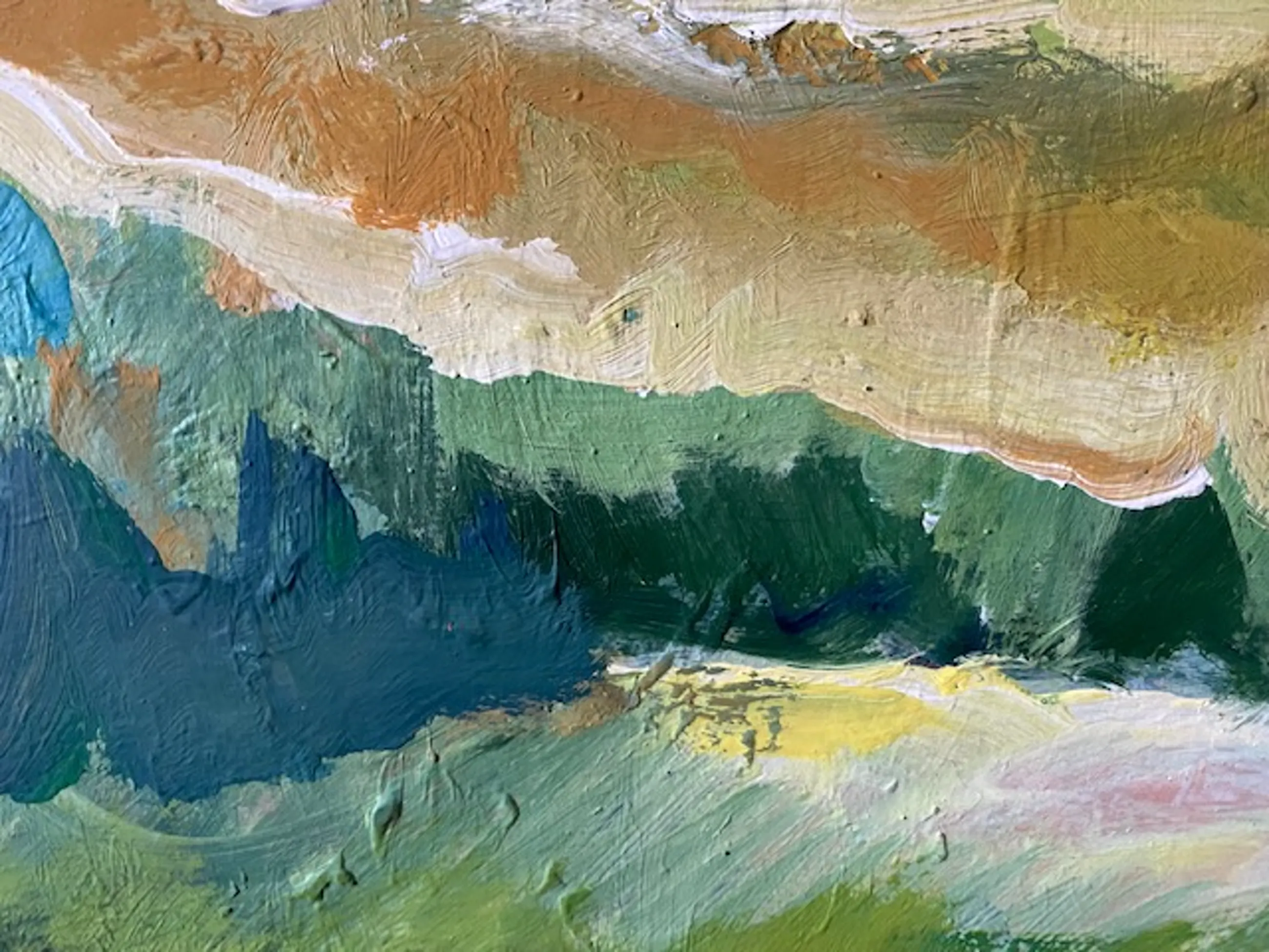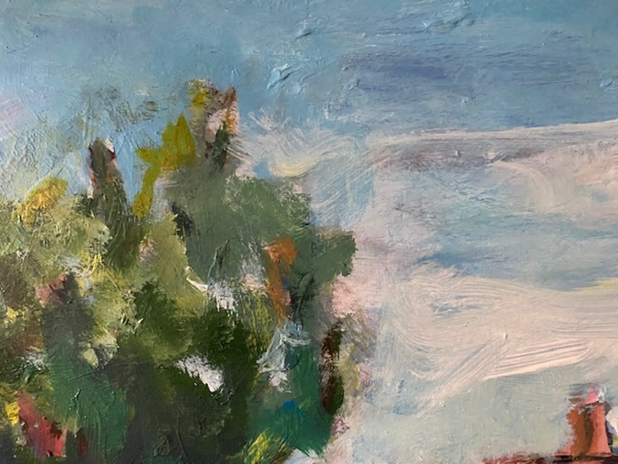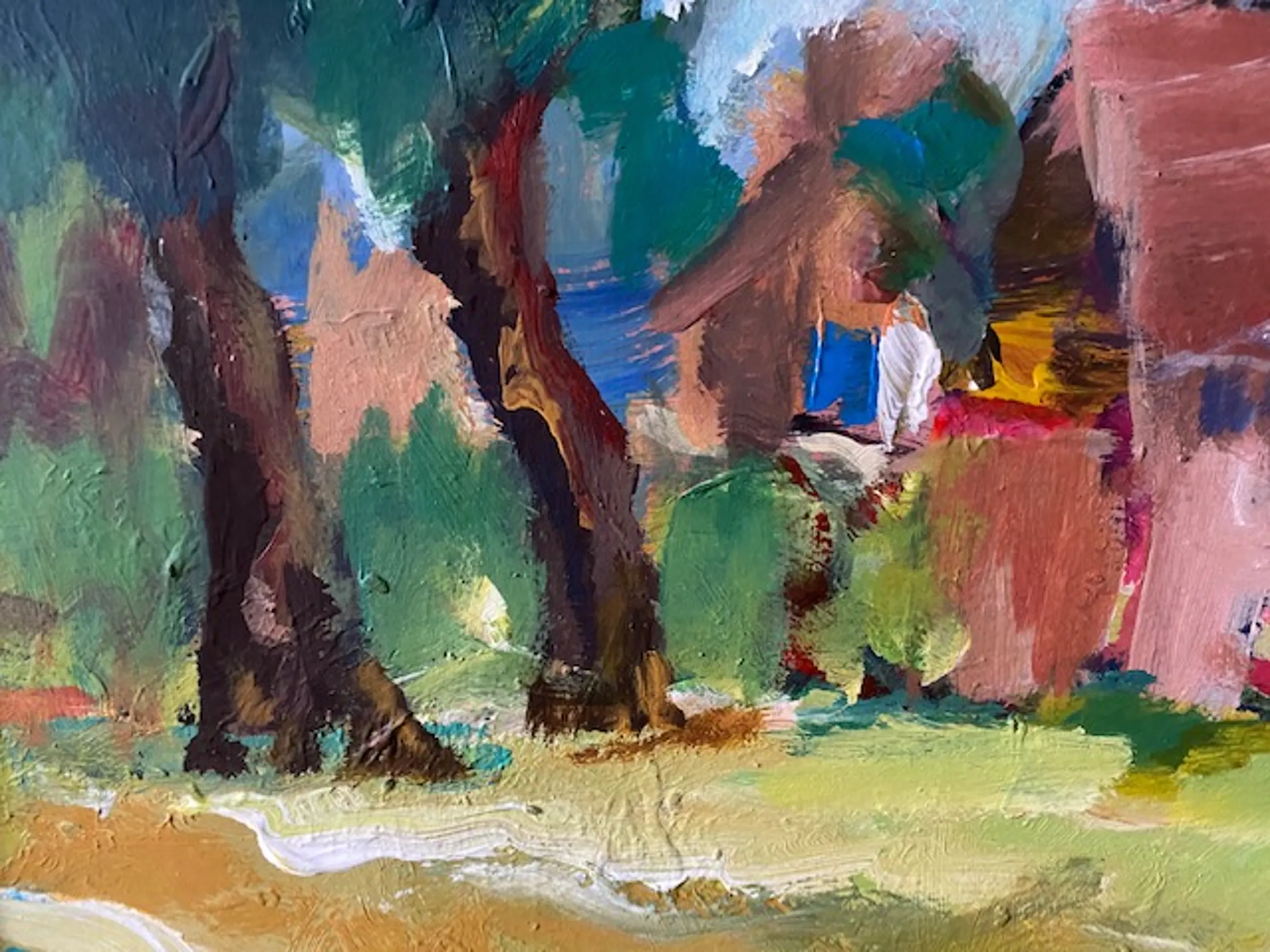 Anneke KImmel-van der Made staat ingeschreven in de registers van RKD, het Nederlands Instituut voor Kunstgeschiedenis, met als specialiteit tekenen. Dit kleurrijke impressionistische werk laat zien dat zij veel meer in haar mars draagt.
