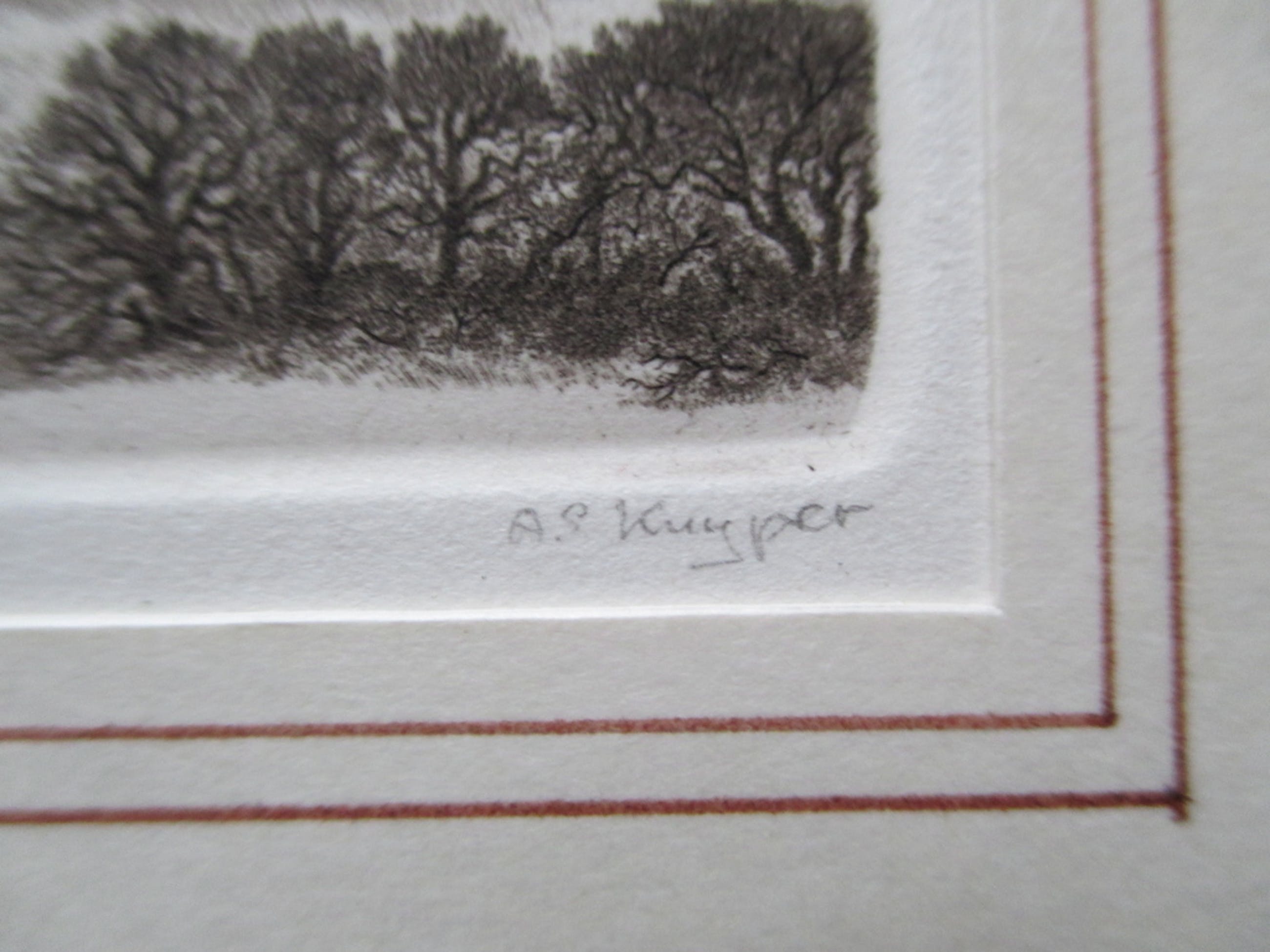 Heel fijn etsje van Anneke Kuijper, r.o gesigneerd. Geplaatst in passepartout, afm. 16,7x21,7. Afm beeld ca 5,4x4,3 cm. De staat van het blad is perfect, het passepartout heeft l.o wat schade, zie foto 4.