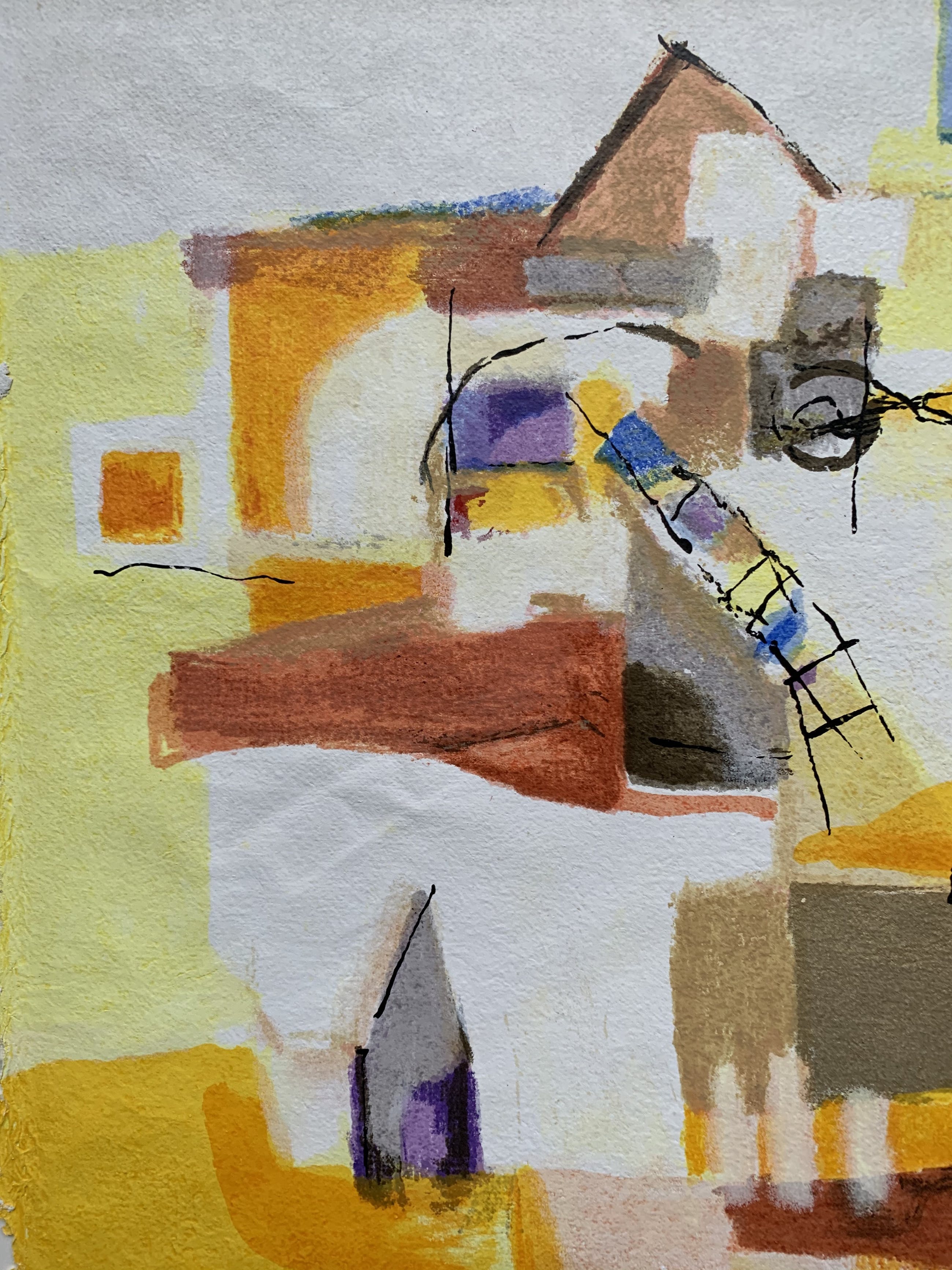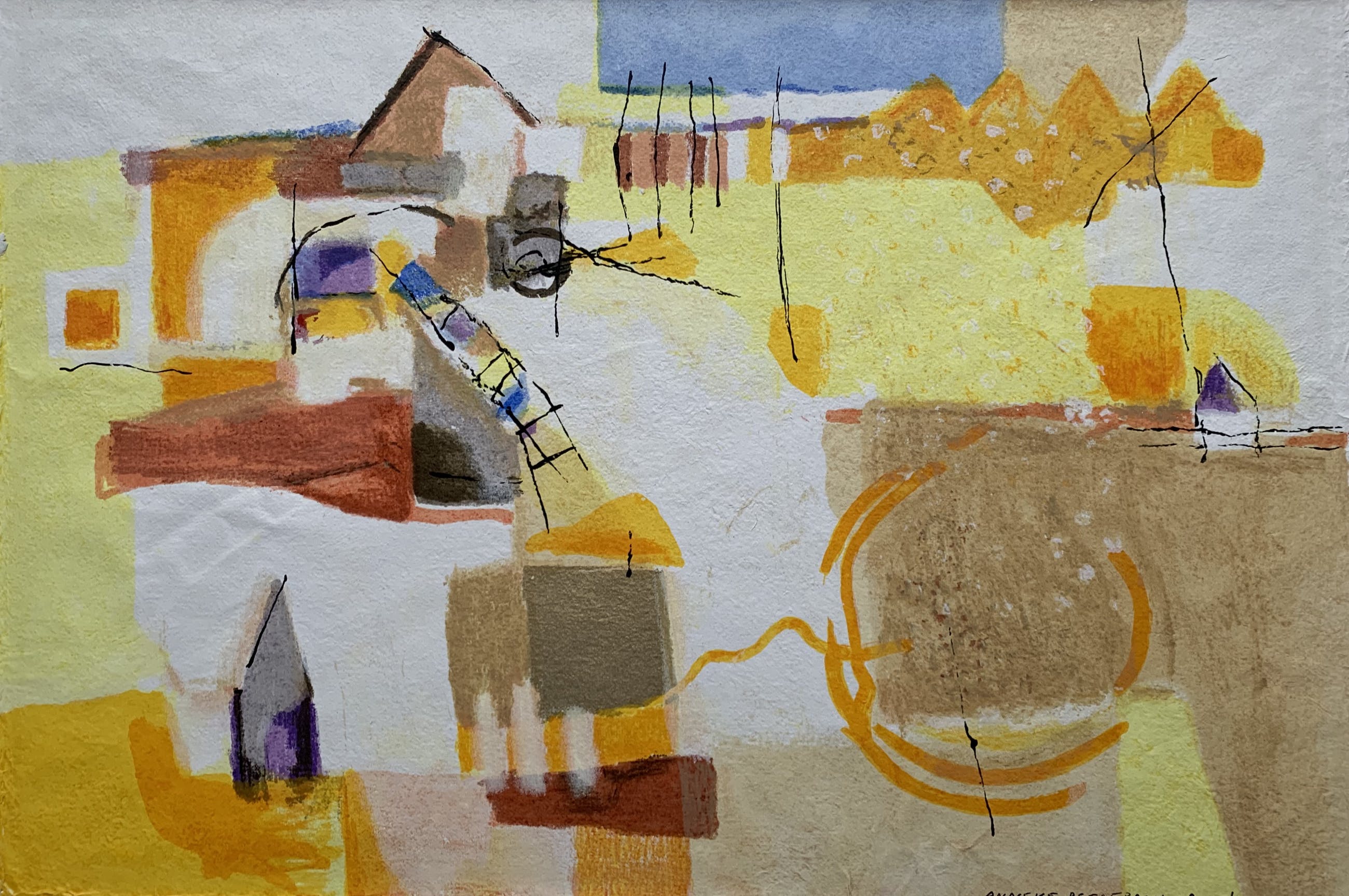 Een zeefdruk om vrolijk van te worden. Het licht van de dag is mooi uitgebeeld in heldere kleuren.