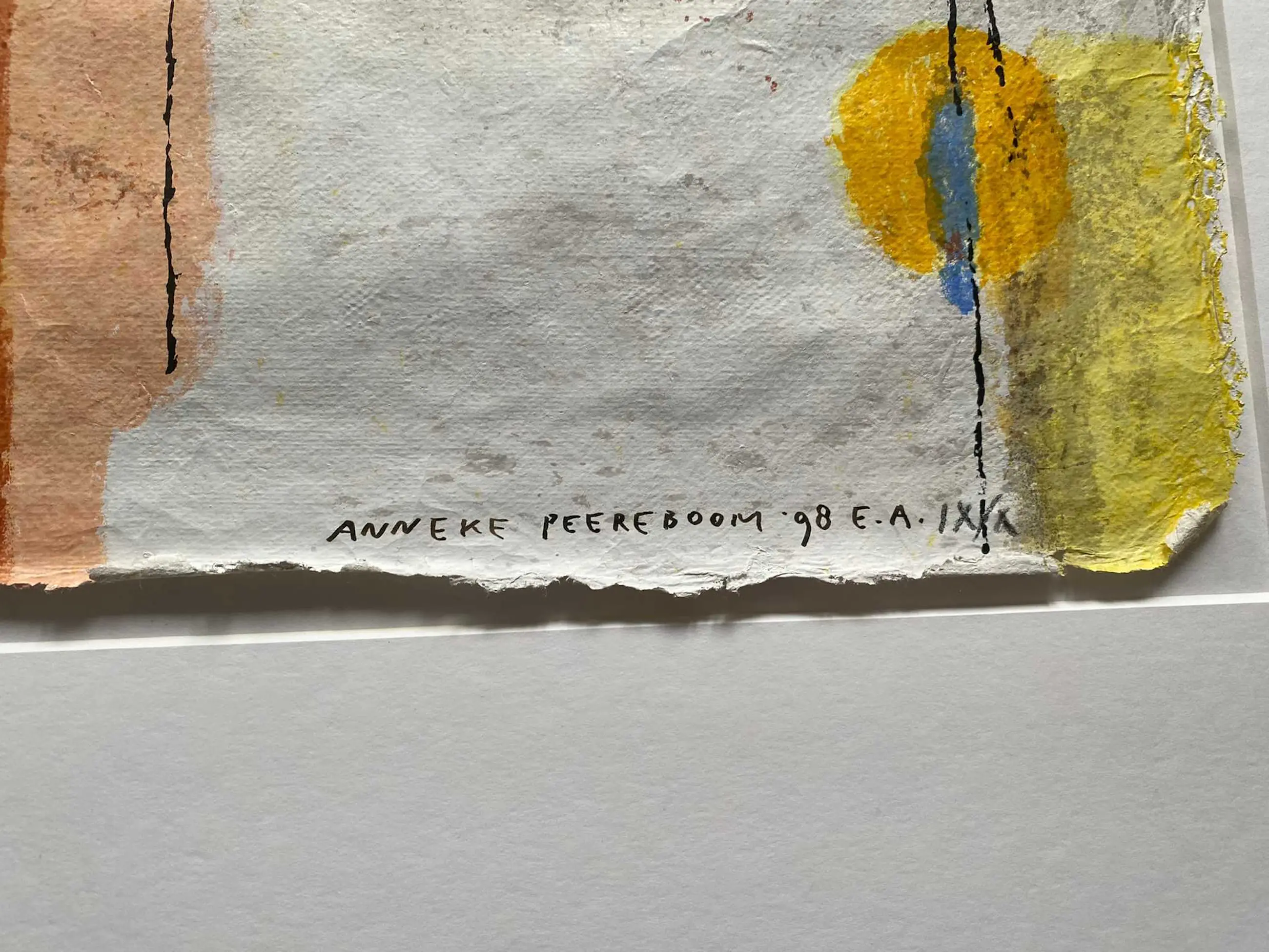 Fraaie werk van Anneke Peereboom, Inclusief lijst zonder glas. Licht beschadigd.