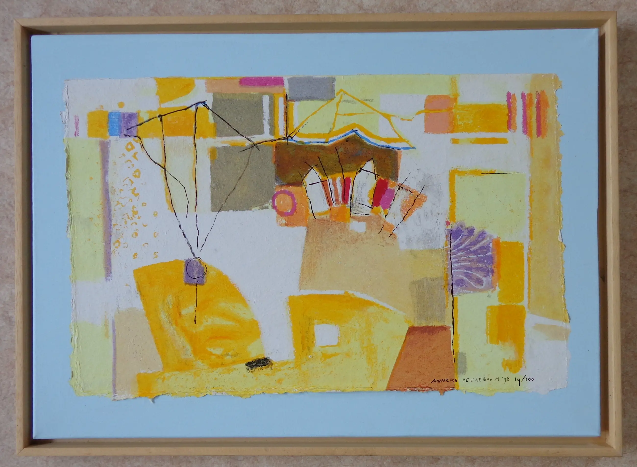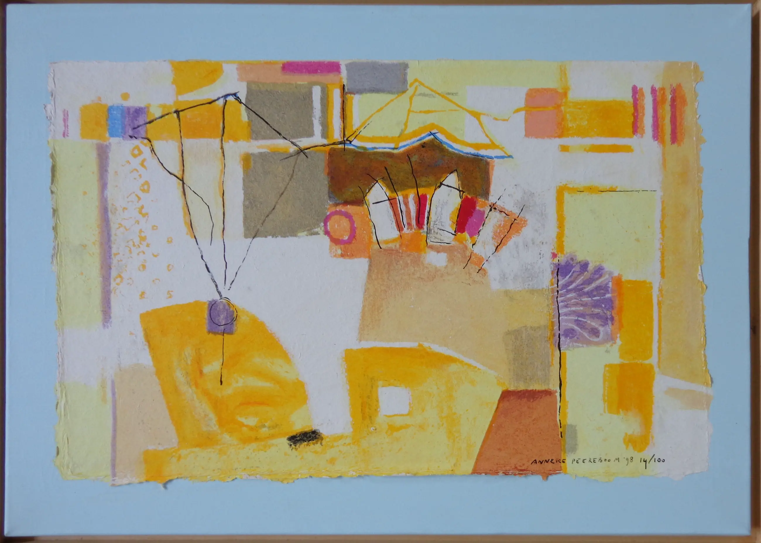 Kleurzeefdruk op Chinees papier, gemonteerd op beschilderd doek.