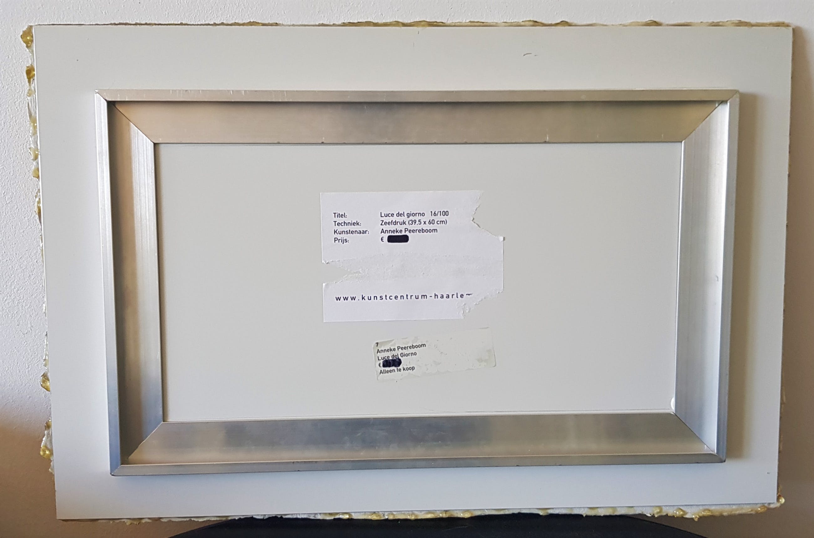 Anneke Peereboom (1950) 'Luce del Giorno' (16/100) Type: Schilderij Jaartal: 90’s Techniek: Zeefdruk Drager: Papier Stijl: Abstract Onderwerp: Landschap Ingelijst : op kunststof Afmetingen: 40 cm x 60 cm (h x b) Gesigneerd
