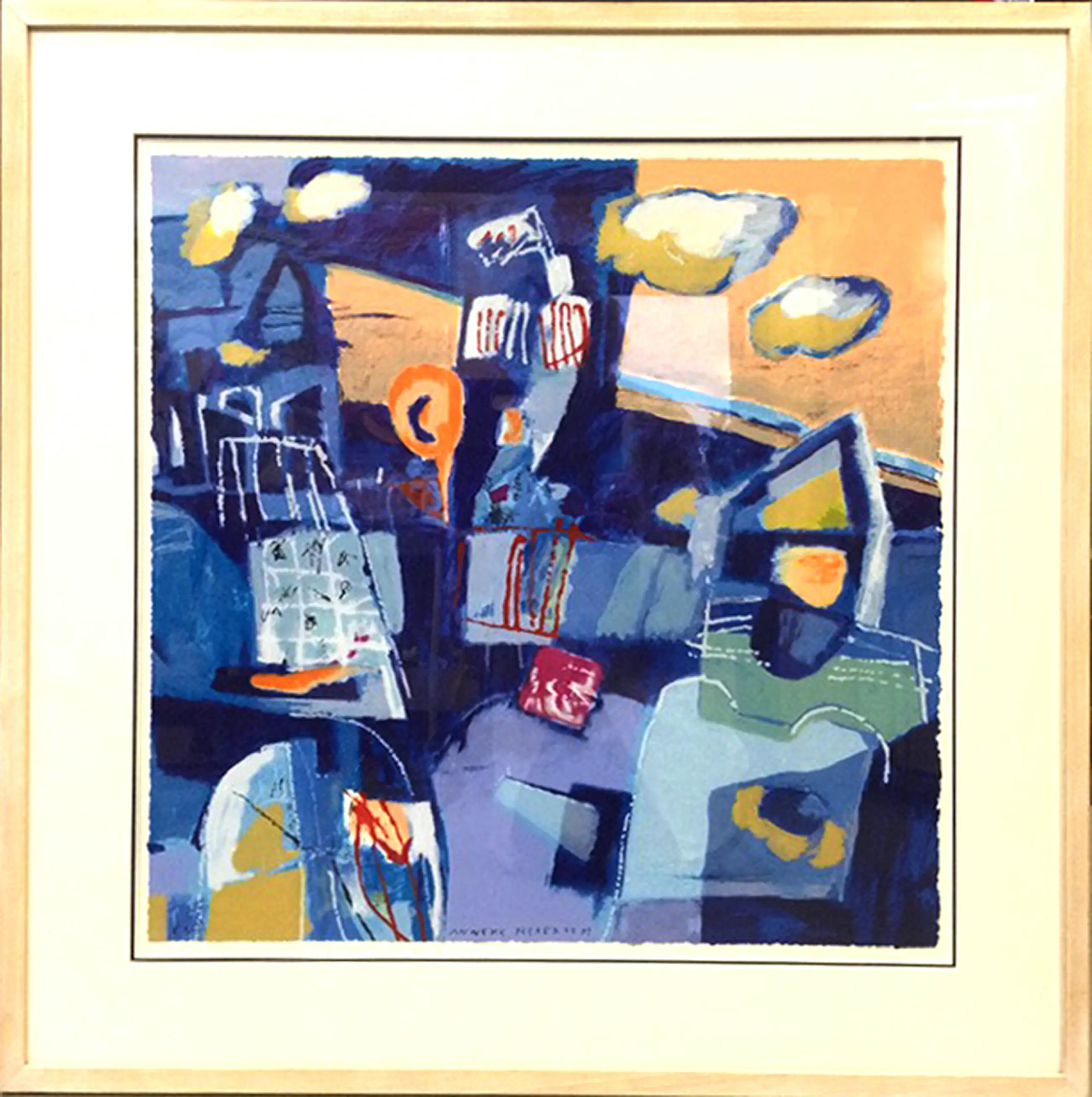 Droomkasteel; kleurrijk verhalend doek, veel blauw.