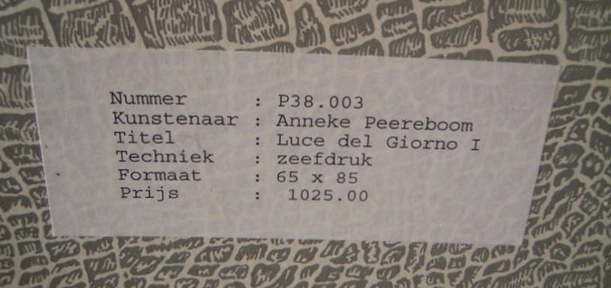 Zeefdruk ANNEKE PEEREBOOM -LUCE DEL GIORNO 1 -85 X 65 CM