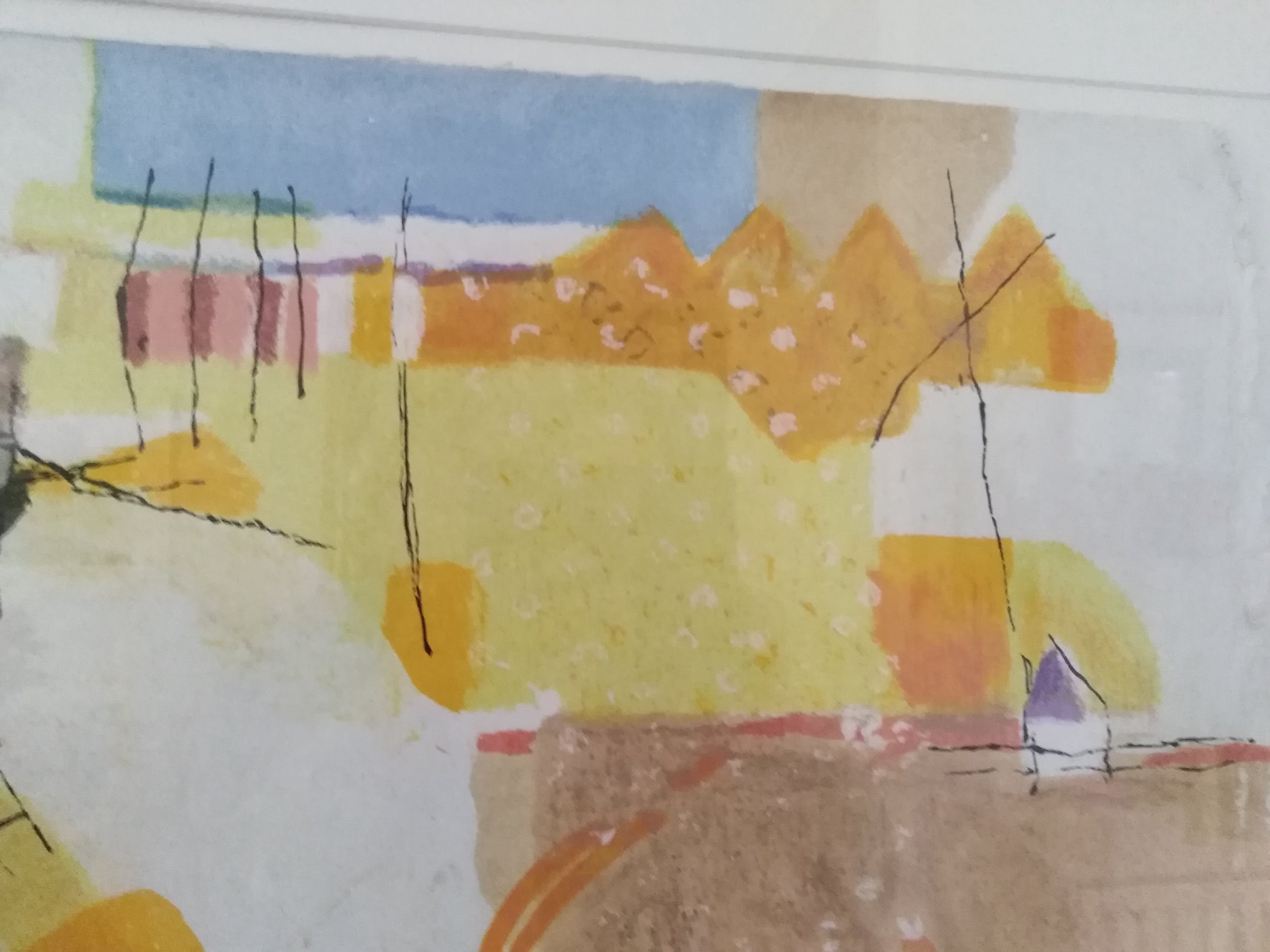 Een vrolijk, enigszins Zuid Europees aandoend "abstract"kunstwerk.