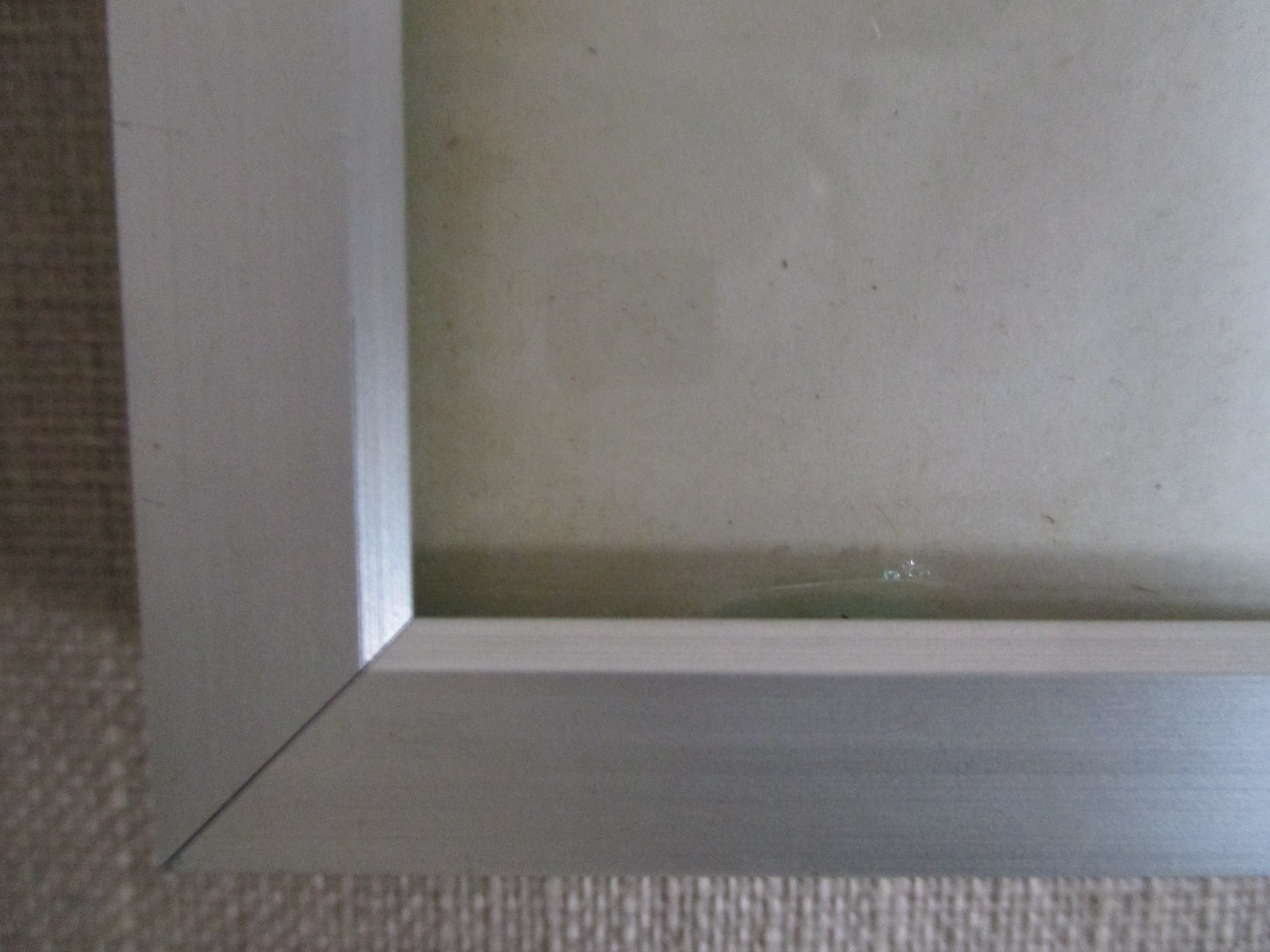 er is 1 kleine beschadiging van het glas achter de lijst, zie foto