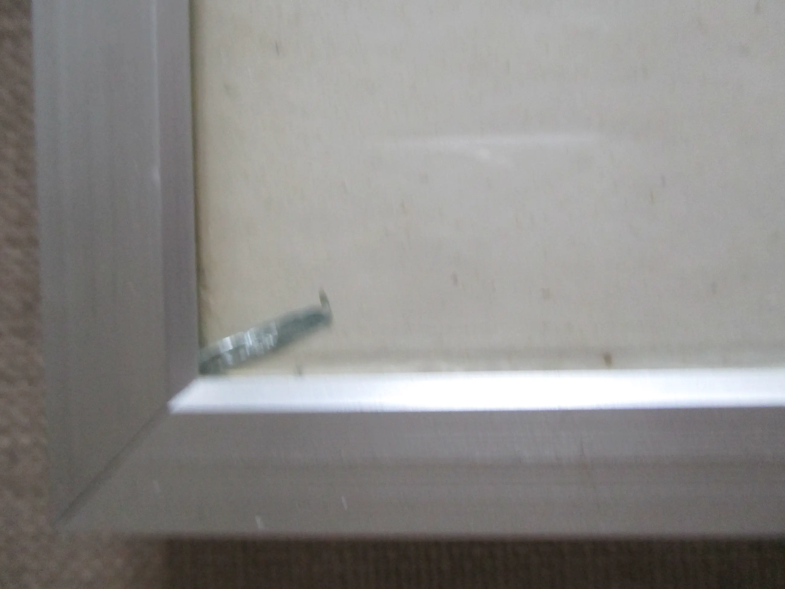 Er zit een kleine beschadiging linksonder in de hoek in het glas langs de rand, zie foto's.