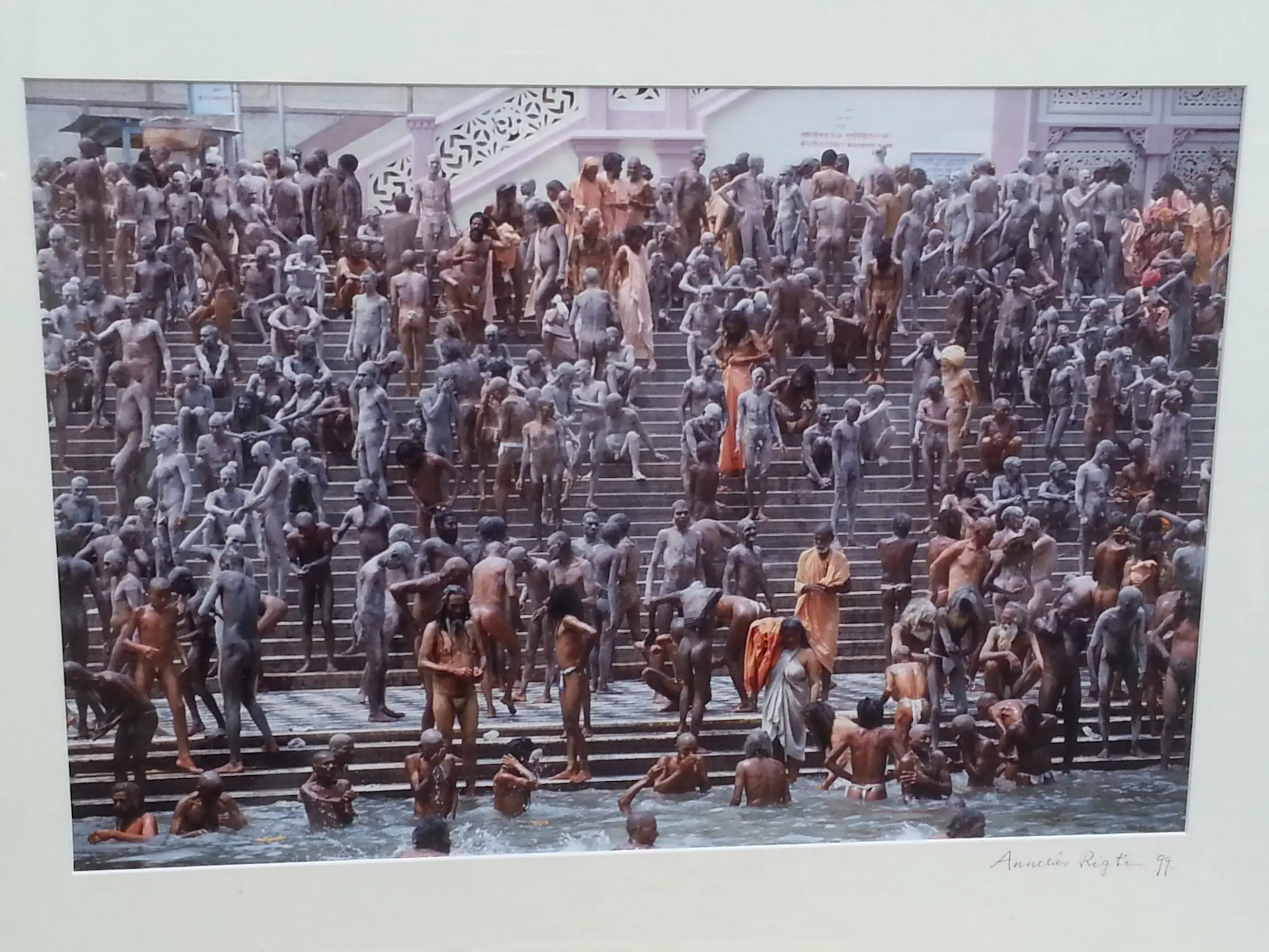 Kumb Mela Ganges, Annelies Rigter, 1999, afm. incl. lijst 82 breed, 64 hoog. Afm. werk is 60 x 40 cm. Digitaal bewerkt.