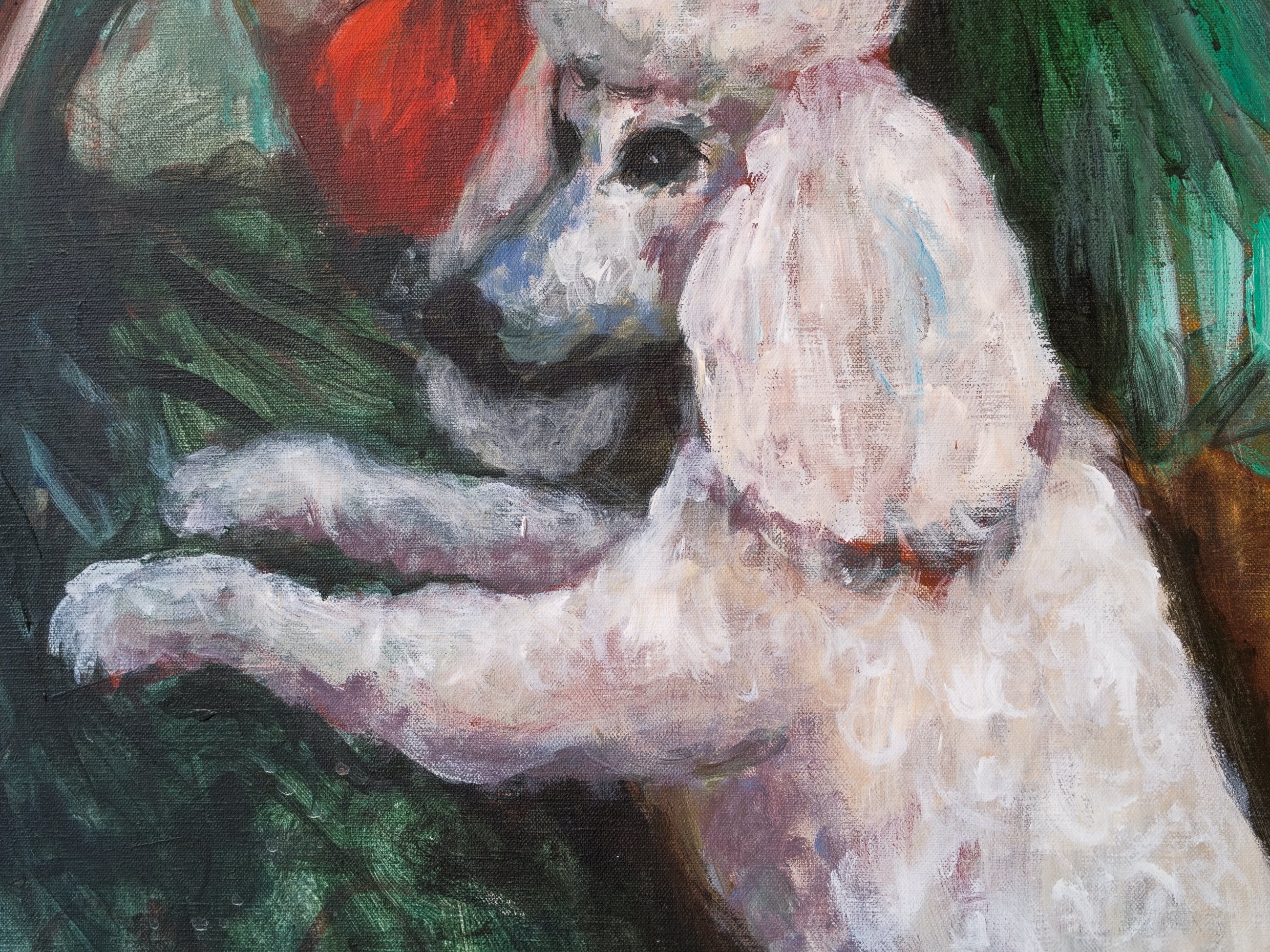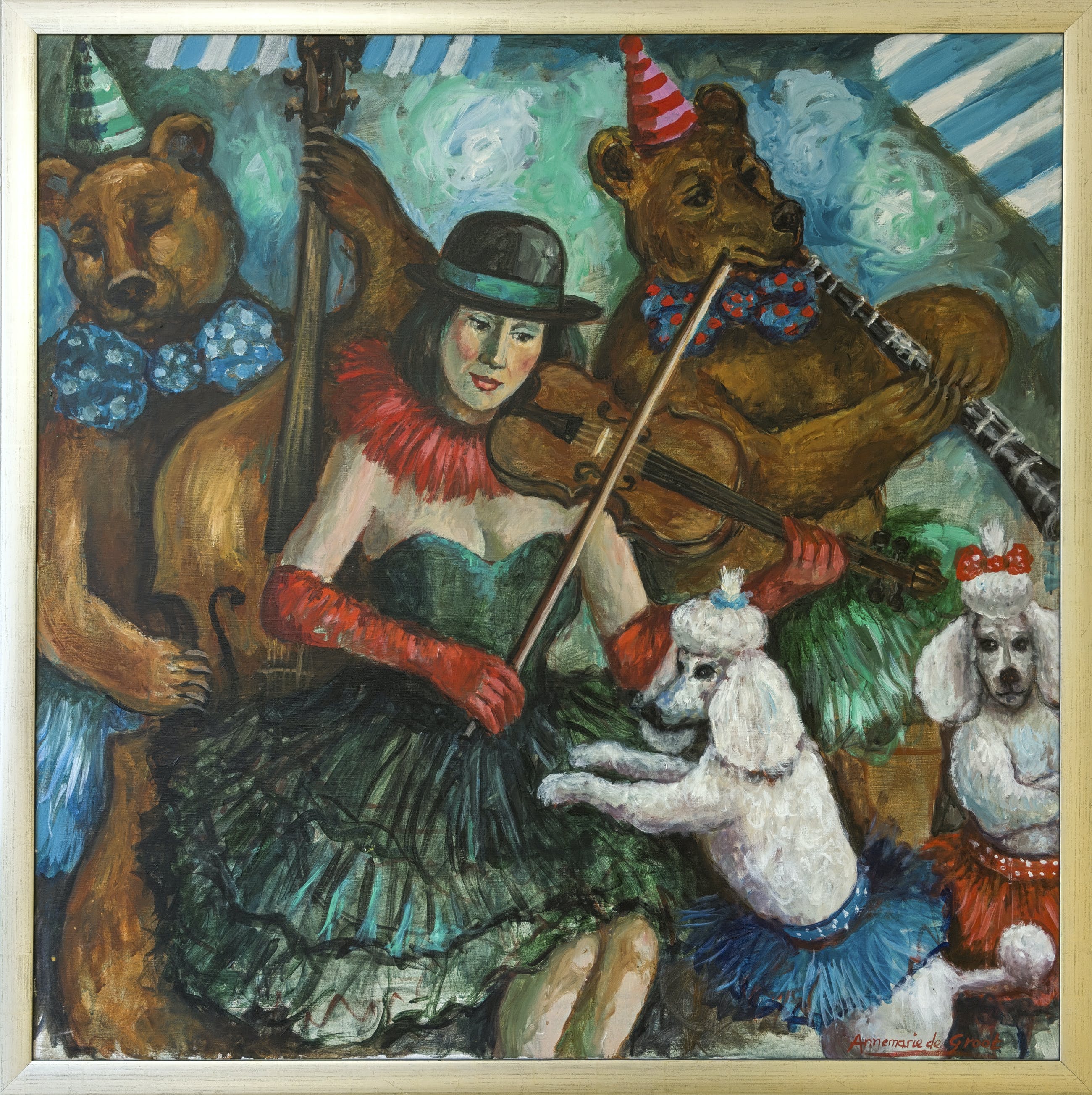 Mooi groot en kleurrijk werk van Annemarie de Groot uit de jaren '90. Ze schilderde toen werken geïnspireerd op circus, theater en opera.
