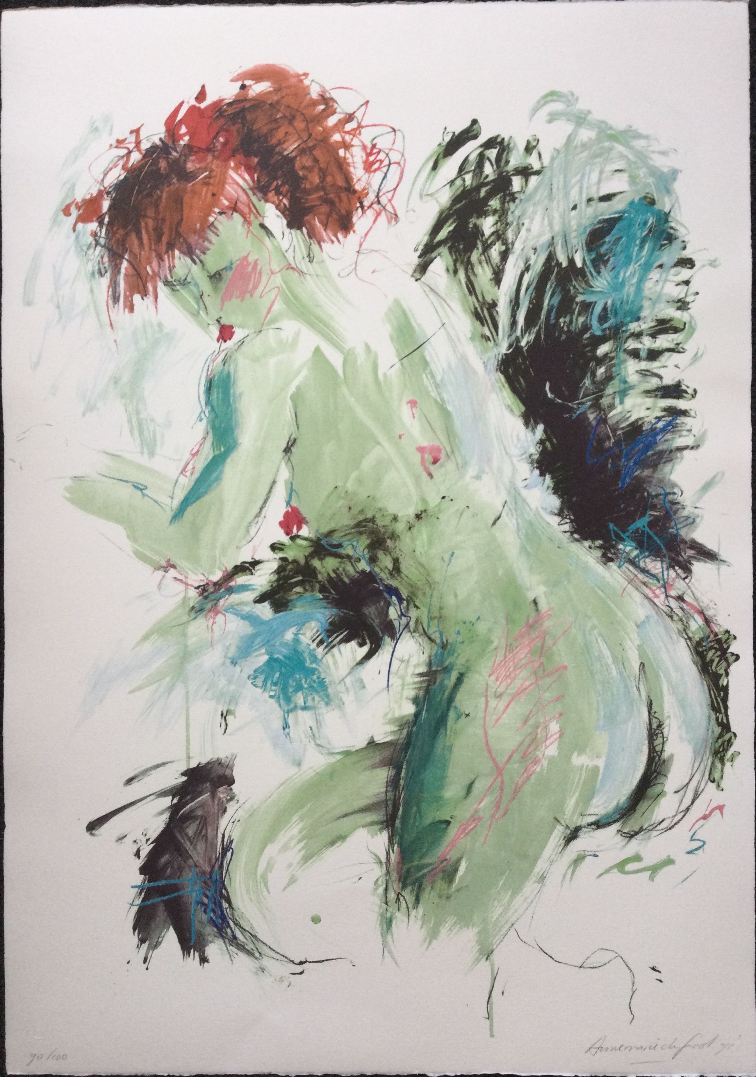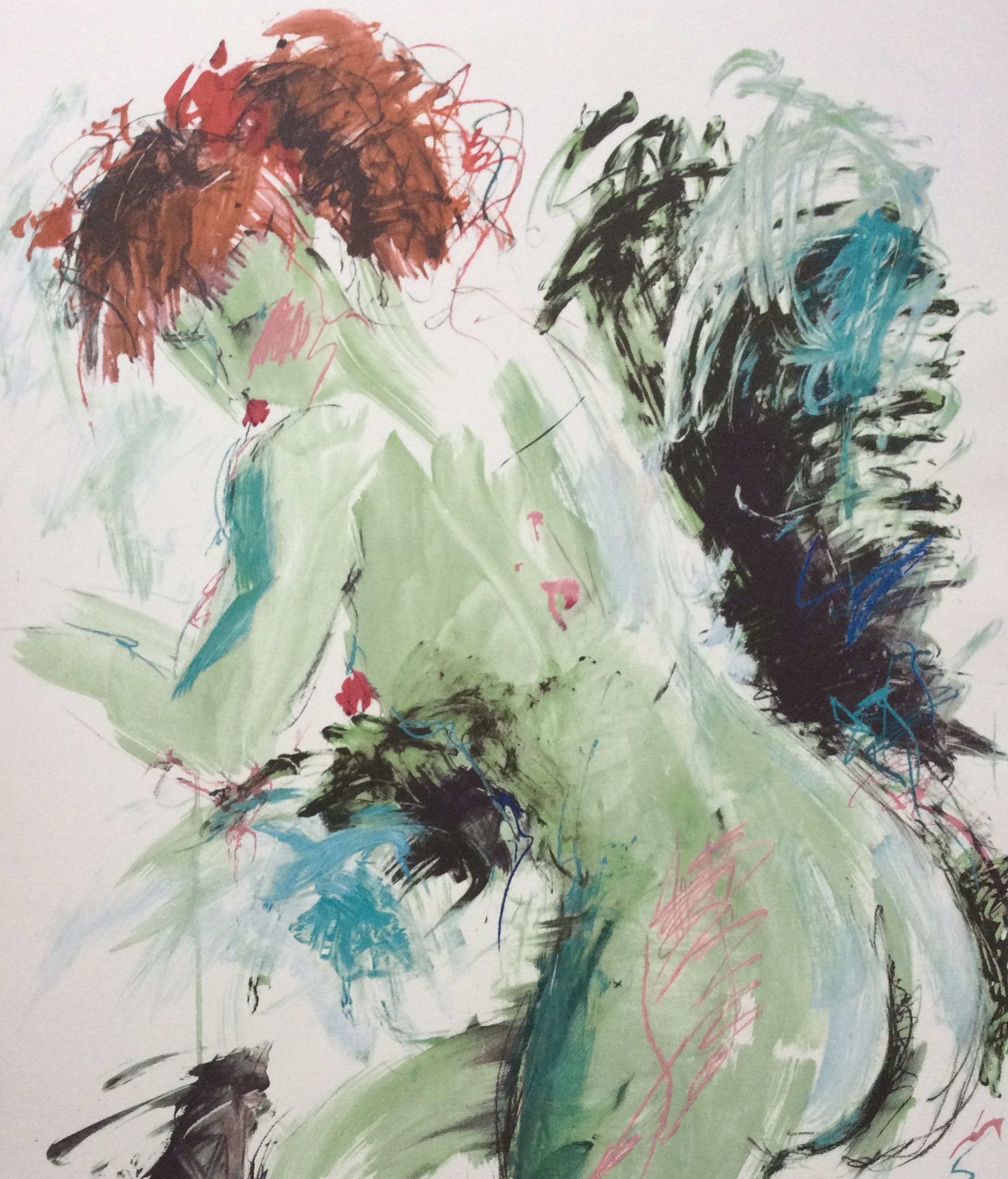 Prachtig grote kleuren zeefdruk in kenmerkende stijl van Annemarie de Groot (Assen, 1952)