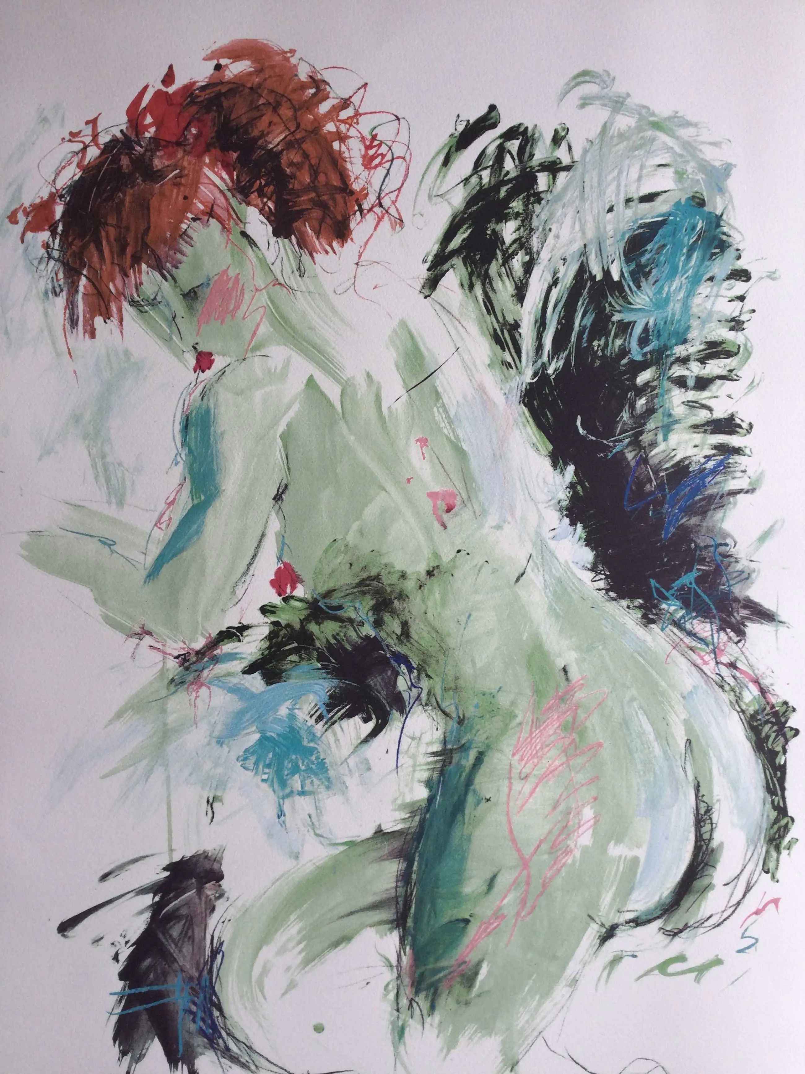 Prachtig grote kleuren zeefdruk in kenmerkende stijl van Annemarie de Groot (Assen, 1952)