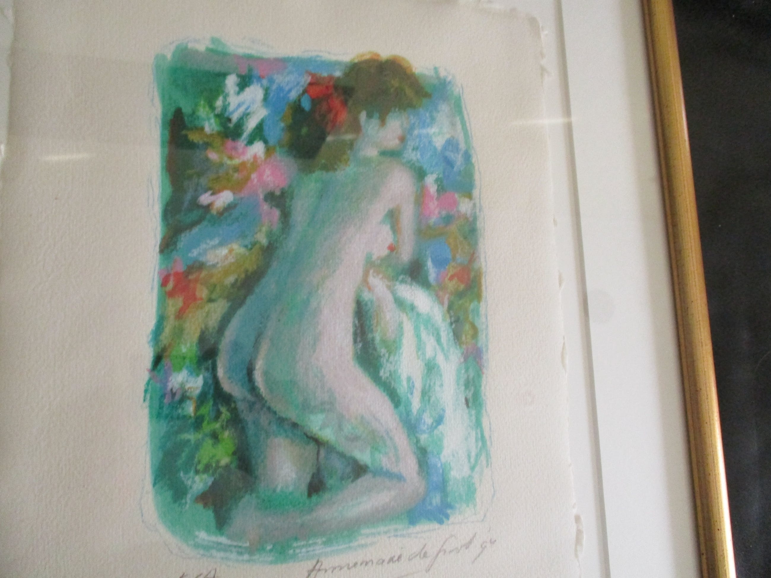 Zeer mooi werk van deze bekende kunstenares , genummerd e/a in een LUXE VERGULDE LIJST