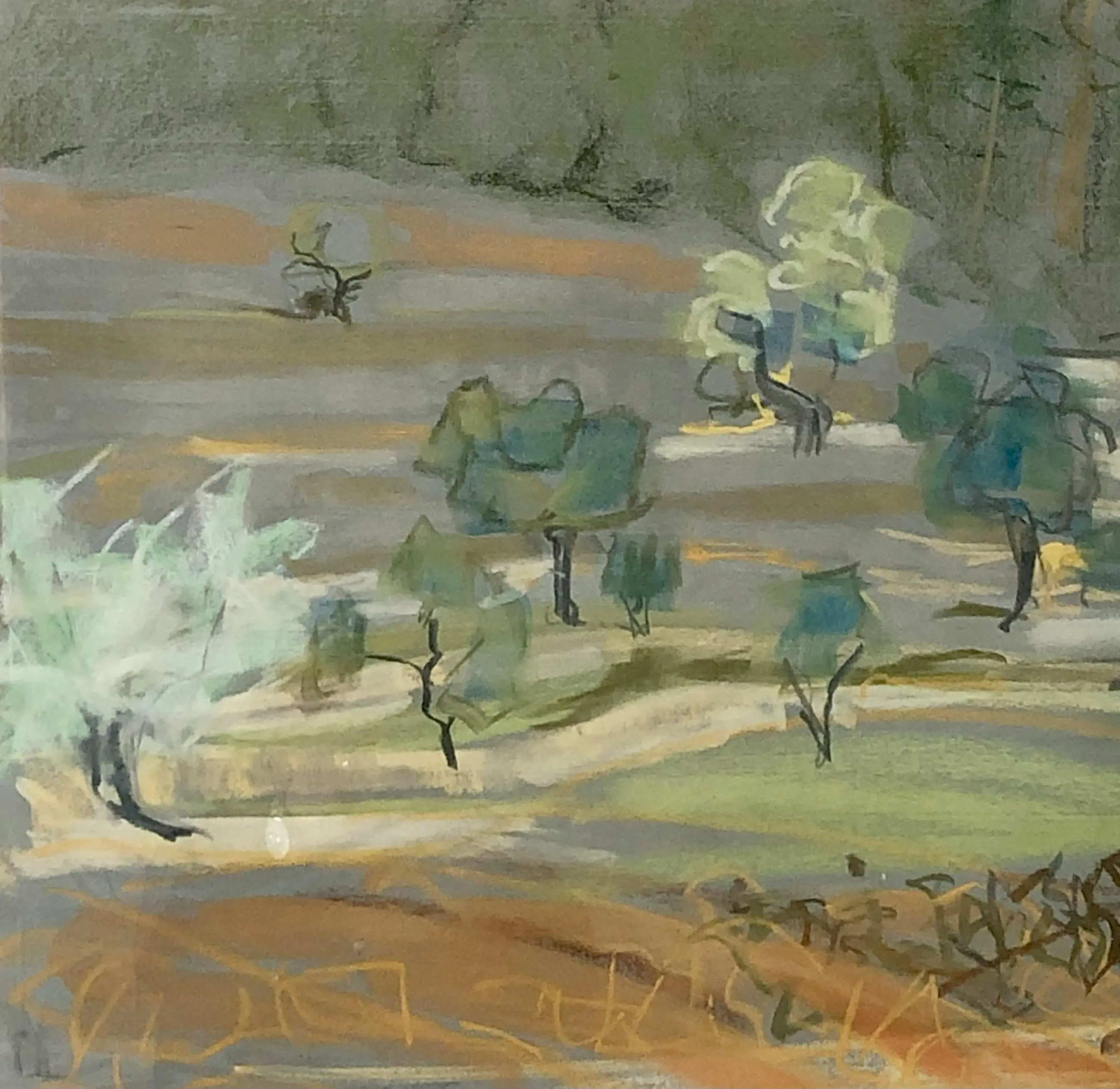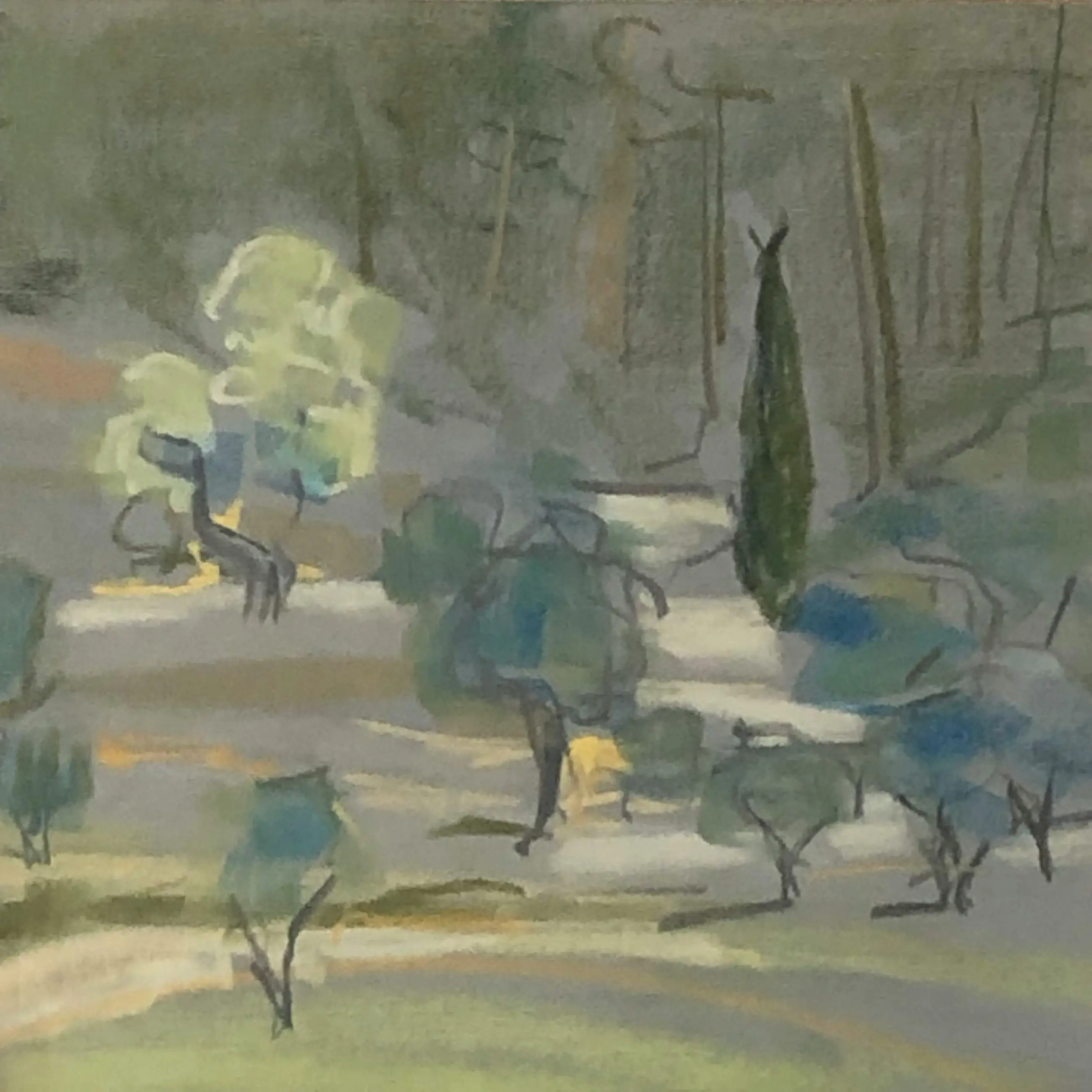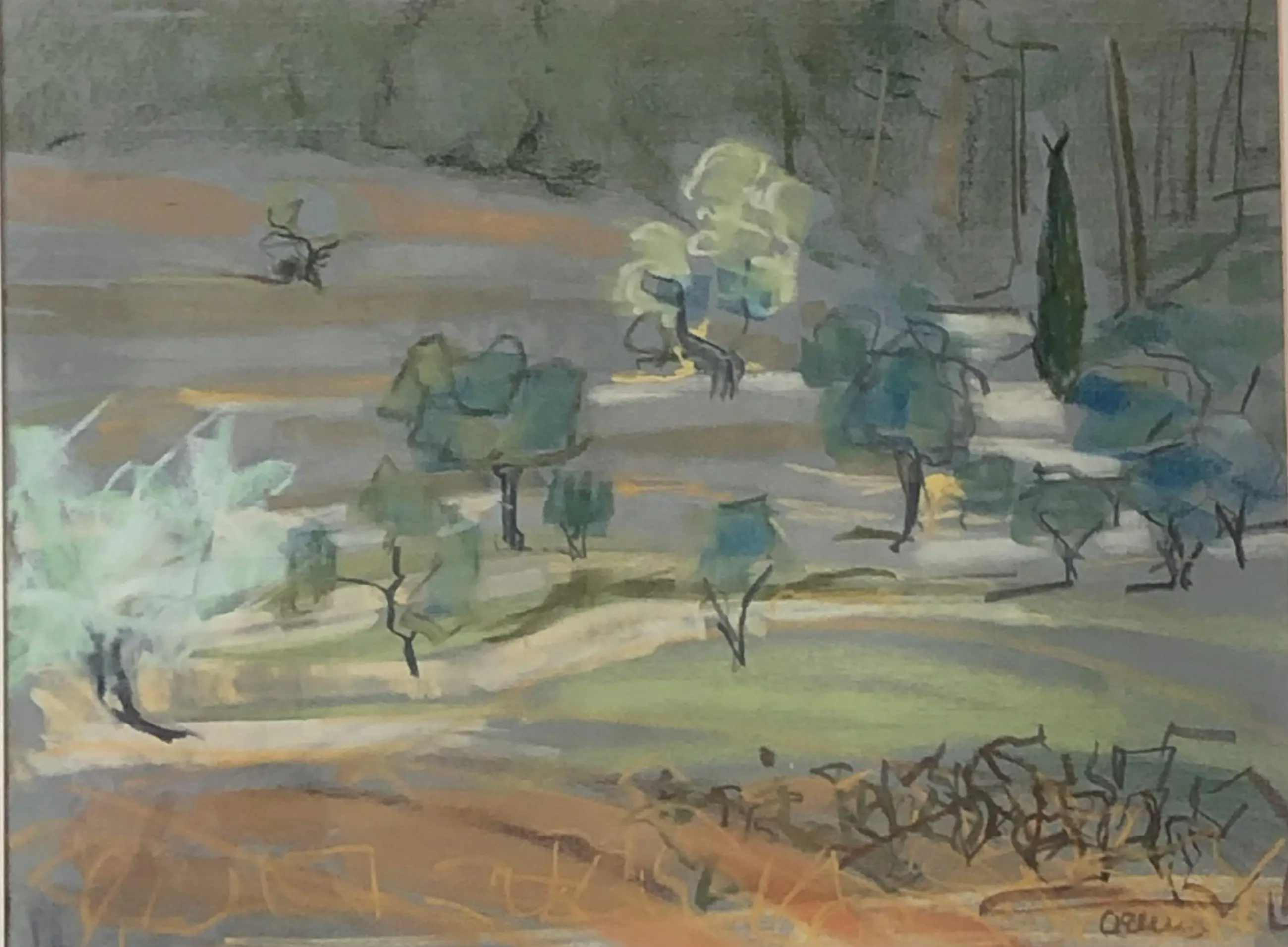 Prachtig kleurig landschap van de bekende Amsterdamse kunstenares Annemarie Eilers. Annemarie Eilers komt uit een familie van kunstliefhebbers die boeken publiceerden en in kunst handelden. Opgeleid aan de Rijksakademie van Beeldende Kunsten in Amsterdam en woonde werkte in Nederland, Frankrijk en Italië.