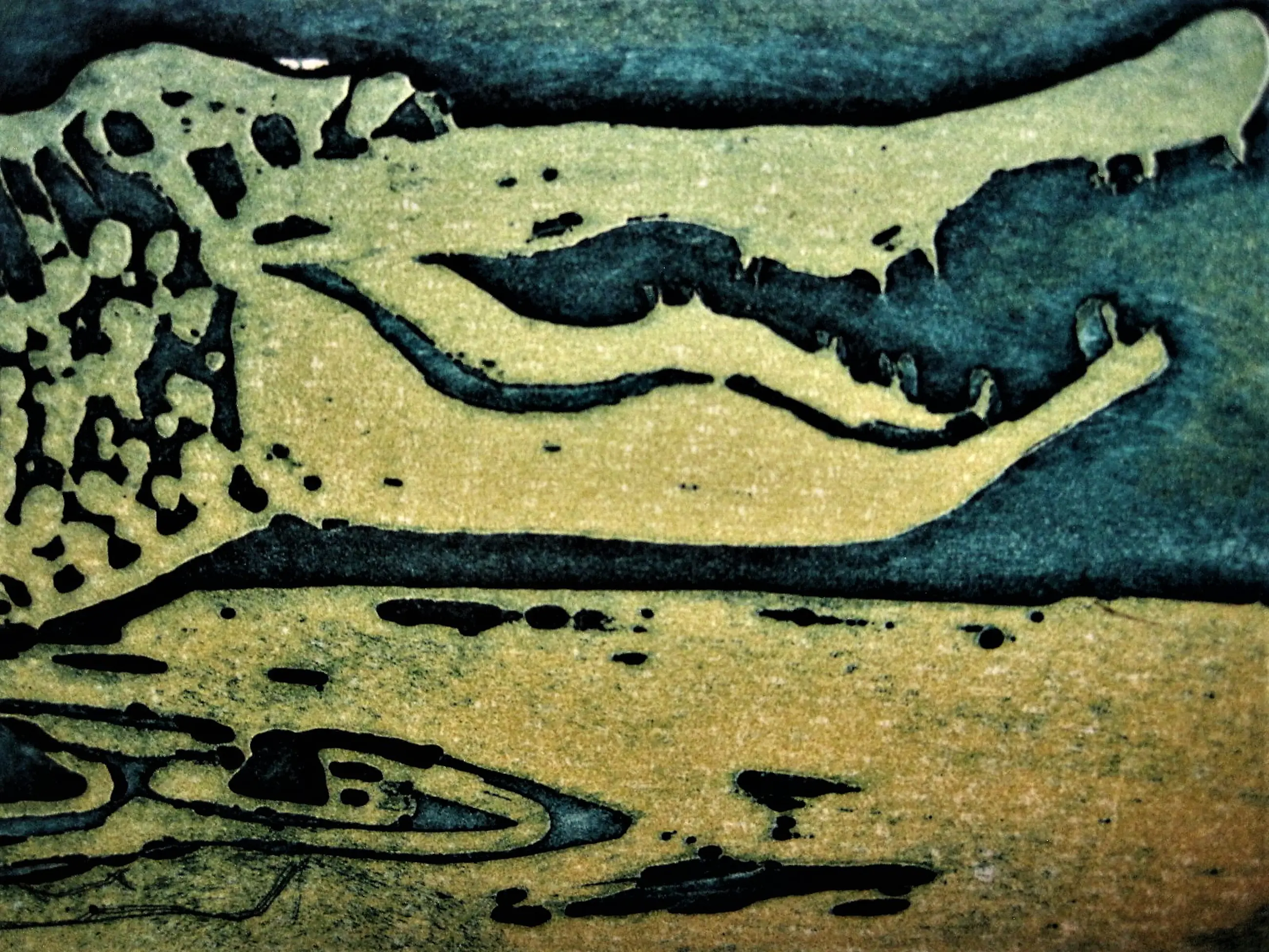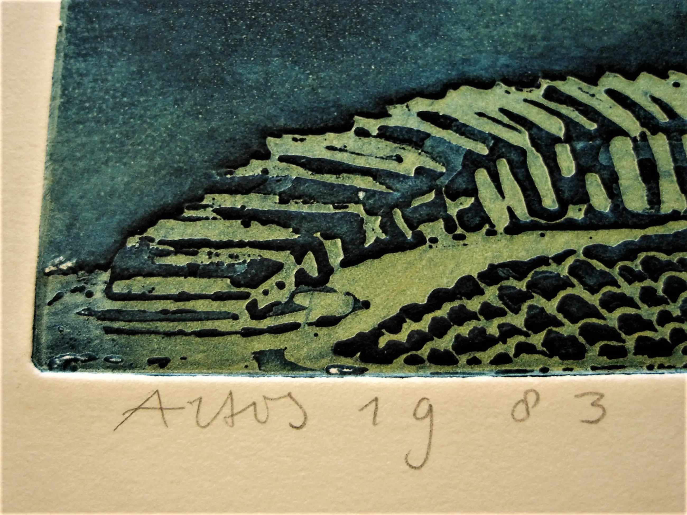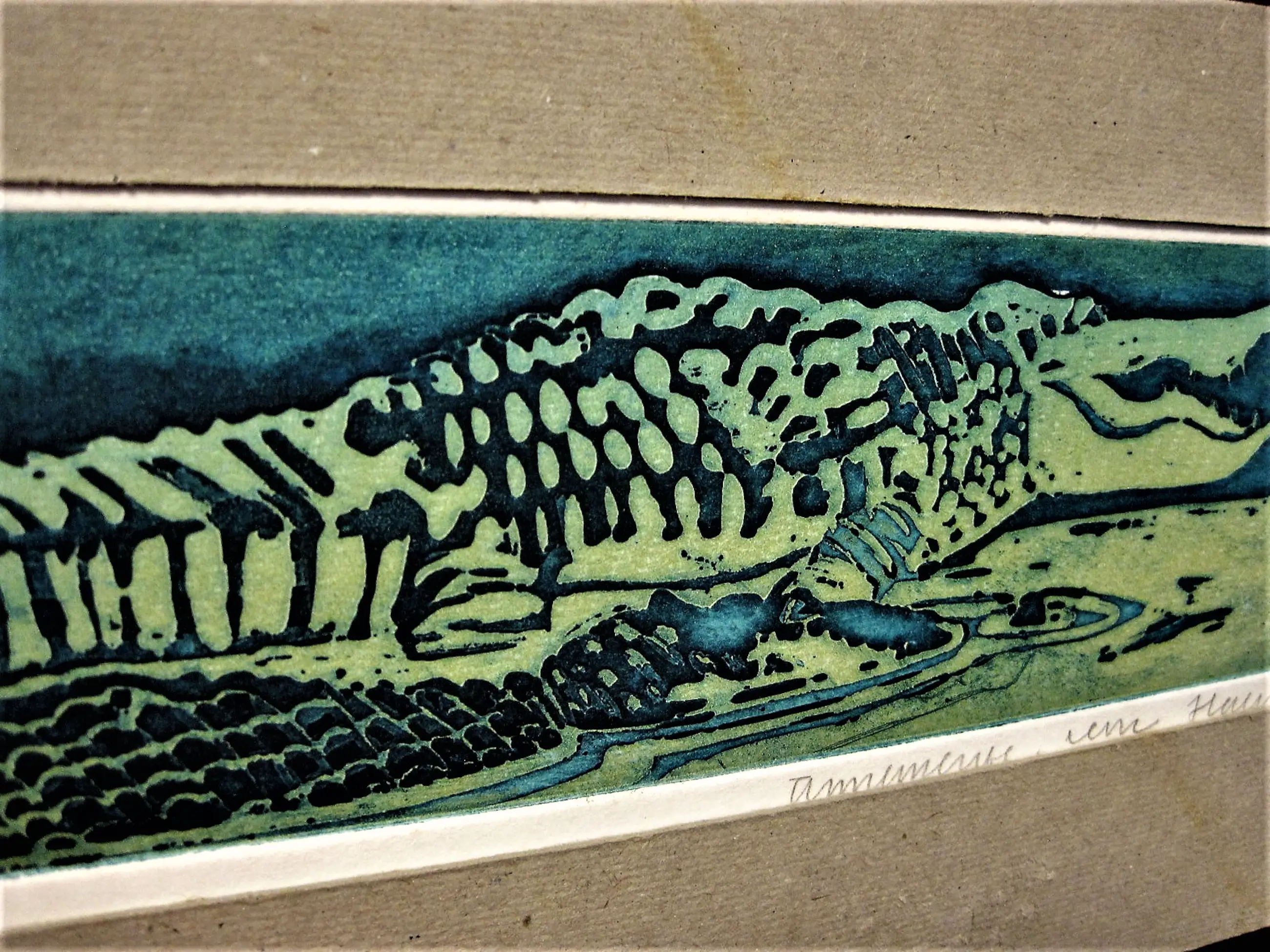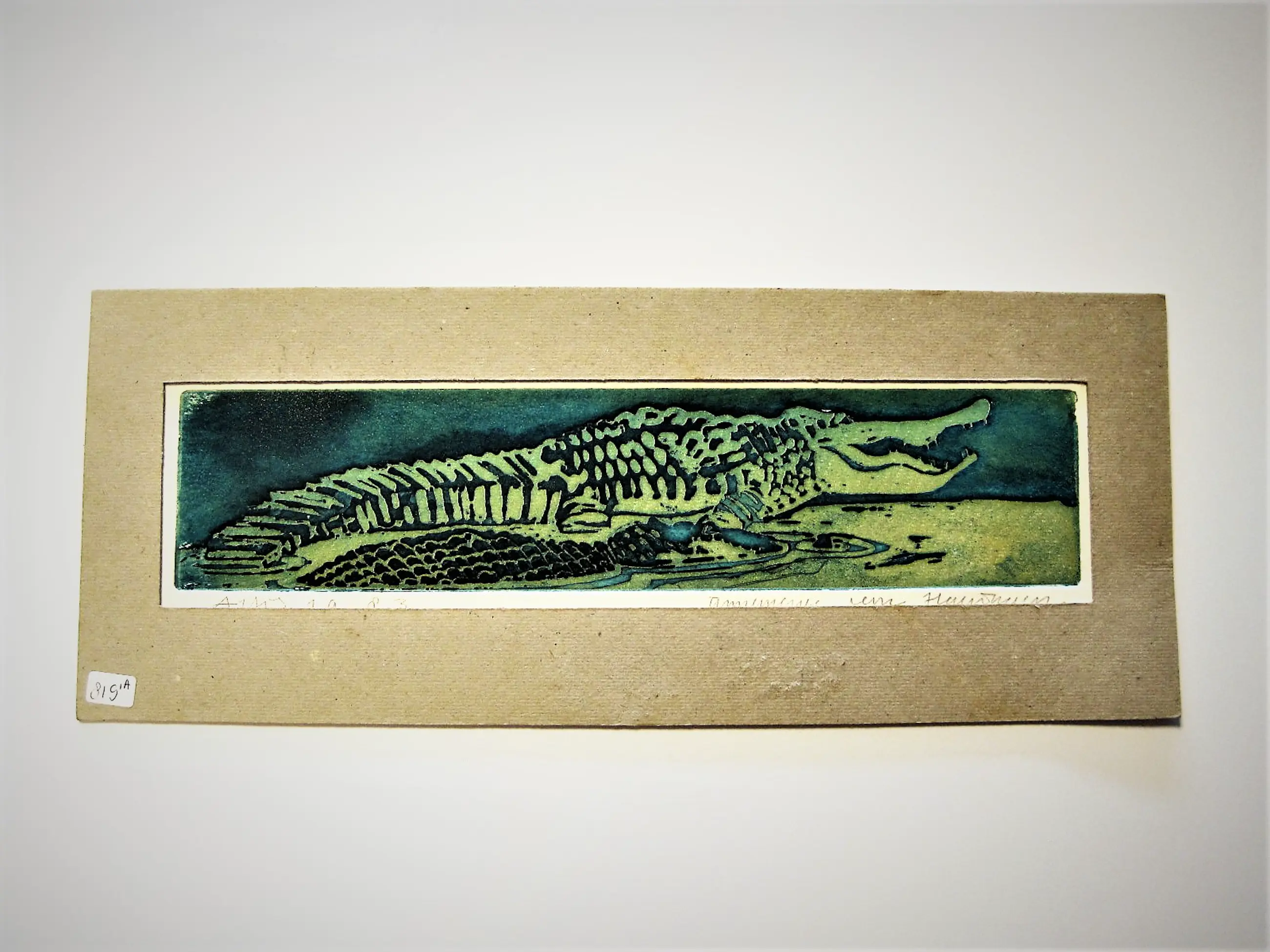 Unieke handgekleurde E.A. Ets "Krokodil - Artis 1983" gemaakt in de periode waarin Annemarie in de Amsterdamse dierentuin bekwaamde in het tekenen van verschillende dieren, die ze later dan weer voor haar bekende (kinder)boek illustraties gebruikte.
