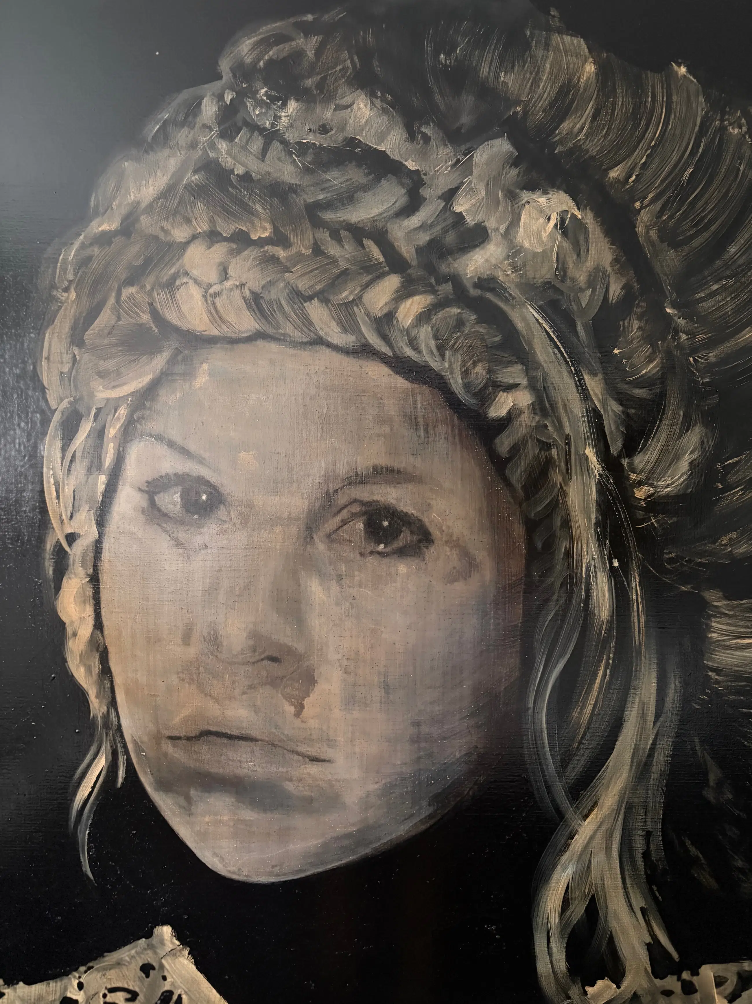 Annemiek Vera (www.annemiekvera.com) geeft op haar website aan wat de achtergrond is van haar schilderijen. Ze zegt: "Ik ben altijd geraakt en geboeid geweest door hoe gebeurtenissen, het verleden, gevoelens of emoties van invloed zijn op iemands leven. Hoe deze zich zó verankeren in ons dat zij ons maken tot wie we zijn. Dat er dingen zijn waar we ons liever niet toe willen verhouden, wat we willen laten zwijgen en liever buiten het zicht houden, kwaliteiten die we niet durven te tonen.... Silence we keep. In mijn schilderijen wil ik zichtbaar maken dat wij allen kwetsbaar zijn." Dit schilderij 'Stuck like a statue' past hier zeker in.