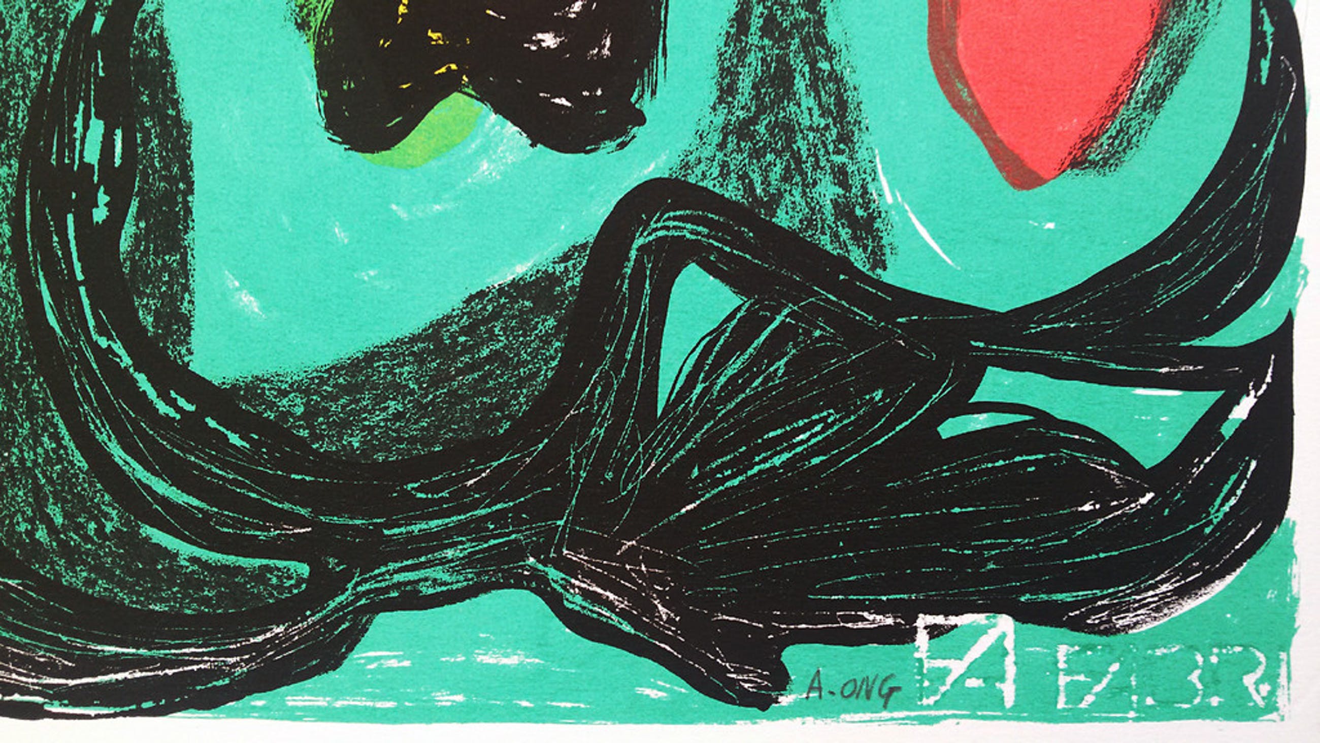 Mooie zeefdruk van Annette Ong uit 1997. Met potlood gesigneerd, gedateerd en genummerd (11/30). Het werk is aangebracht op dik geschept papier, en vervolgens gemonteerd op glad wit karton/dik papier. Afkomstig uit de kunstcollectie van ABN AMRO, in uitstekende conditie.