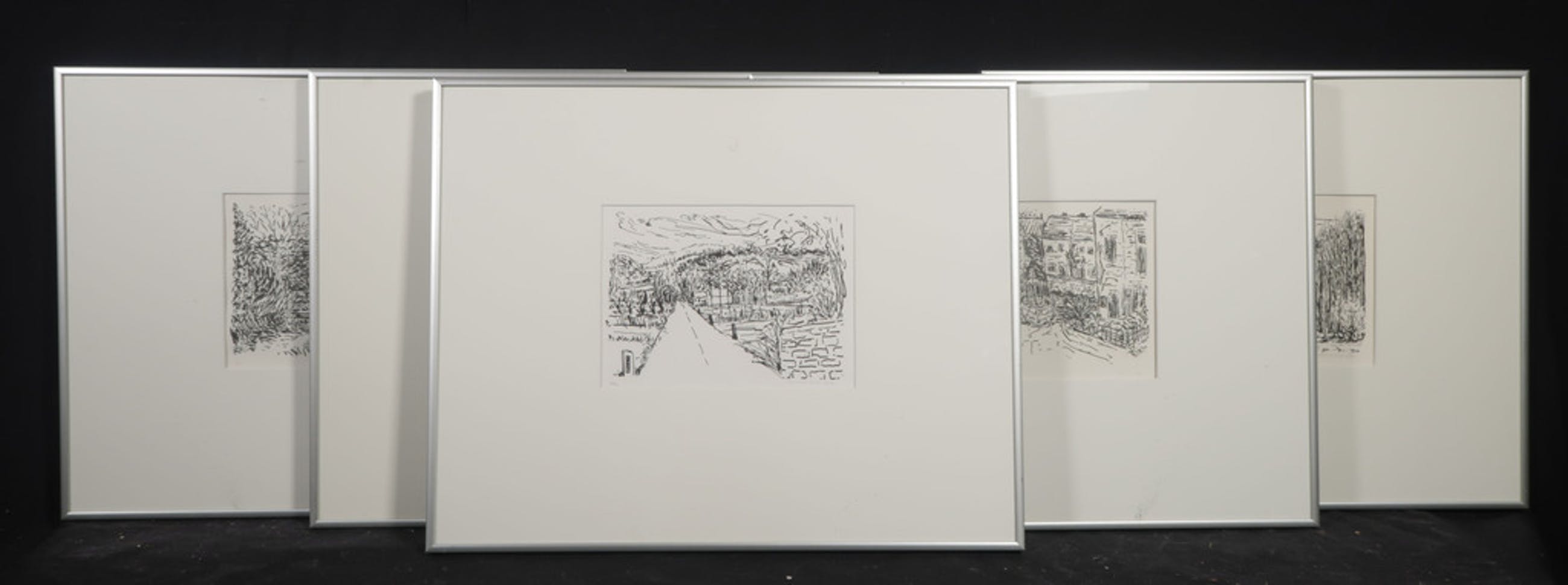 Lot met 5 ingelijste zeefdrukken van Annette Ong