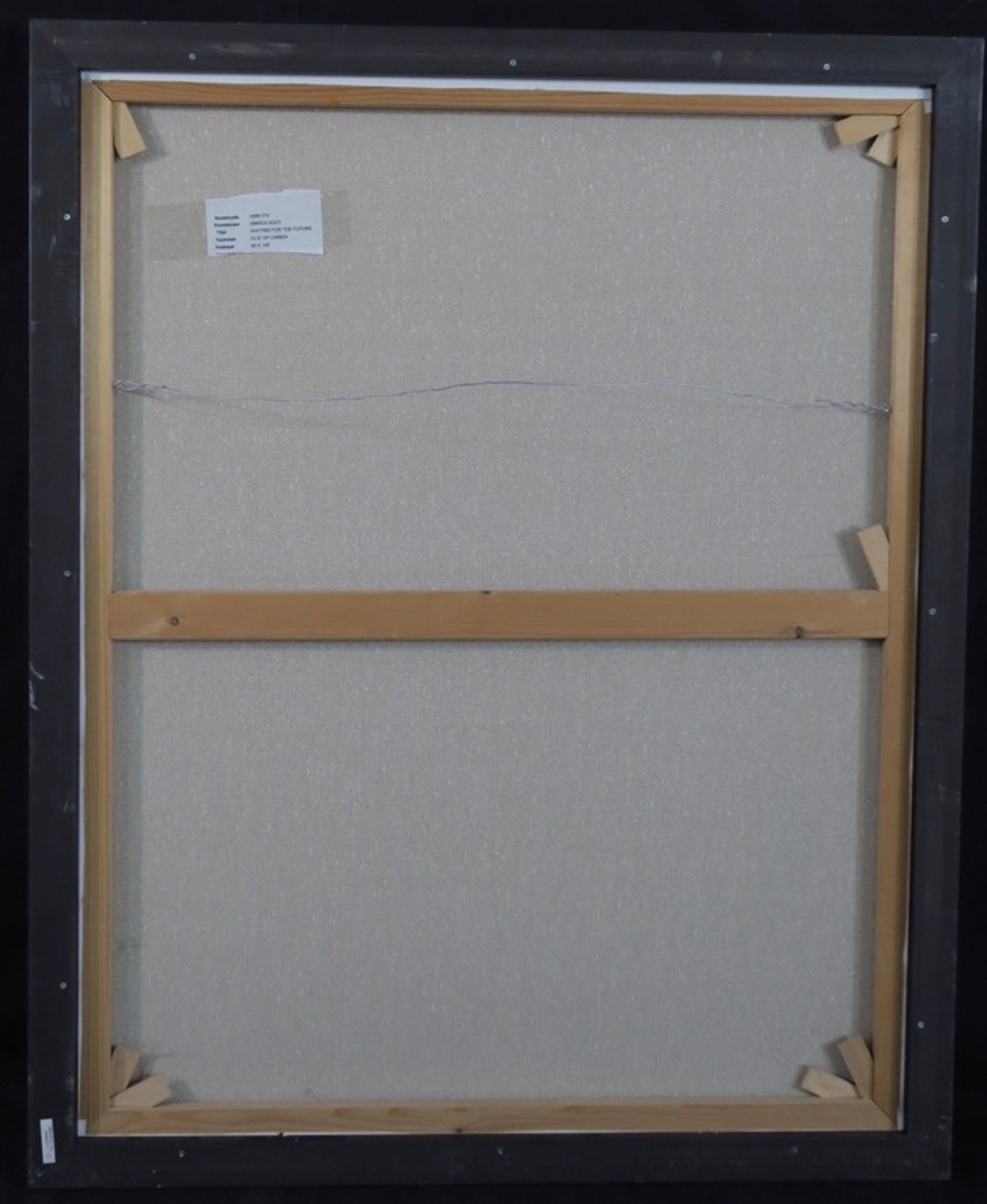 Conditie kunstwerk: In goede staat, maar met een licht deukje in het doek linksboven, geen verfverlies.