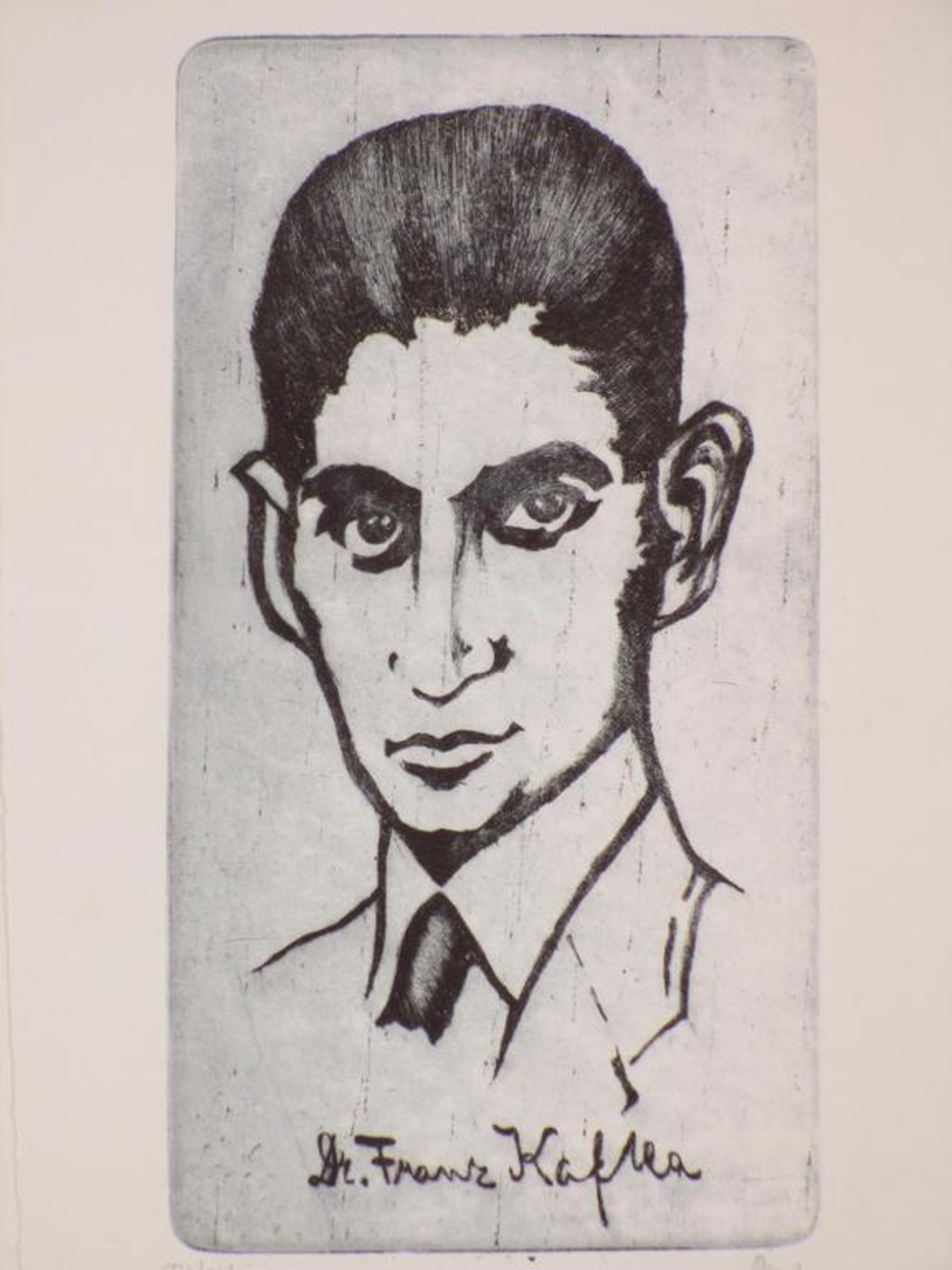 Treffend portret van Franz Kafka door een onbekend kunstenaar.