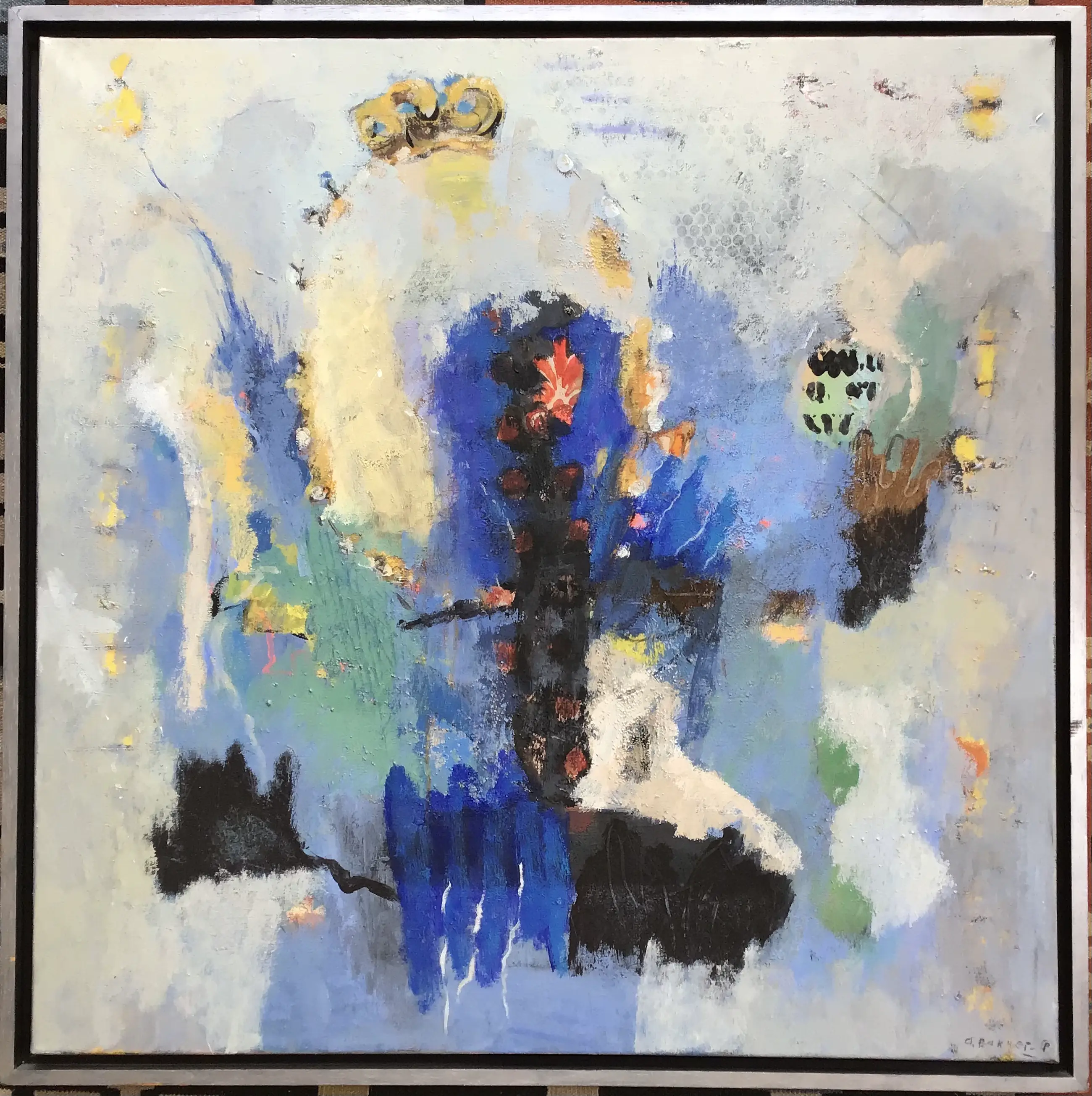 Gemengde techniek In mooie bak lijst Afmetingen doek 90x90cm Hand gesigneerd Ivm grootte en kwetsbaarheid graag ophalen. Verzenden /afleveren evt in overleg