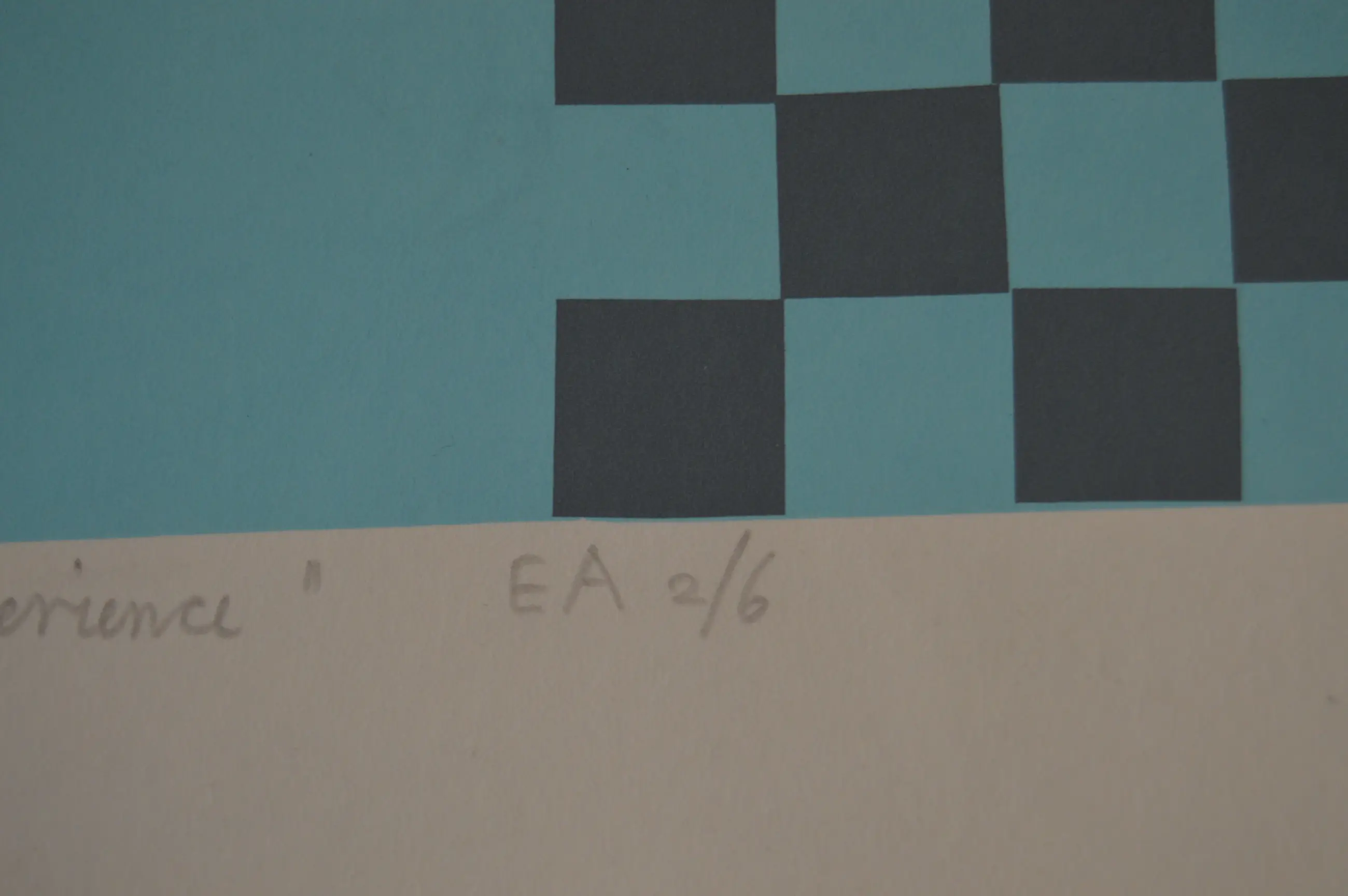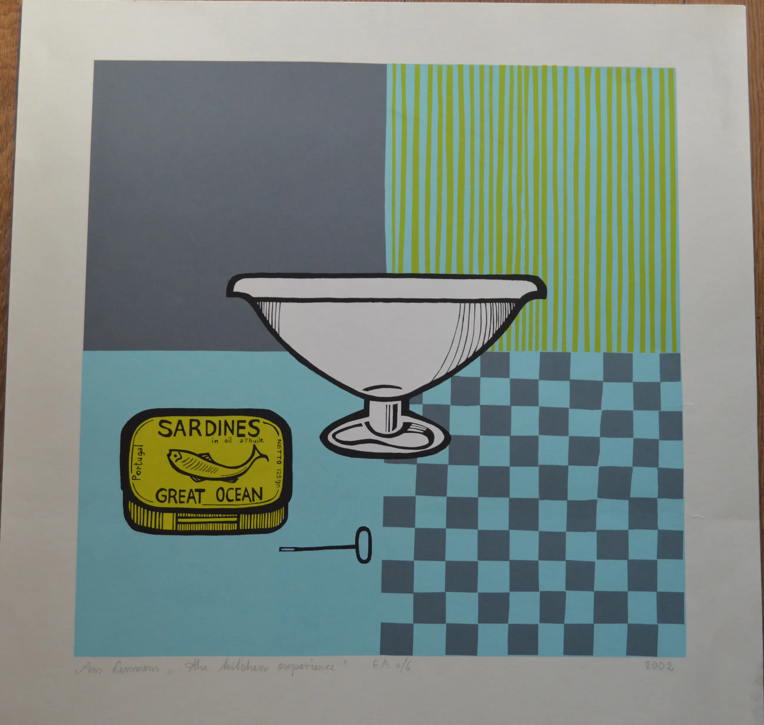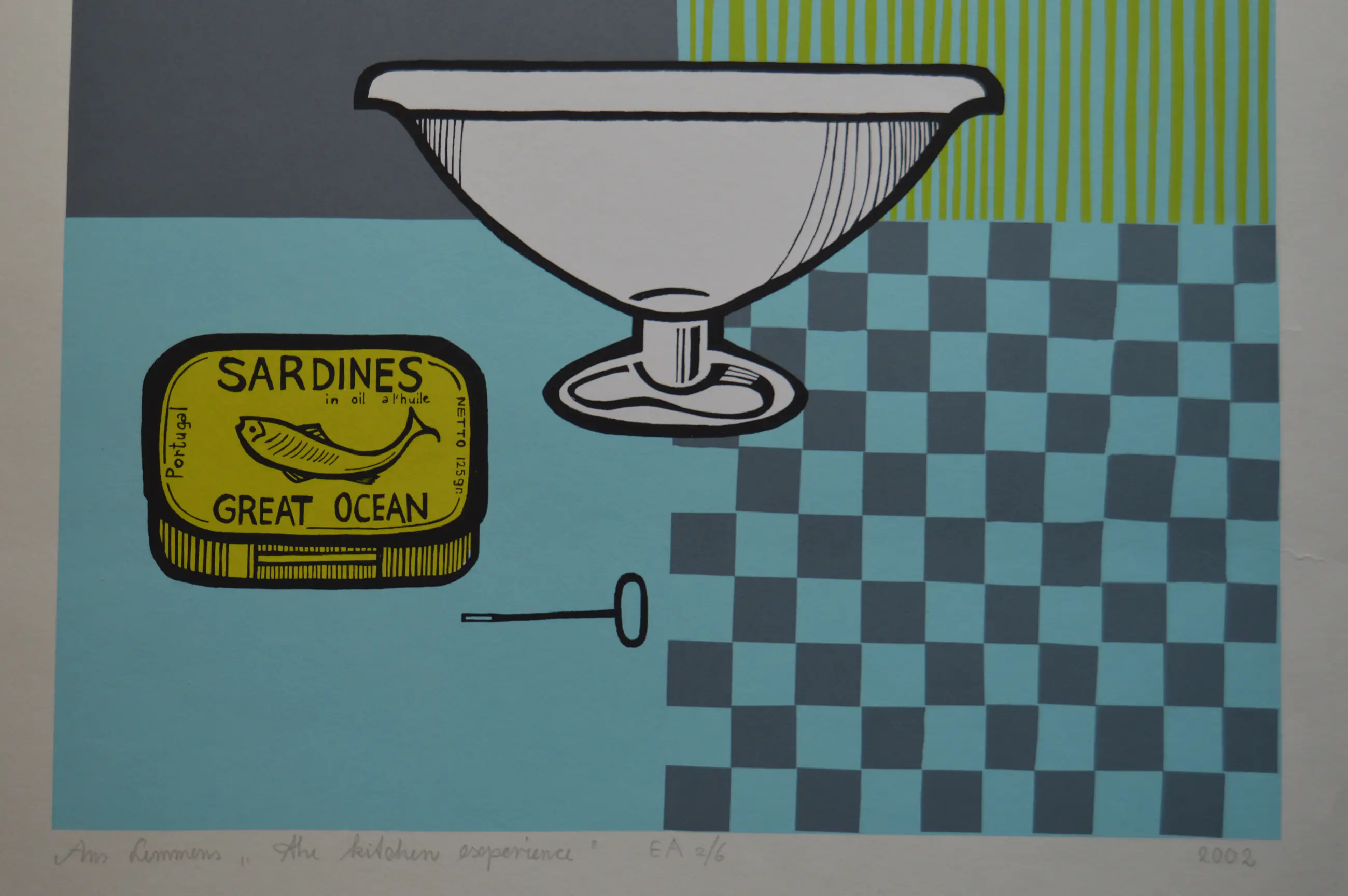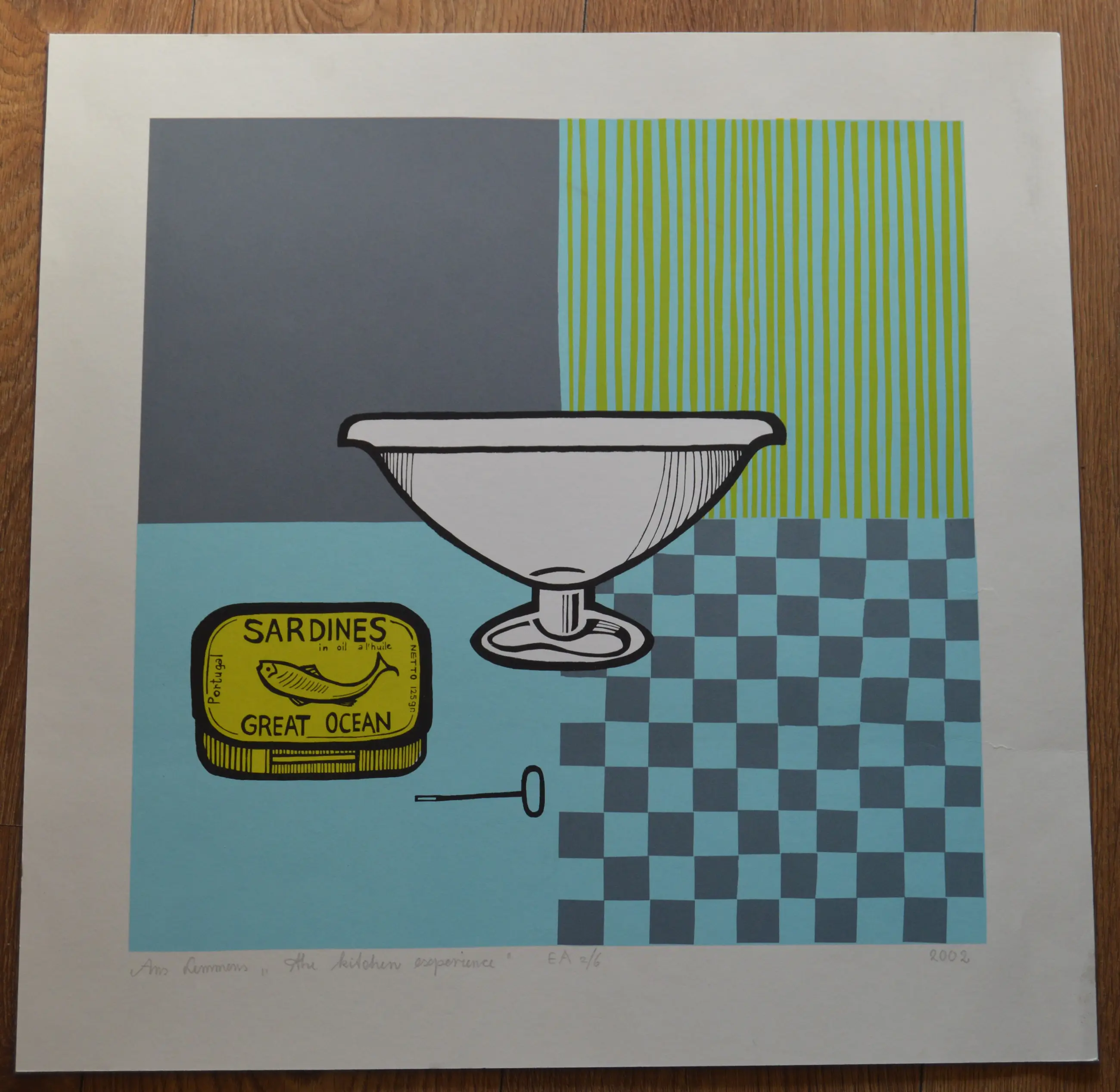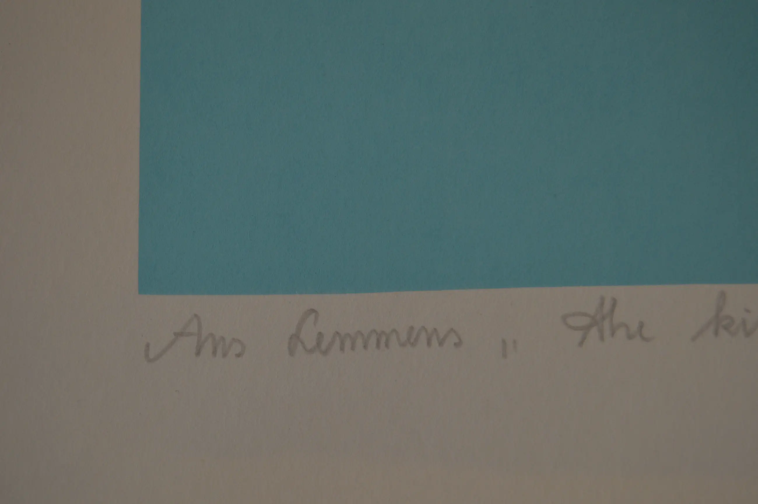 Zeefdruk door Ans Lemmens. Gemaakt in een oplage van 6 exemplaren. Gesigneerd, genummerd en gedateerd in potlood.Dit is nummer 2/6 EA
