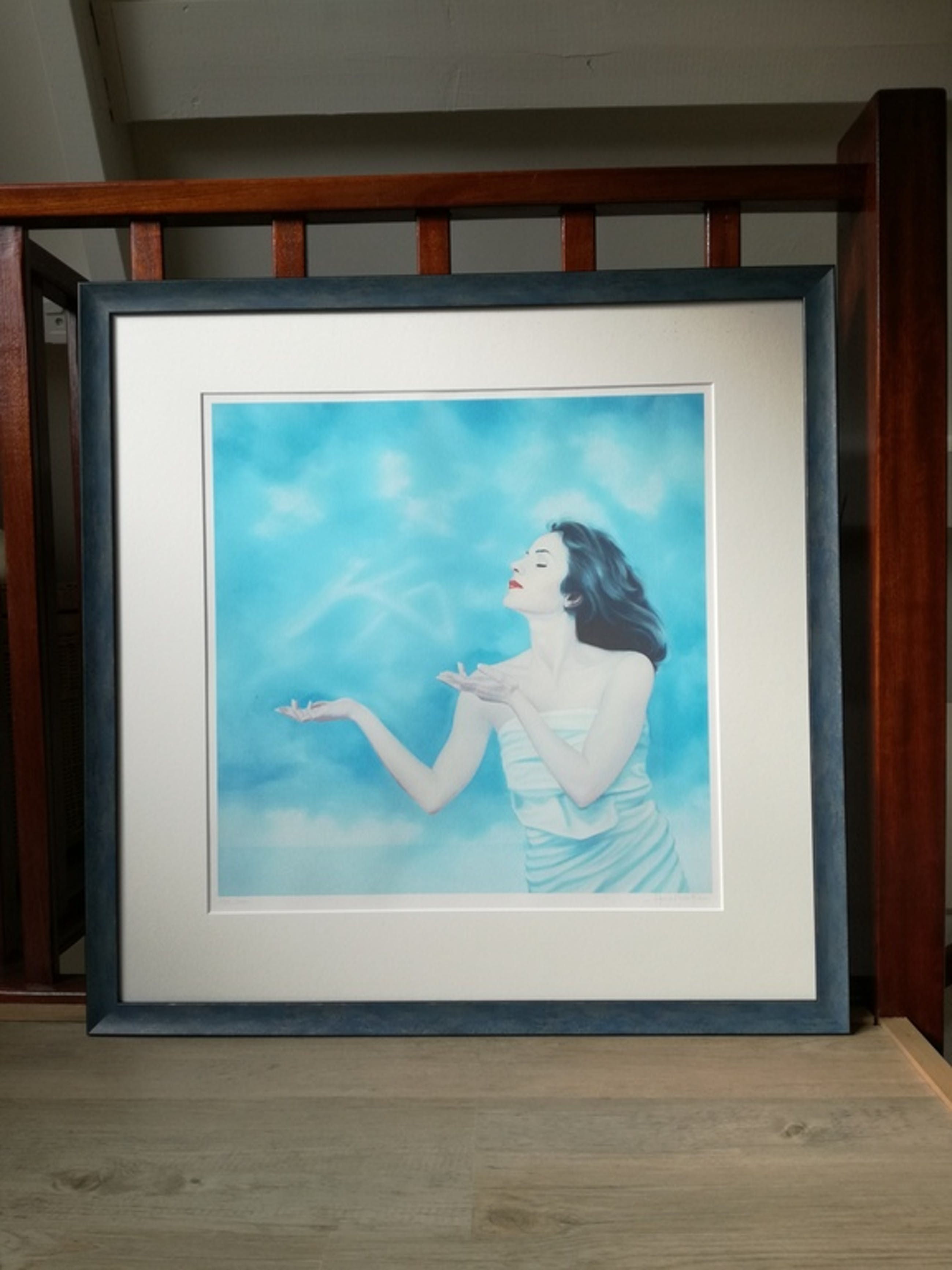 Ans Markus ingelijste zeefdruk in erg goede conditie. De lijst is 75 cm bij 75 cm groot en de afbeelding 50 cm bij 50 cm. Rechtsonder staat een handtekening en linksonder het nummer.