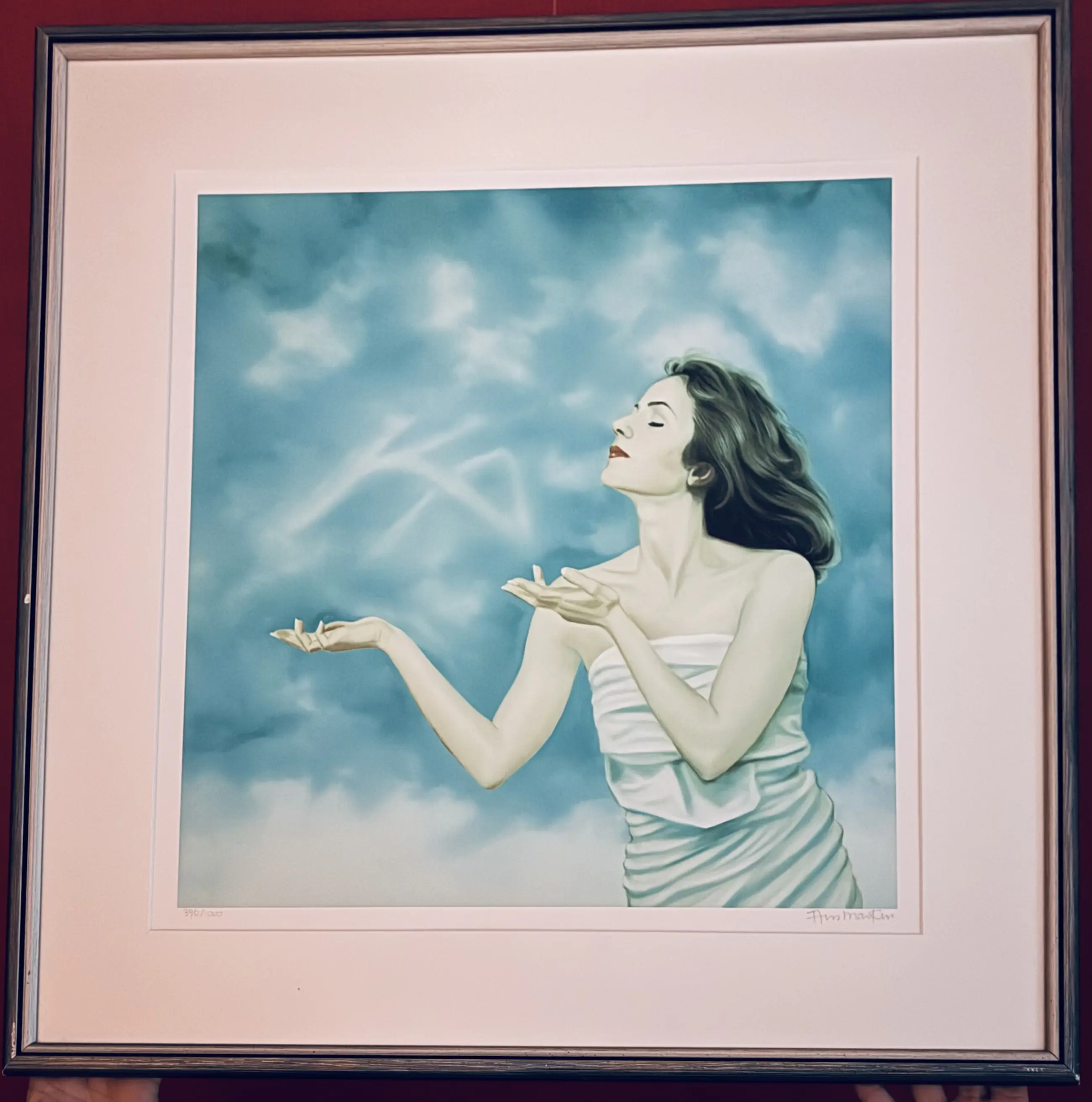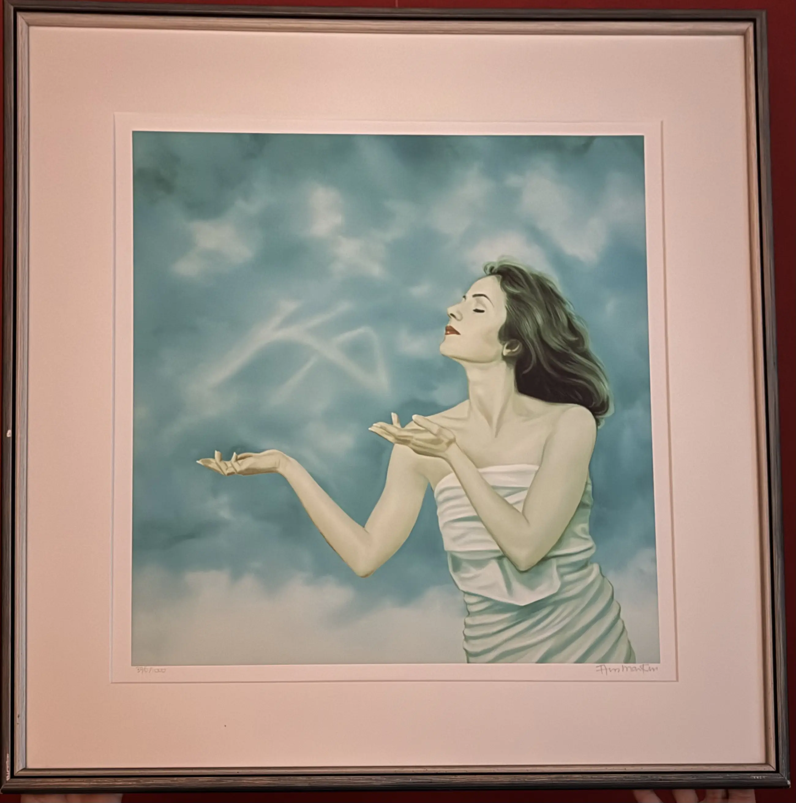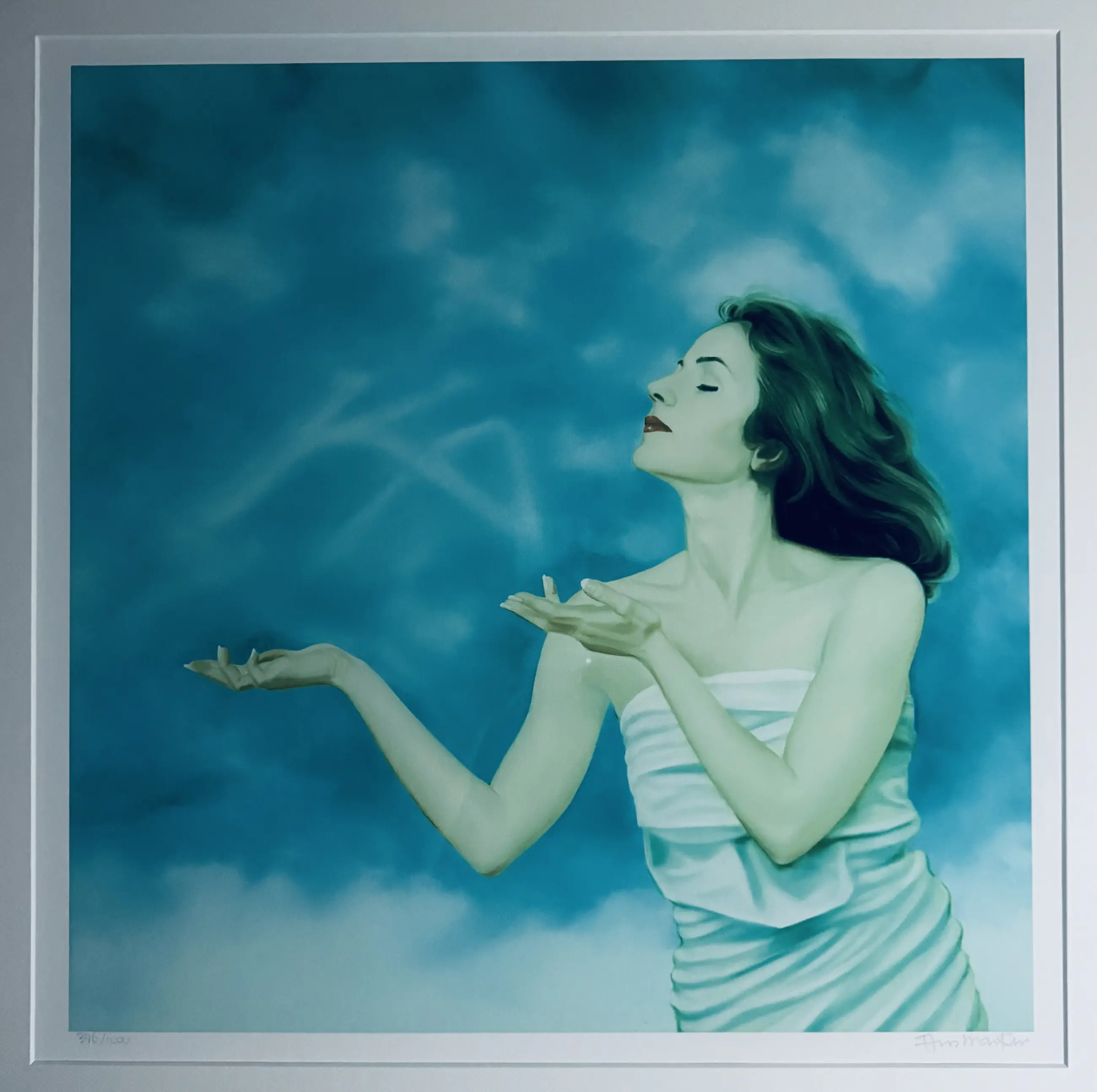 Prijs verlaagd! Dit werk moet weg. Ans Markus, geboren in 1947 in Halfweg, is onder andere bekend om haar schilderijen van vrouwen in windsels. Als autodidact kenmerkt haar werk zich door een realistische stijl. Dit kunstwerk is geïnspireerd door de Egyptische mythologische figuur Ka, het symbool van levenskracht. In het speciaal voor Ford Ka-rijders gemaakte schilderij heeft Ans Markus de levenskracht verbeeld als het Ka-logo, dat als een vervagende wolk in een dynamische lucht wordt geblazen.