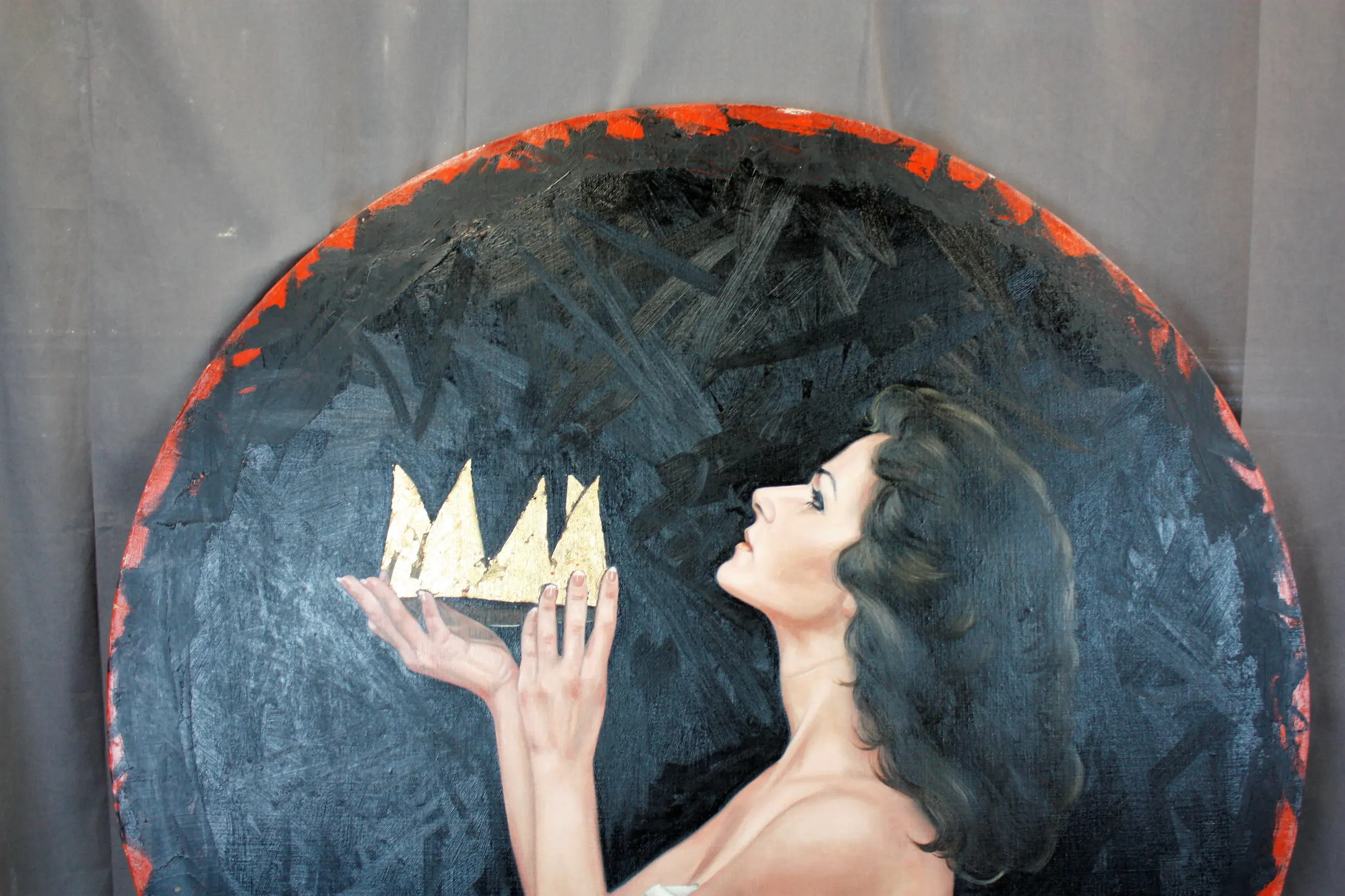 Olieverf op Paneel van Ans Markus*, getiteld 'Medea / Hogepriesteres' (1998). Rond schilderij. Signatuur: onderin. Staat: Netjes! We hebben meer Kunst, (antieke) Meubels, Klokken, Beelden, enz: bekijk meer advertenties. Afm. (Ø x H) ca. 105 x 4 cm. Aanschafwaarde: €15.000.