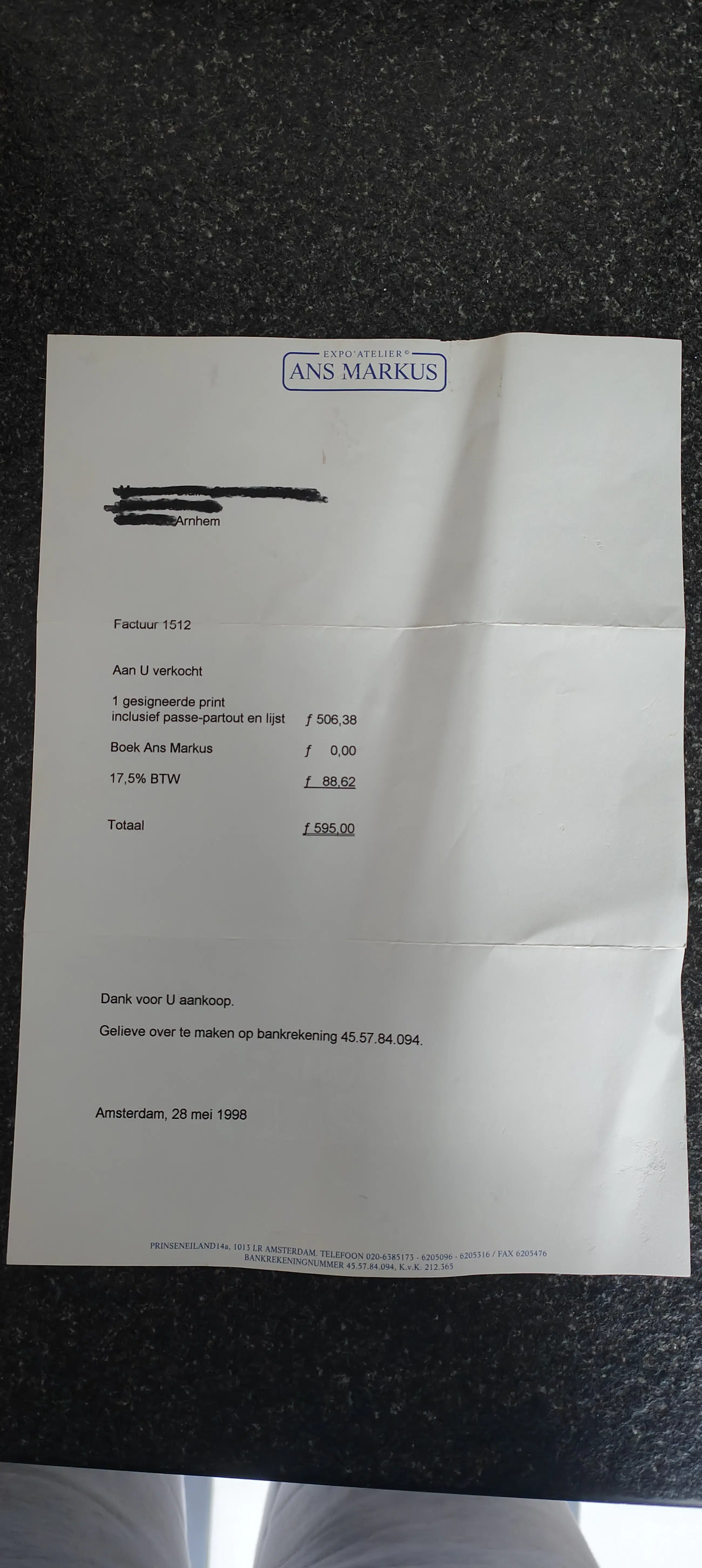 Afhalen Het werk is af te halen op locatie. Als koper dient u zelf verpakkingsmateriaal mee te nemen. De locatie is: Haarlem, Nederland