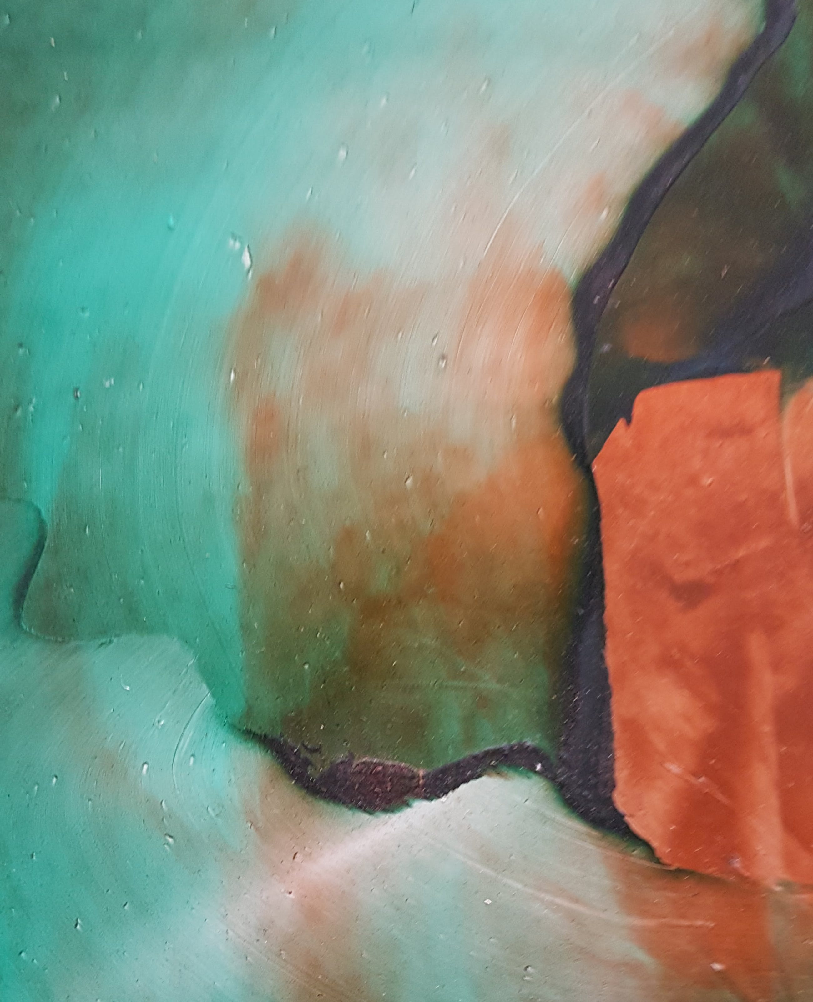 Gaandeweg maakte zij zich een nieuwe techniek eigen: op een glad geprepareerde ondergrond wreef zij een breed spoor met transparante verf. Door de donkere contouren en de brede oplichtende vegen ontstonden ruime, haast surreële landschappen. Deze techniek leende zich ook uitstekend voor plantmotieven.