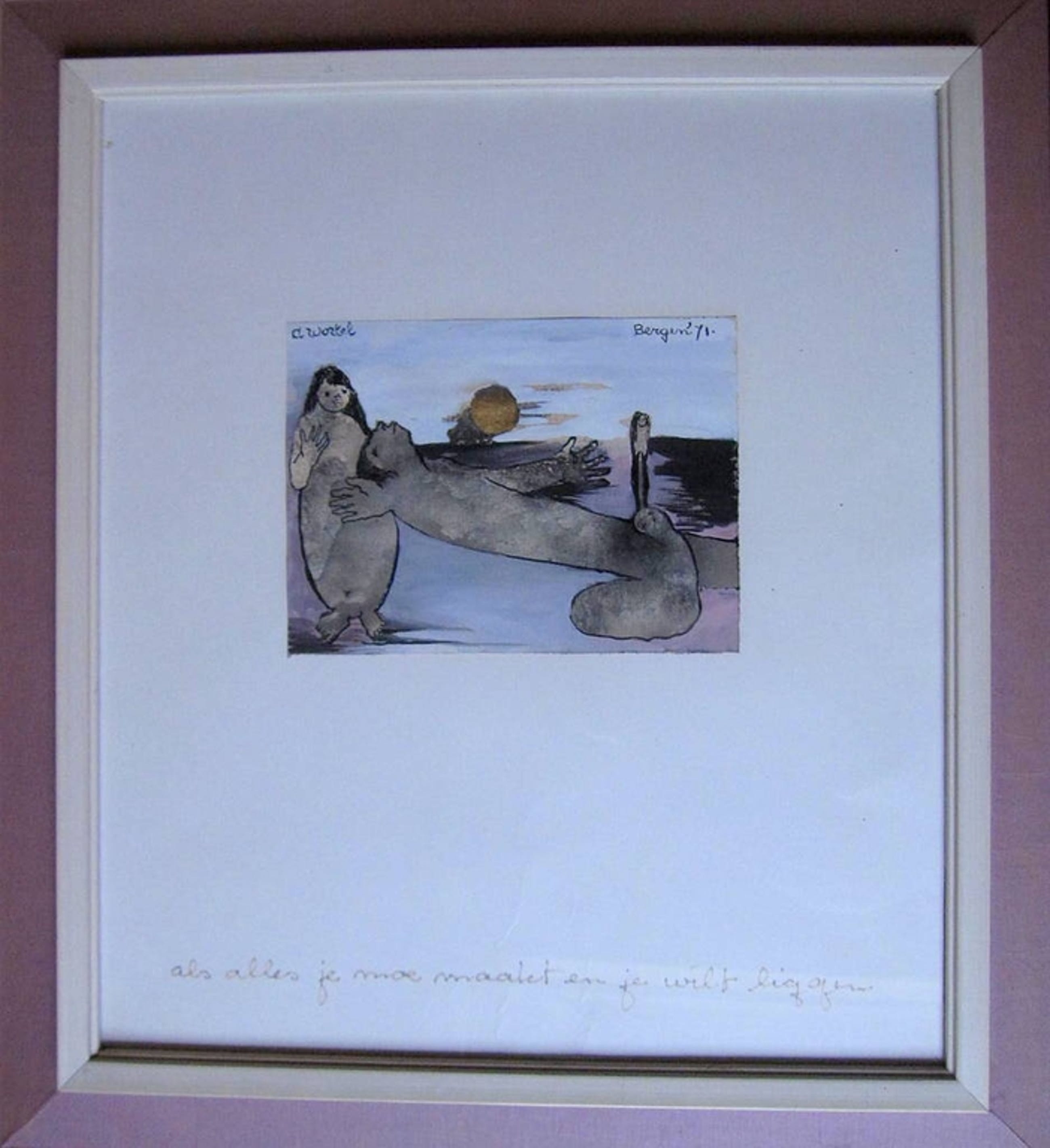 Mooie oude Gouache van ANS WORTEL (1929-1996).