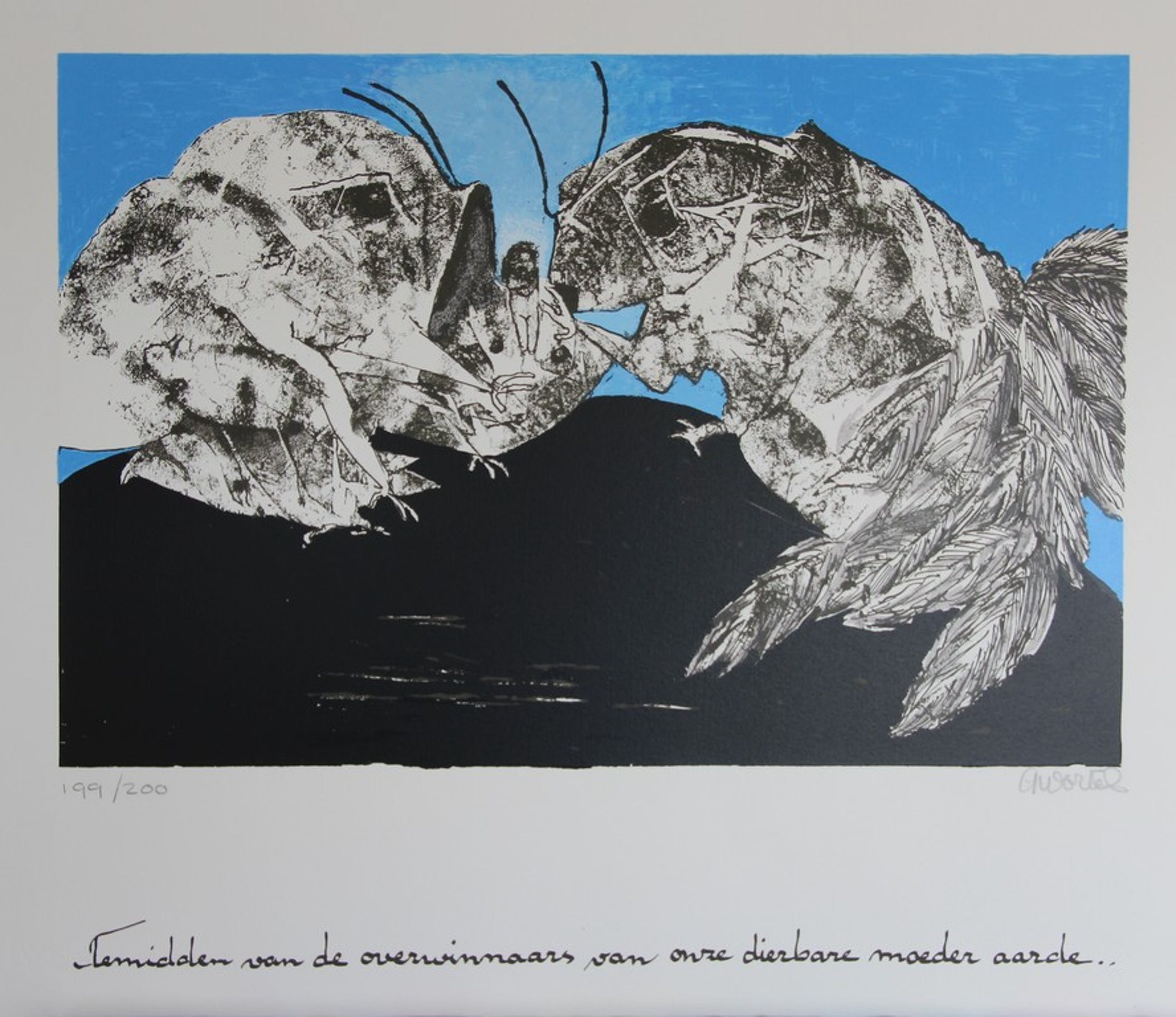 Zeefdruk van Ans Wortel in een oplage van 200 nummer 199 - formaat papier 66/50 cm. - formaat druk 45/30 cm.