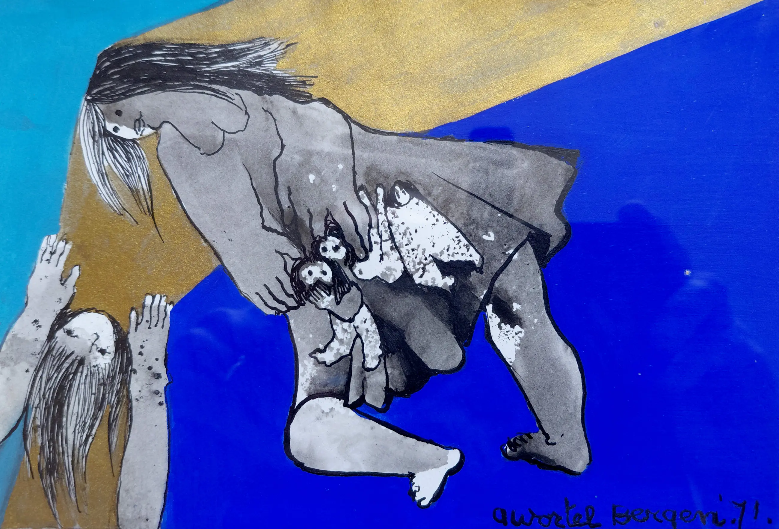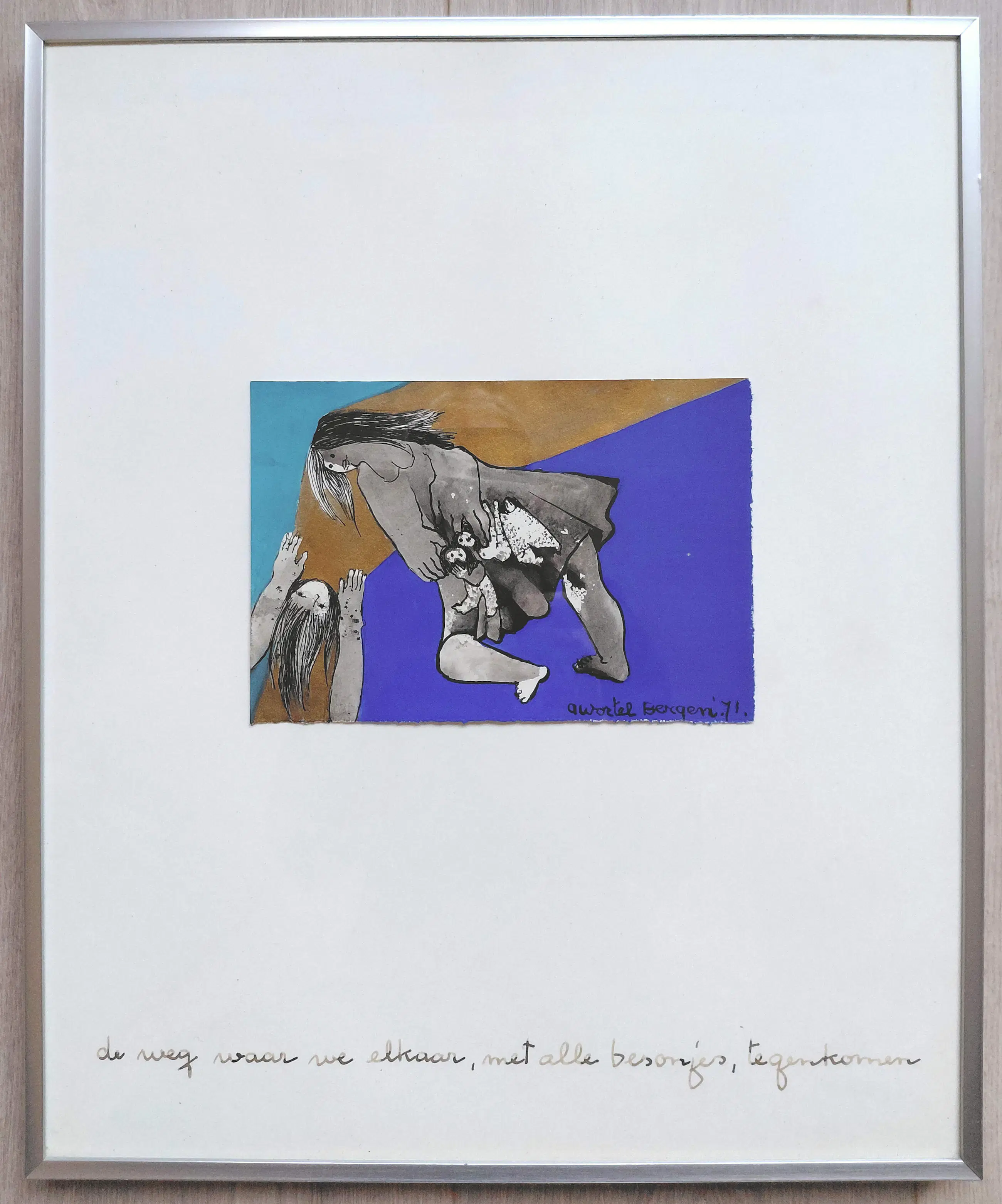 Gouache op papier, gesigneerd en gedateerd (‘71) rechtsonder en op het onderblad voluit getiteld in inkt. In strakke aluminium lijst en achter glas. Alles in zeer goede conditie.