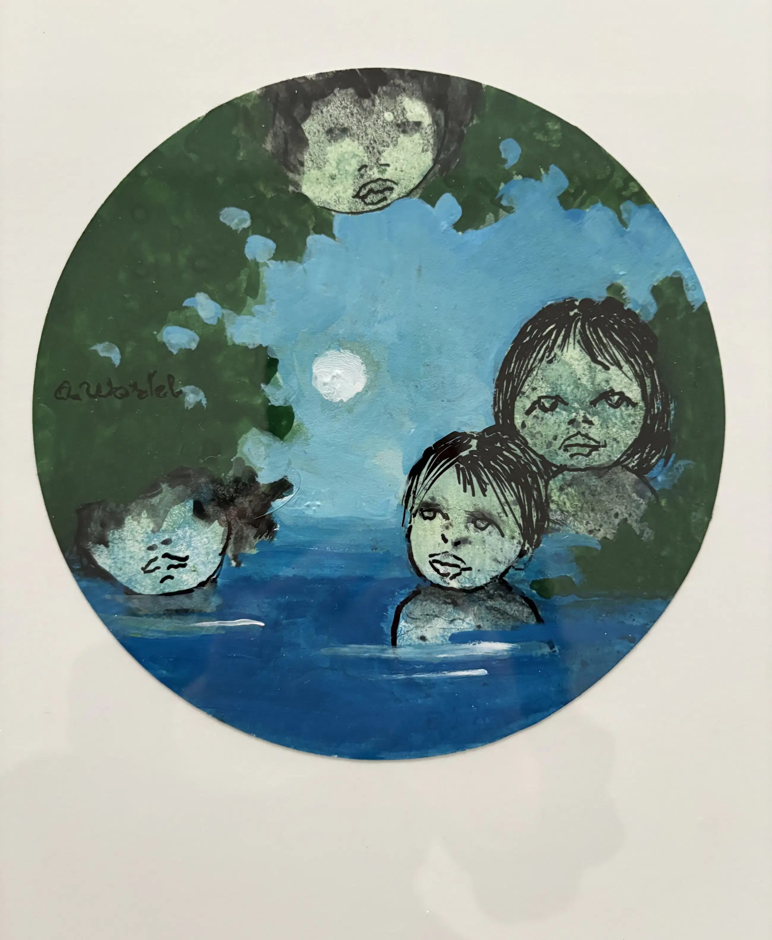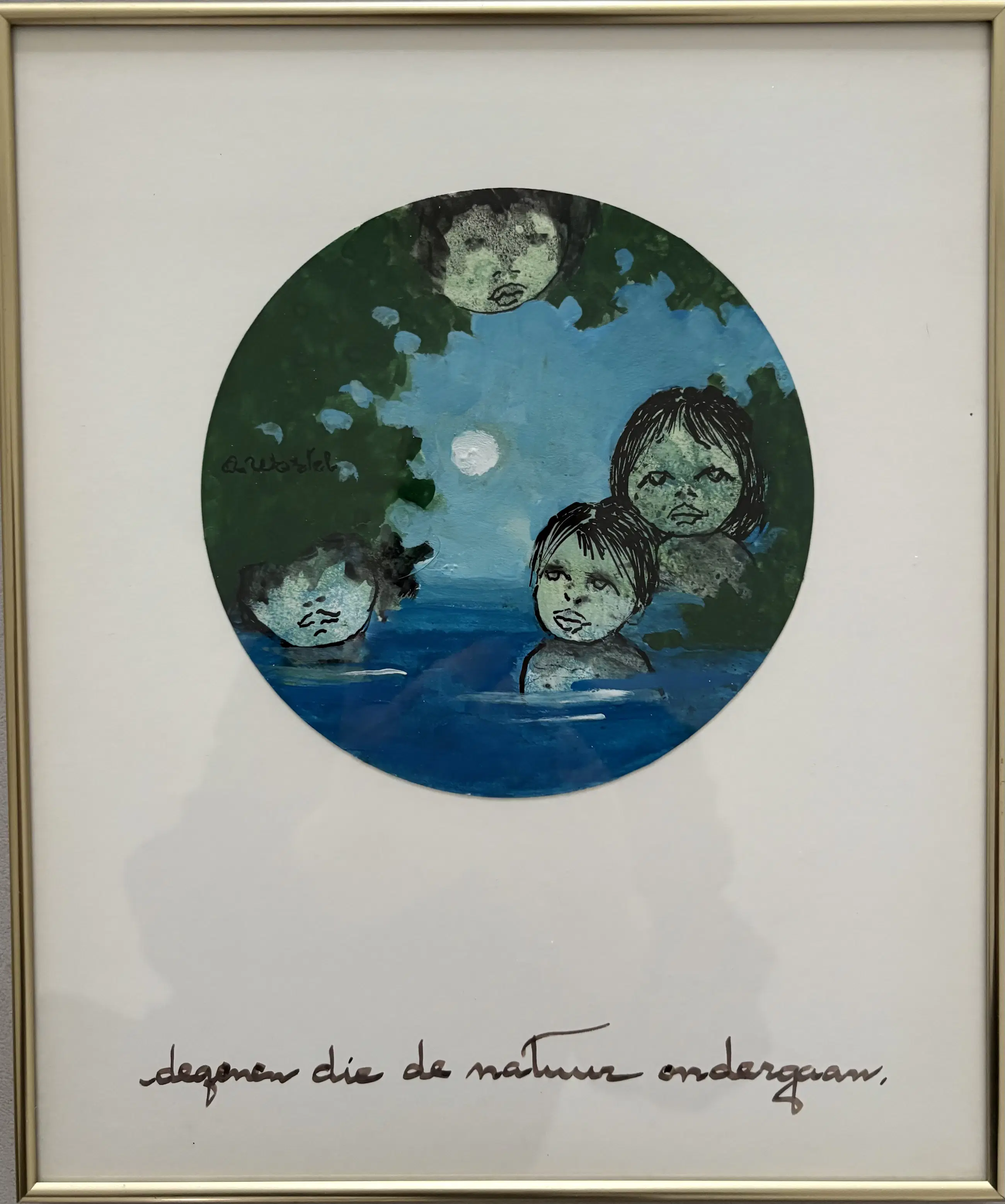 Klokgave gouache van Ans Wortel uit haar Bergense periode in Kranenburg waar ik vaak over de vloer kwam en haar zag werken. Niet beschadigd, achter glas, met passe-partout en in kunststof lijst. Afmeting werk: 15,5 cm rond.