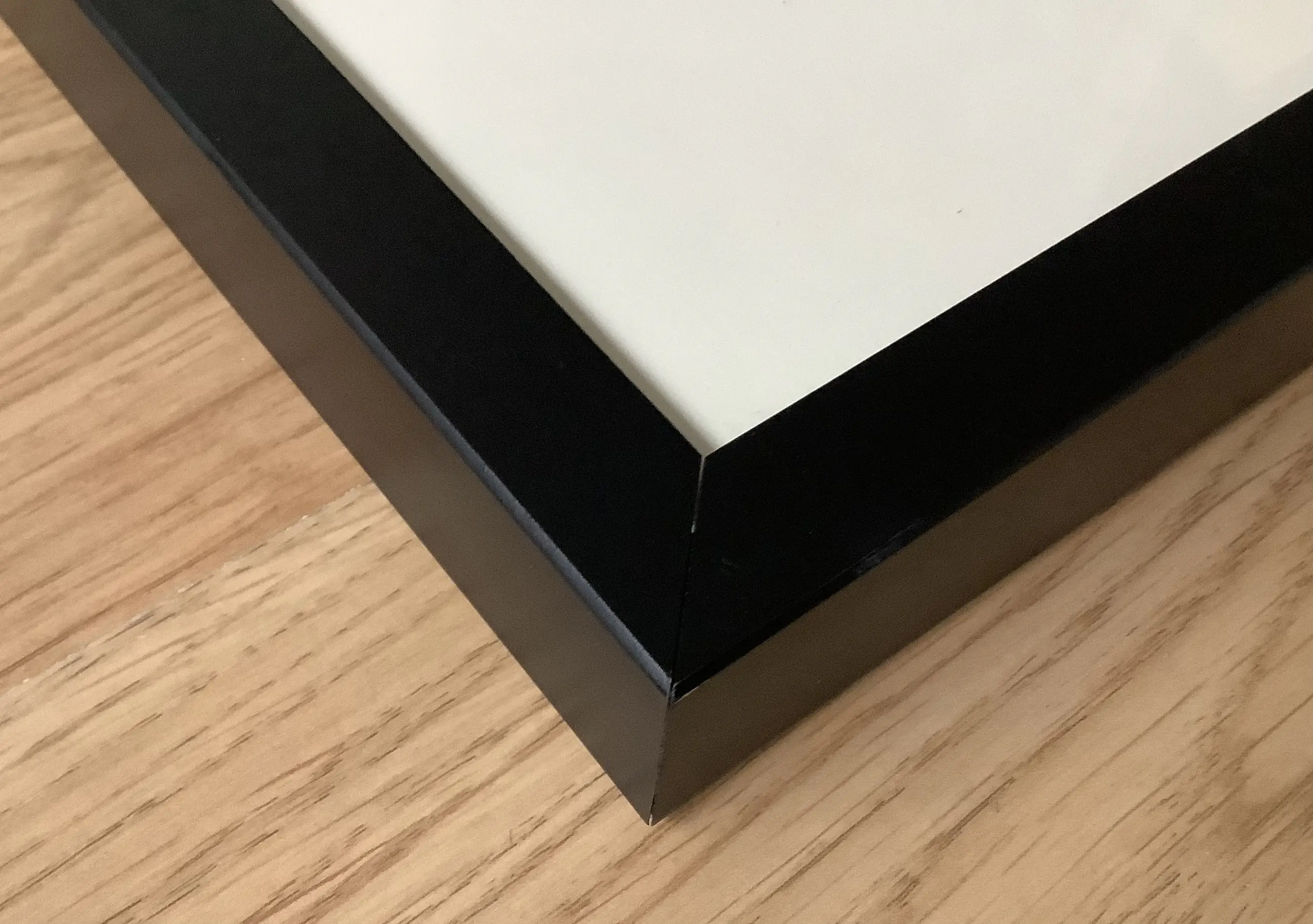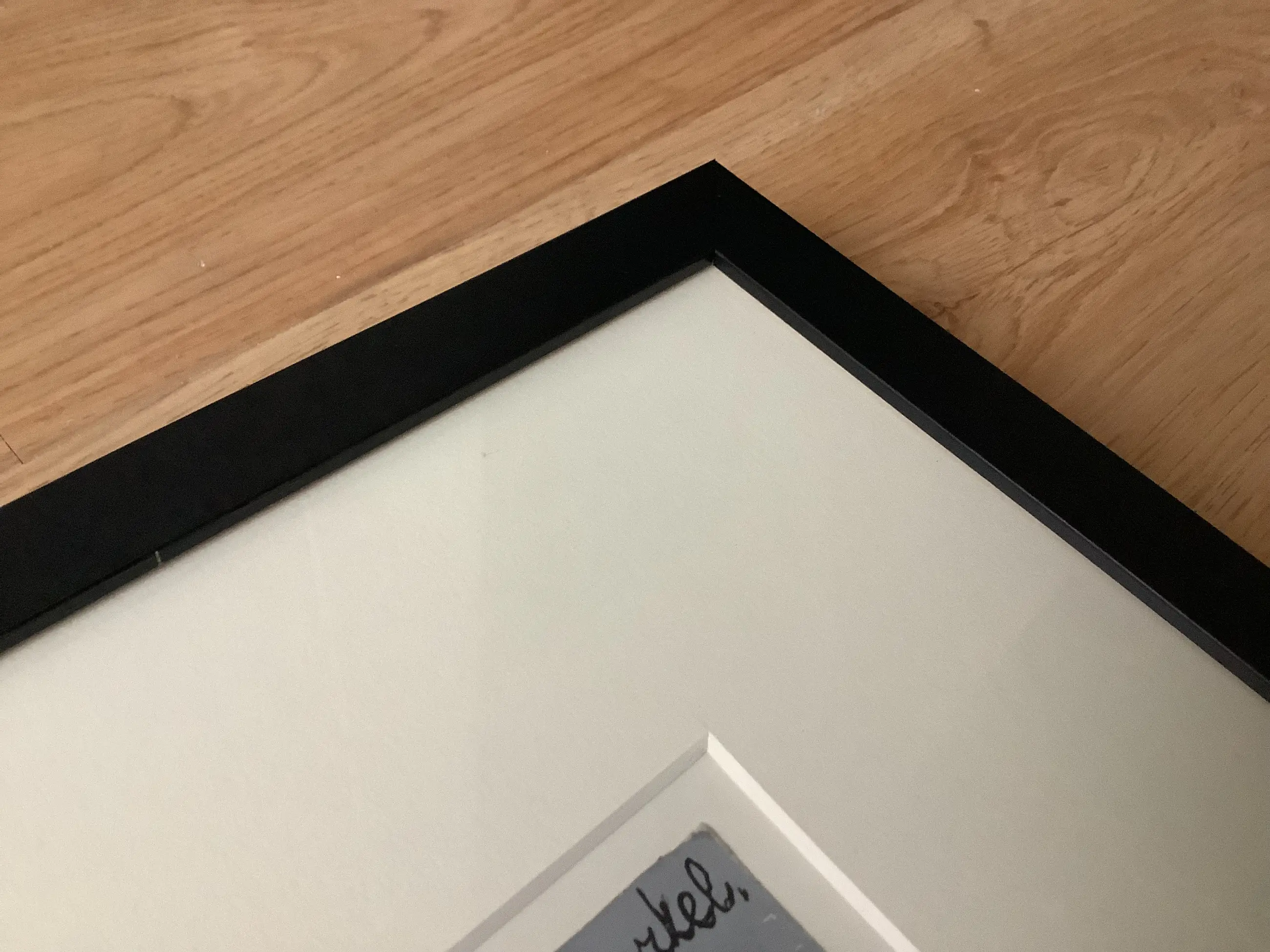 Ingelijst: Ja, in zwarte houten lijst, 2 cm breed en 3 cm hoog in een wit passe partout.