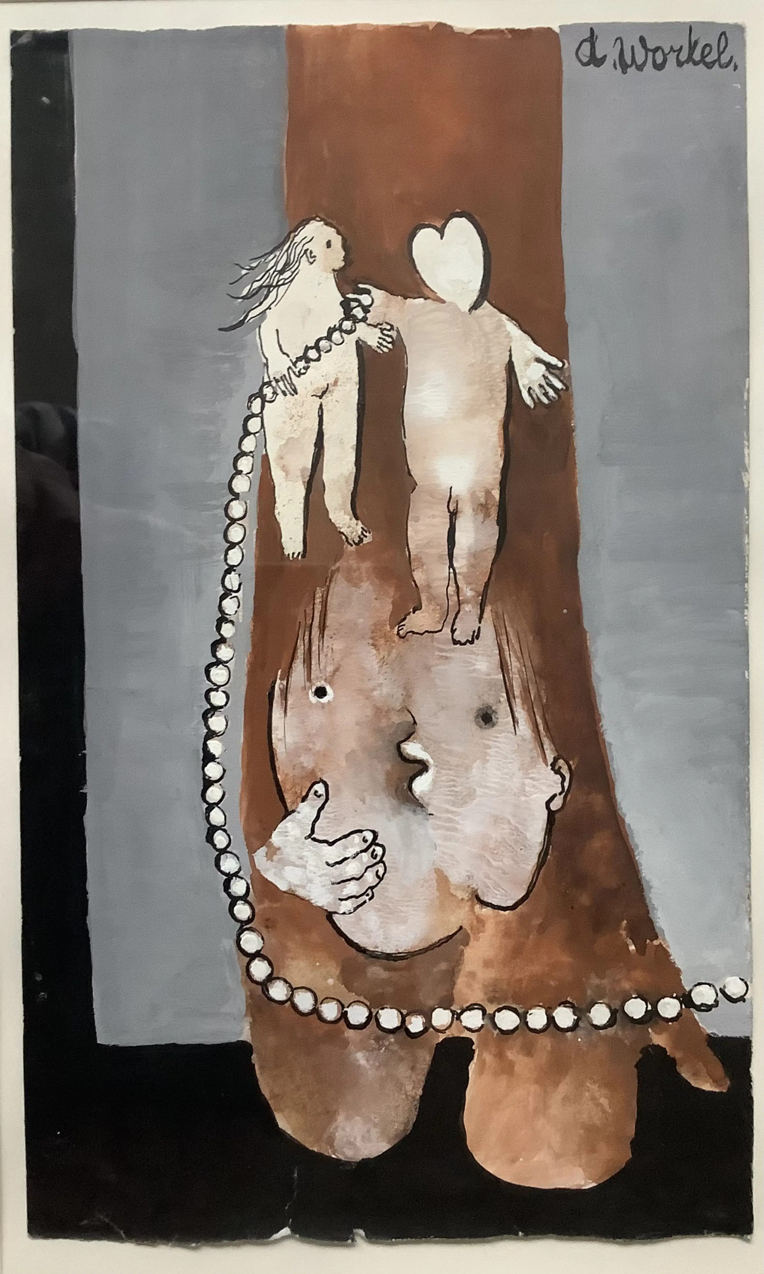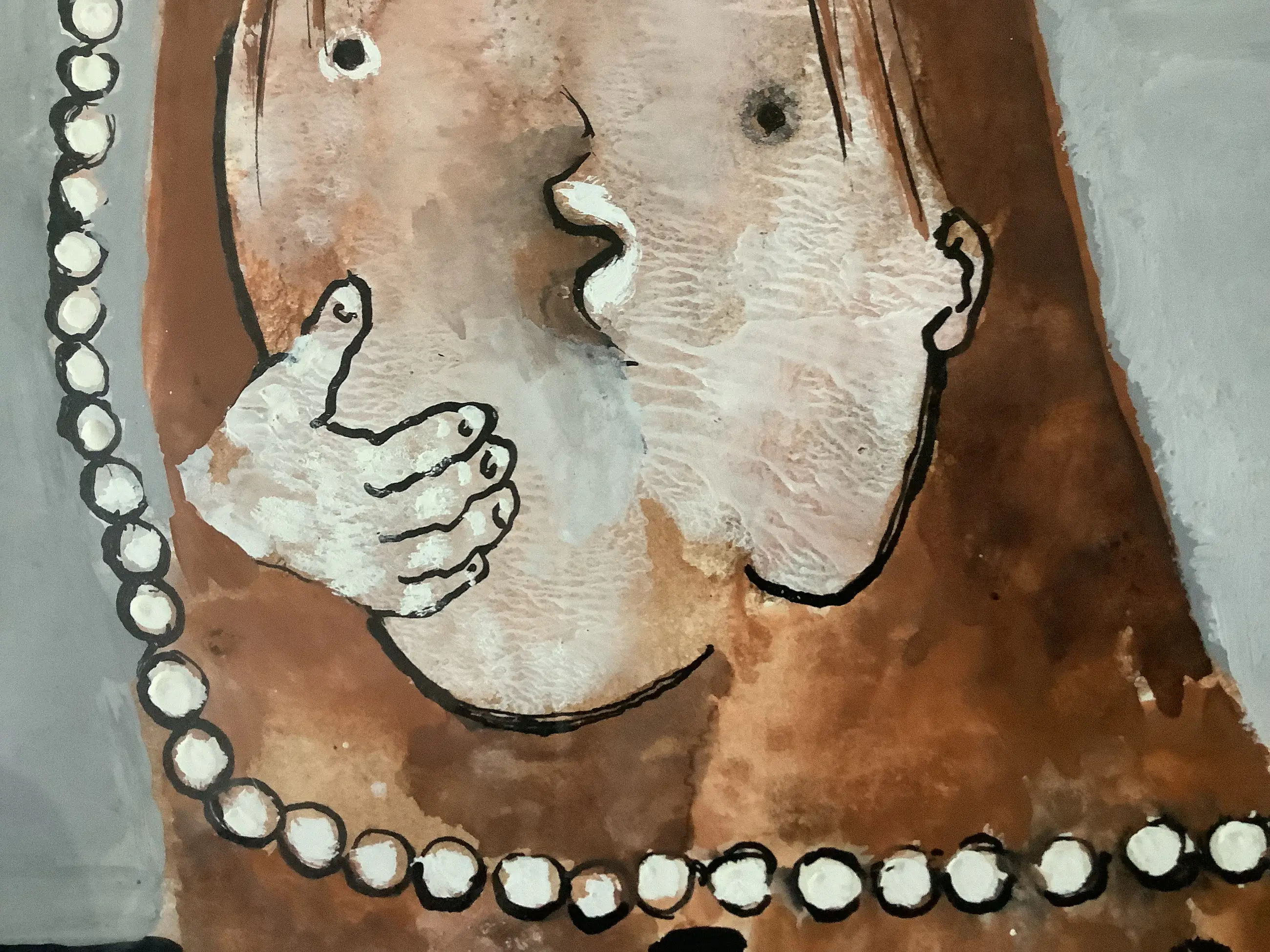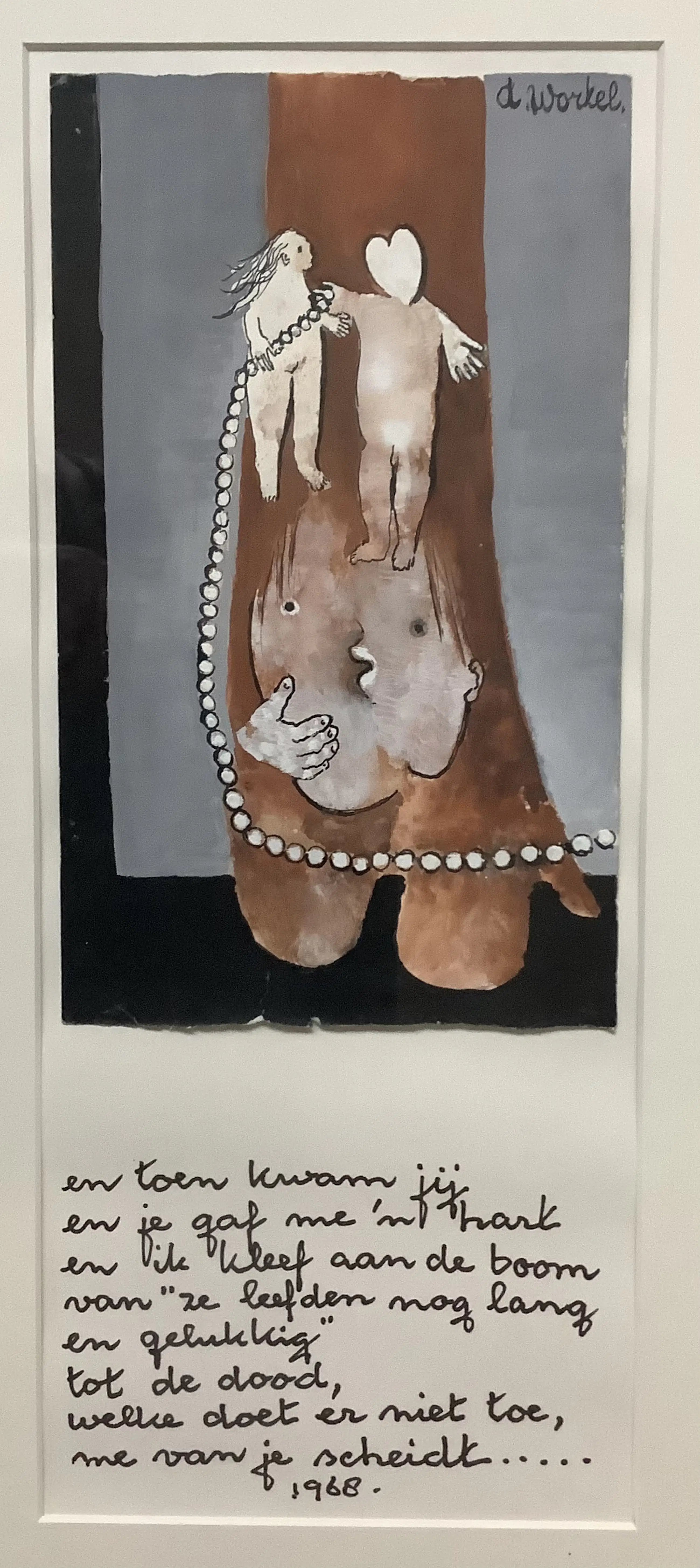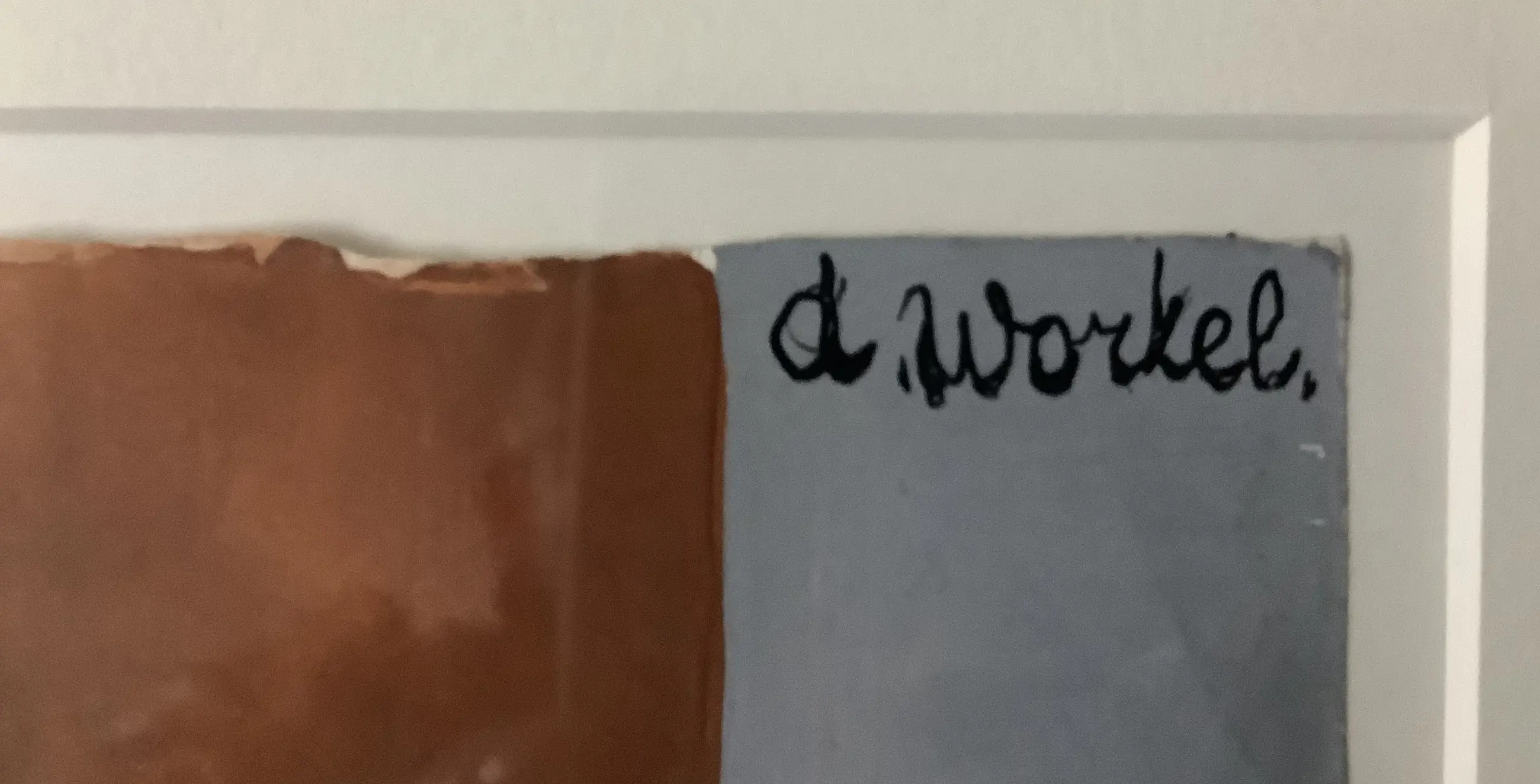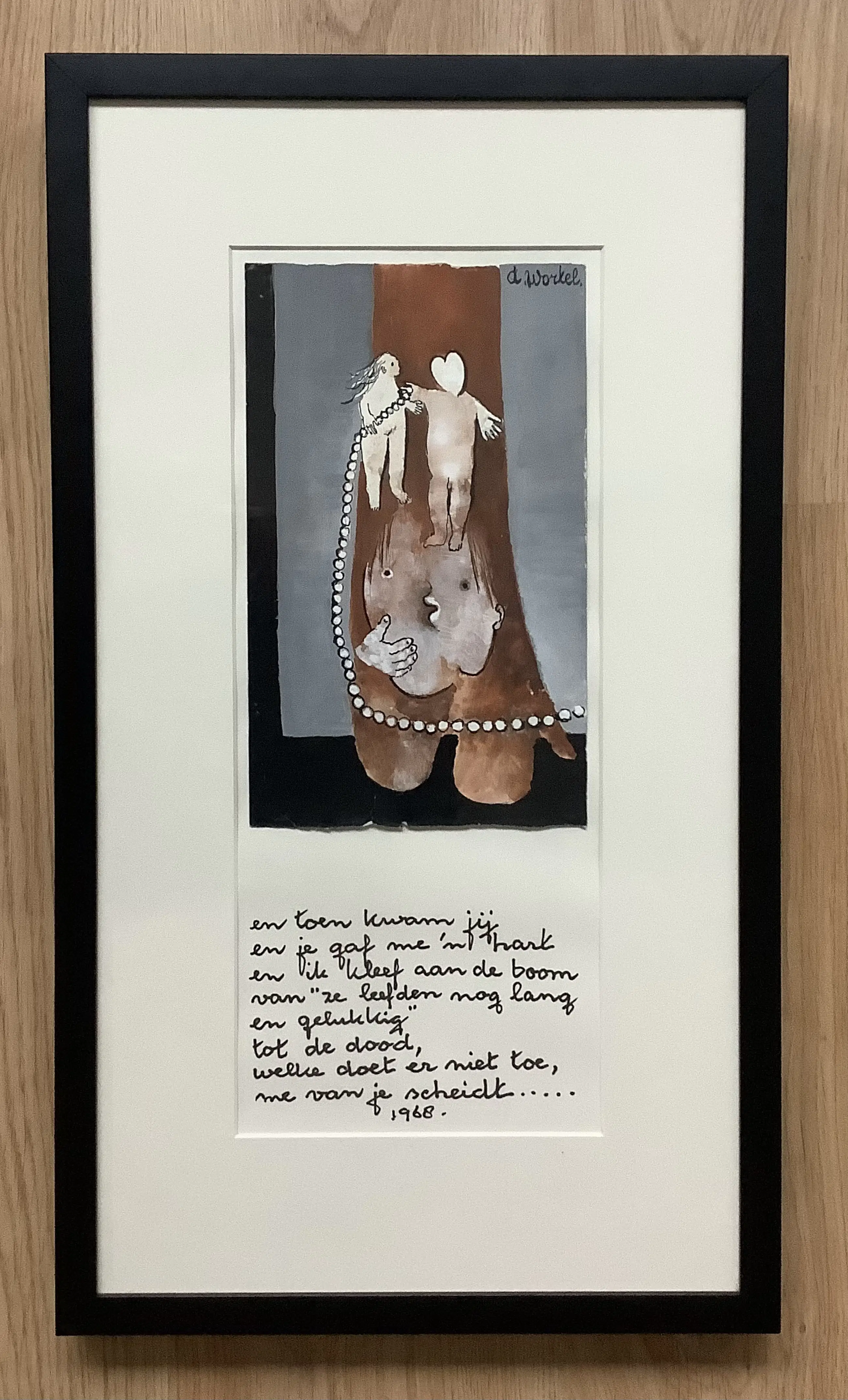 Signatuur: Handgesigneerd en gedateerd door kunstenaar. Verder heeft de kunstenares het werk van een handgeschreven tekst voorzien. De gouache is zwevend ingelijst.