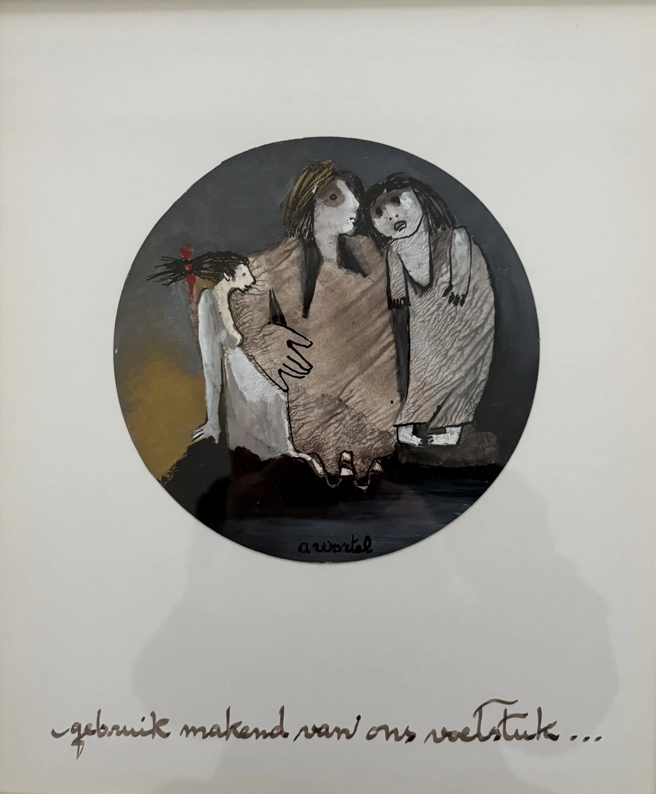 Klokgave gouache van Ans Wortel uit haar Bergense periode in Kranenburg waar ik vaak over de vloer kwam en haar zag werken. Niet beschadigd, achter glas, met passe-partout  en in kunststof lijst. Afmeting werk: 15,5 cm rond.